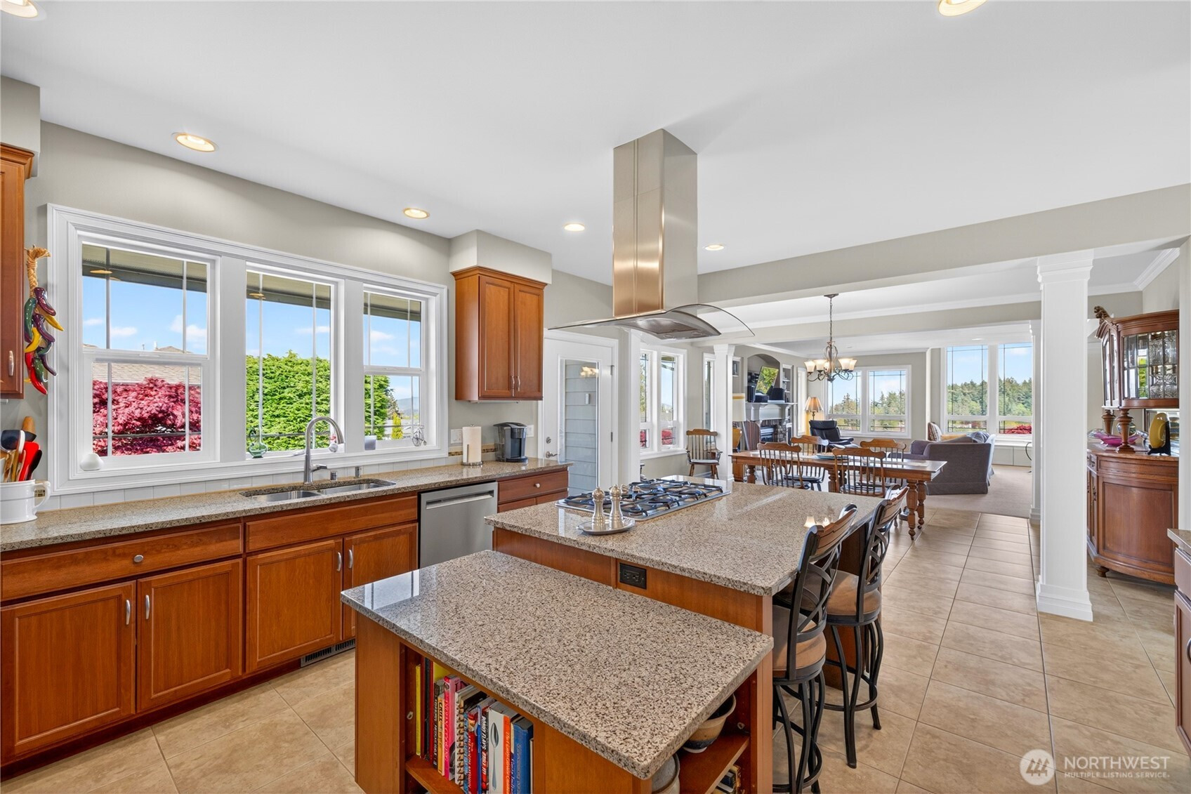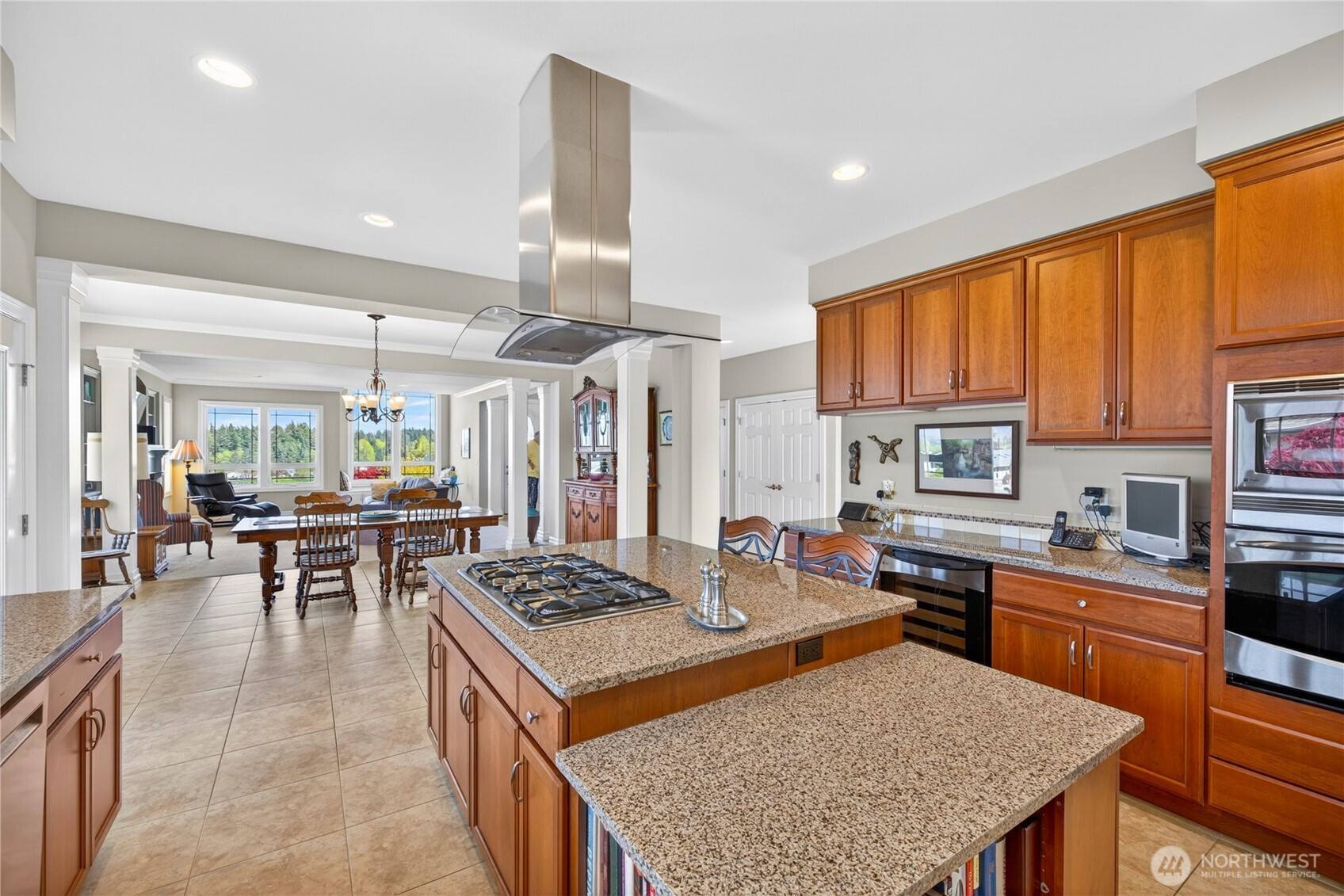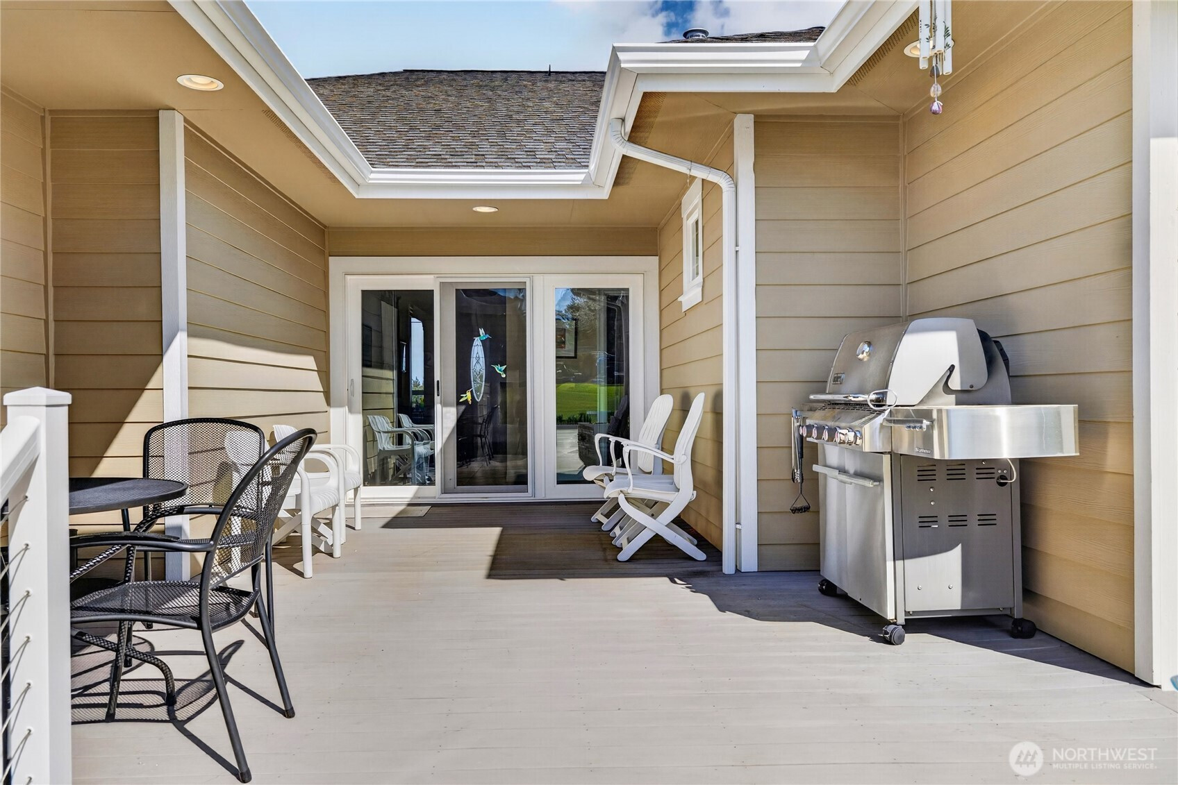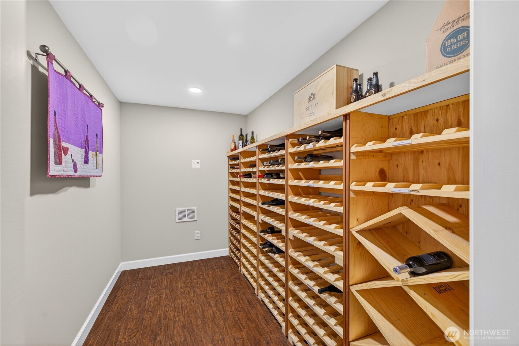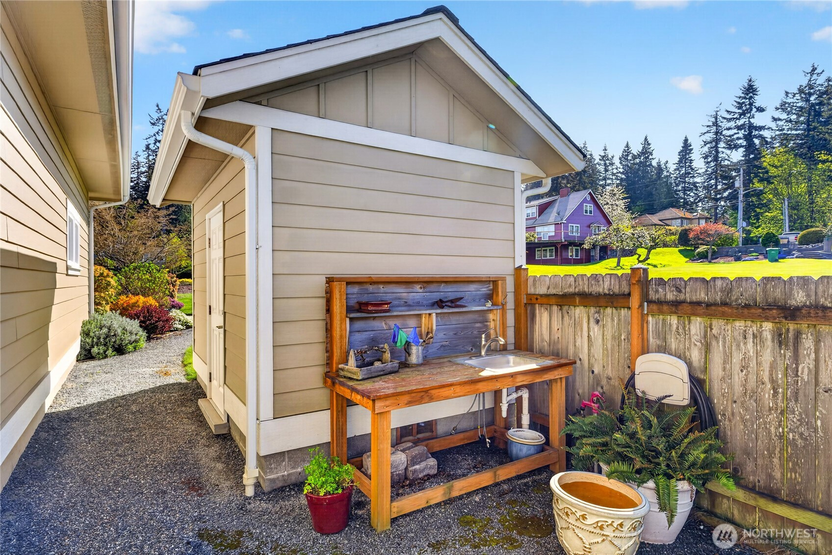 Beautifully maintained custom home with exceptional curb appeal, manicured landscaping, gorgeous views of the water and Mount Baker, and a spacious 3-car garage with a large bonus workshop space that can also be used for additional car storage. This thoughtfully designed home offers bright, open-concept living with large picture windows, soaring ceilings, and elegant built-ins surrounding the cozy gas fireplace. The gourmet kitchen features granite countertops, stainless steel appliances, abundant cabinetry, a large island with seating, and seamless flow into the main living and dining areas—perfect for entertaining. Spacious primary suite includes a luxurious ensuite bath with tiled walk-in shower and oversized walk-in closet. Additional highlights include a temperature-controlled wine room, expansive unfinished basement offering incredible storage or future potential, and quality finishes throughout. Downstairs could be converted into additional living space or used for extra storage. Enjoy peaceful outdoor living from the covered deck overlooking the private backyard with garden area. One of the best views in the entire neighborhood. Detached garden shed/workshop with potting sink adds even more functionality. Located in a quiet, highly desirable neighborhood close to town amenities, parks, and waterfront attractions.