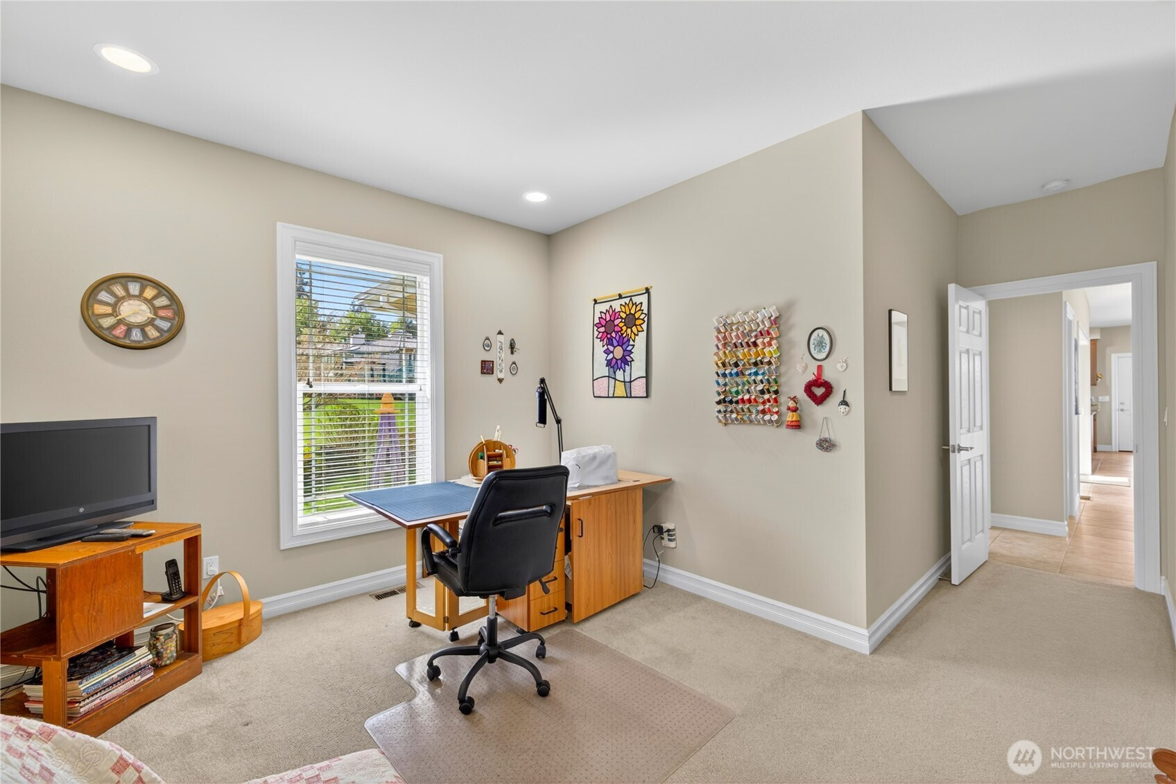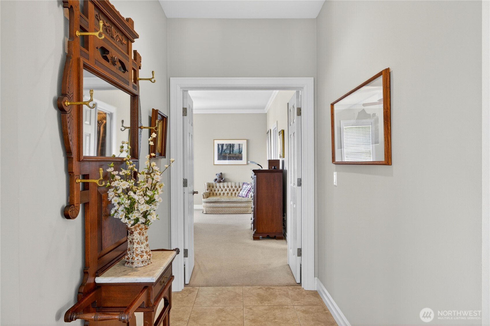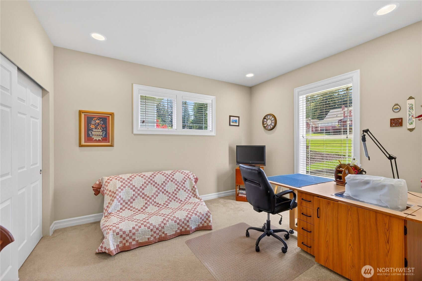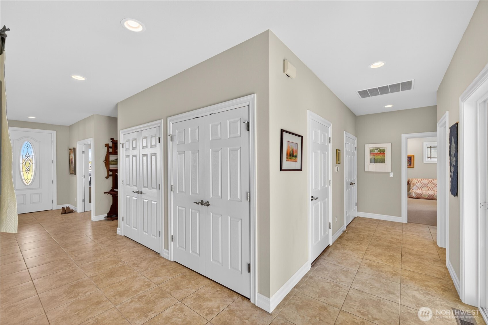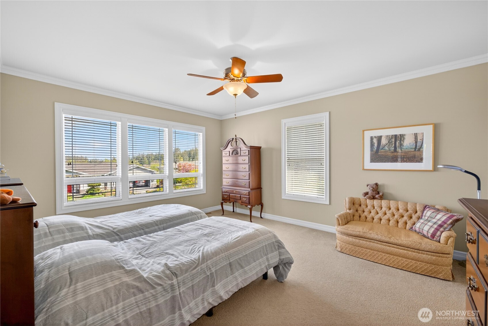 Beautifully maintained custom home with exceptional curb appeal, manicured landscaping, gorgeous views of the water and Mount Baker, and a spacious 3-car garage with a large bonus workshop space that can also be used for additional car storage. This thoughtfully designed home offers bright, open-concept living with large picture windows, soaring ceilings, and elegant built-ins surrounding the cozy gas fireplace. The gourmet kitchen features granite countertops, stainless steel appliances, abundant cabinetry, a large island with seating, and seamless flow into the main living and dining areas—perfect for entertaining. Spacious primary suite includes a luxurious ensuite bath with tiled walk-in shower and oversized walk-in closet. Additional highlights include a temperature-controlled wine room, expansive unfinished basement offering incredible storage or future potential, and quality finishes throughout. Downstairs could be converted into additional living space or used for extra storage. Enjoy peaceful outdoor living from the covered deck overlooking the private backyard with garden area. One of the best views in the entire neighborhood. Detached garden shed/workshop with potting sink adds even more functionality. Located in a quiet, highly desirable neighborhood close to town amenities, parks, and waterfront attractions.