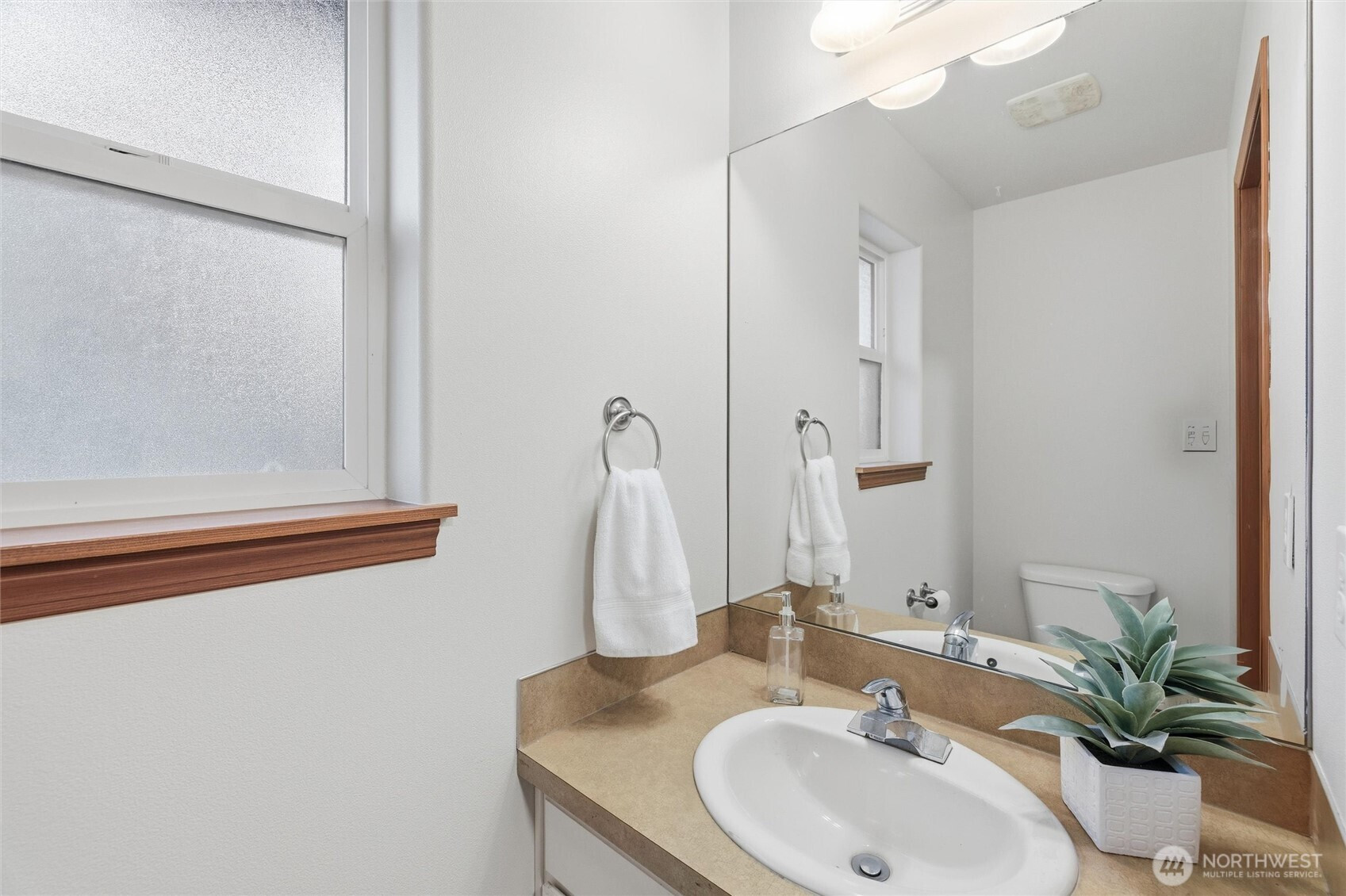 Charming end-unit single-family townhome with 1,148 sq. ft., 2 bedrooms, 2 full baths, and a powder bath. Freshly updated inside and out with new paint, carpet, appliances, & light fixtures—this home is spotless and move-in ready! The main level offers an inviting living room, bright kitchen, and convenient half bath w/LVP; upstairs, both bedrooms enjoy private full baths. A single-car garage provides extra storage. Enjoy a cozy fenced yard with a deck—ideal for morning coffee or pets. Walk to downtown restaurants, with quick access to I-5. Comfort, convenience, and affordability—perfect as a starter home or investment! This property is not located within the 100-year flood plain.
