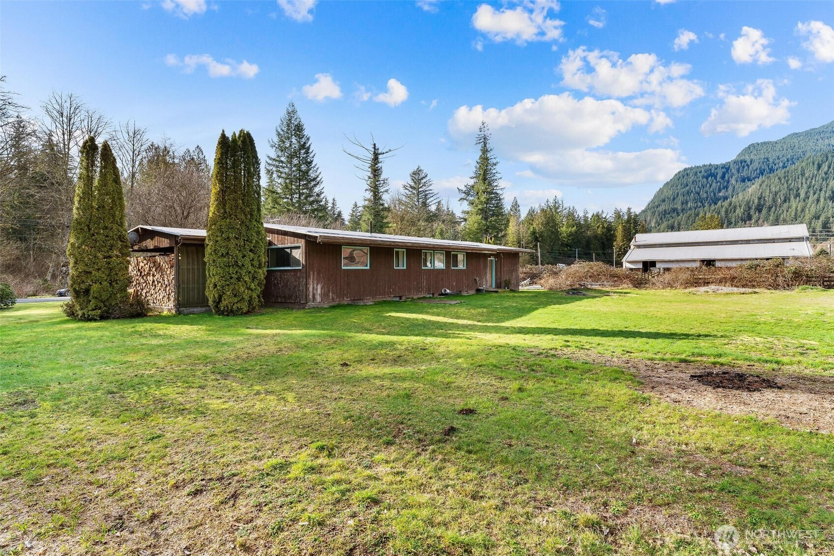 **Investment Alert** This home features warm vaulted ceilings, exposed beams, and a brick fireplace that anchors the main living area. Additionally, there is another wood stove in the basement along with a propane fireplace in the dining area. The propane is not connected or currently being used. Kitchen is nicely sized with lots of counter space. There is a separate laundry room in the garage. Three moderately sized bedrooms. The unfinished basement is huge and ideal for storage, hobbies, or future expansion. Outside, the 1-acre property opens up to a level lawn with mature trees, open sky, and great surroundings. It is situated right on the Scenic North Cascades Highway perfect for outdoor adventures. This home cannot be financed. It needs a new roof and garage door. Needs carpet replaced or wood flooring brought back to life. Has lots of potential for someone willing to put in the work. Home is sold "As Is". Seller not able to make repairs.