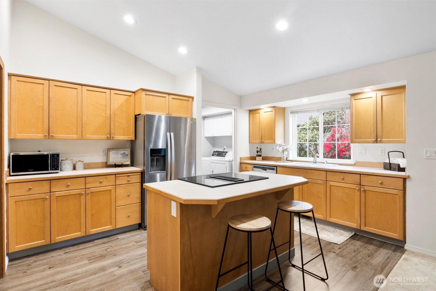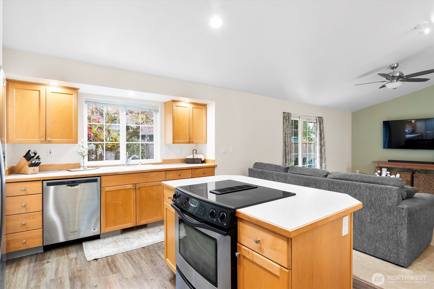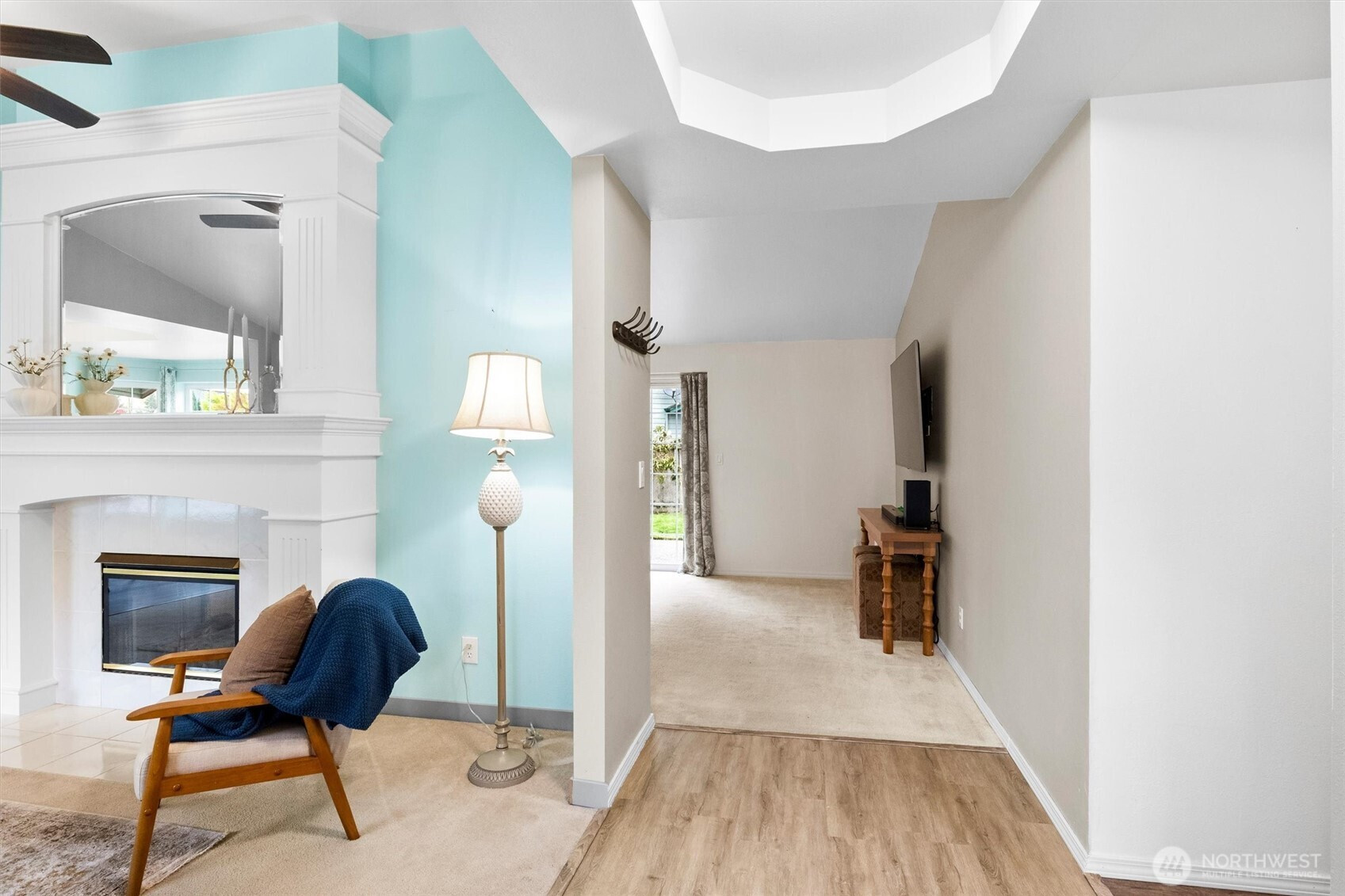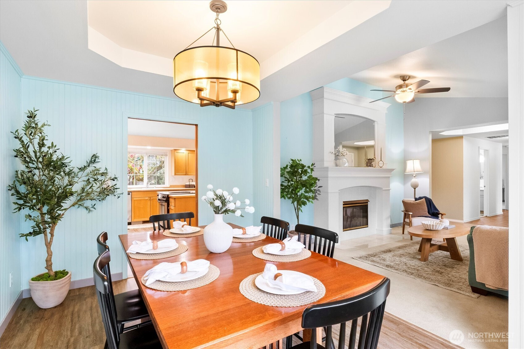 3 bed, 2 bath rambler in a quiet Sedro-Woolley setting featuring two separate living areas and a formal dining space, offering flexibility for everyday living and entertaining. A double-sided fireplace connects the living spaces, adding warmth and character. The kitchen provides ample cabinetry. Primary suite includes an updated bathroom with vanity and walk-in closet. Roof and solar installed in 2024, with furnace and water heater updated in 2020. Fully fenced yard features a Japanese maple and space for outdoor use, with convenient access to local amenities and commuter routes.