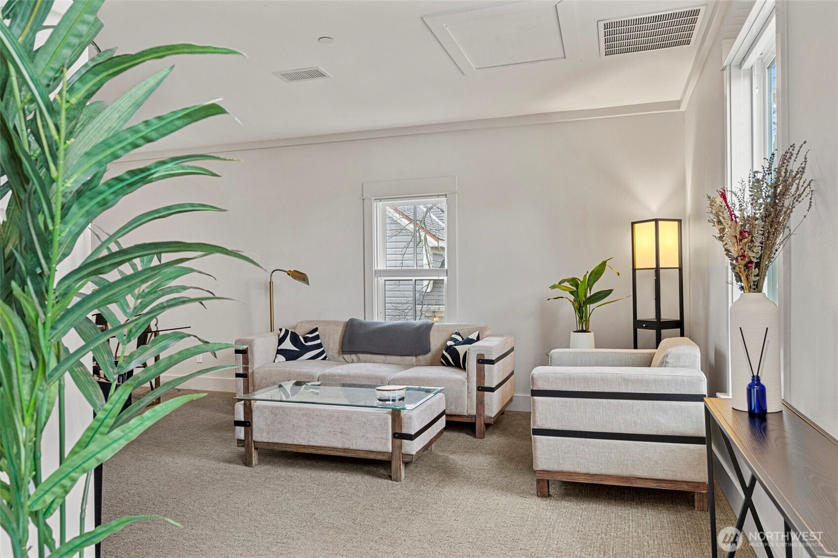 Located on the top floor of the restructured Tillinghast Seed Complex in La Conner, this 2-bedroom condominium offers predictable modernity as well as the intrigue of urban living. The home is a fresh blank slate for your Airbnb or personal residence (part-time or otherwise!). Notice the well-appointed kitchen, bedroom versatility, and in-unit washer and dryer. Whether utilized as a primary residence, a part-time getaway, or a vacation rental investment, the property is move-in ready and includes a dedicated parking space along with additional general parking within the complex. Tillinghast is exceptionally walkable, providing immediate access to the heart of La Conner. Residents are just steps away from the boardwalk, independent boutiques, and renowned waterfront dining along the Swinomish Channel. This central position serves as a convenient base for exploring the local arts scene and the nearby Skagit Valley. If you operate as a short-term rental, your guests will be floored with the ease of La Conner access and will come back time after time, especially for huge events like the fireworks on the reservation.