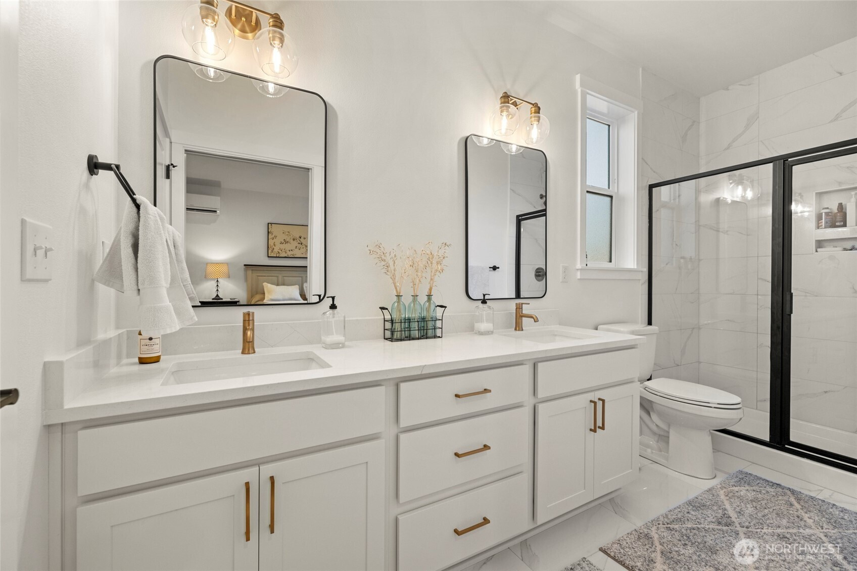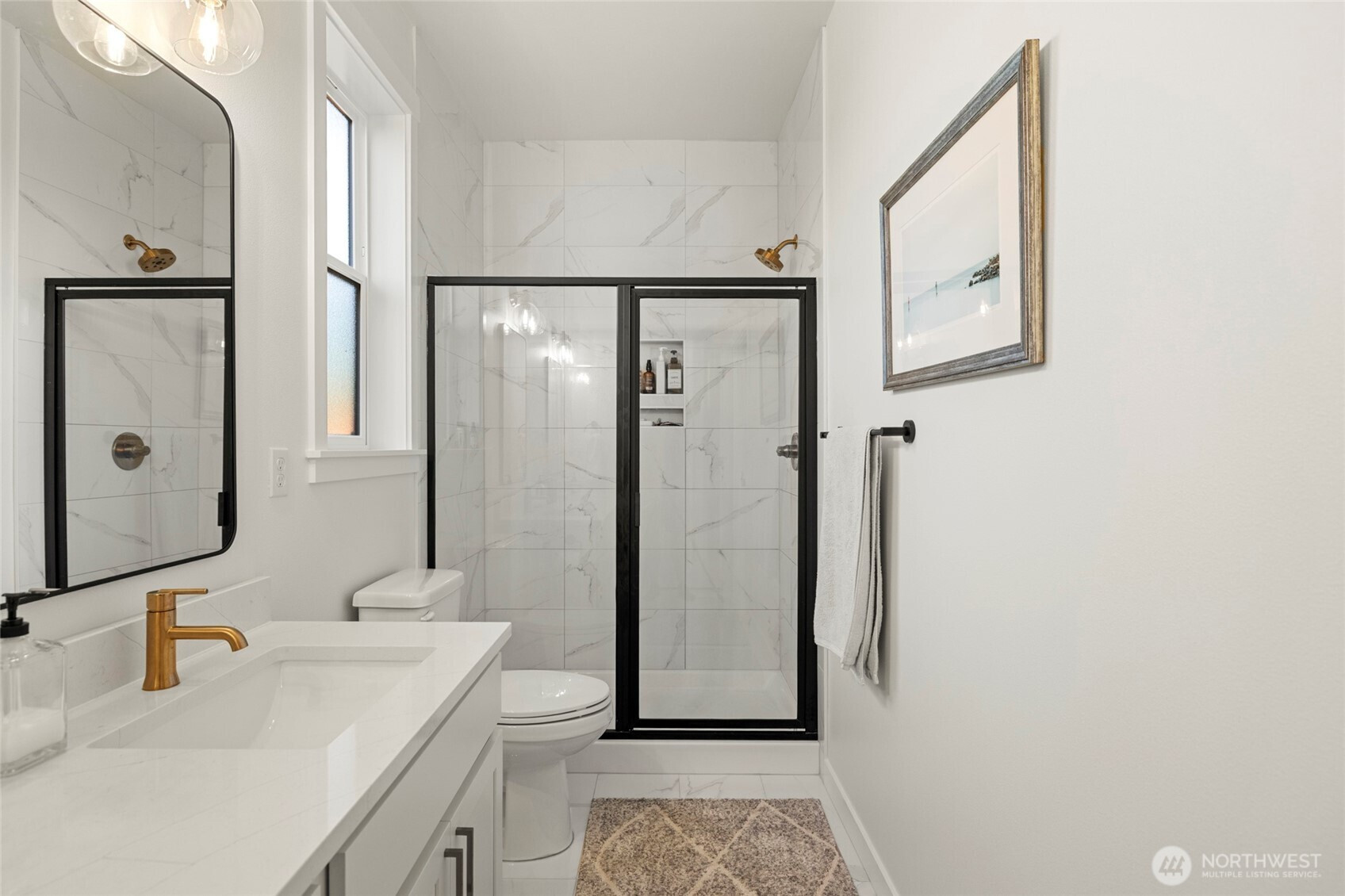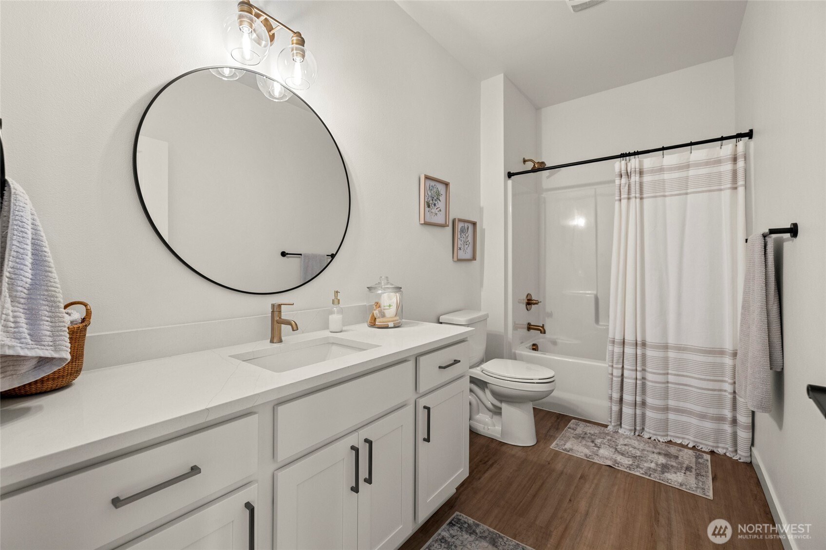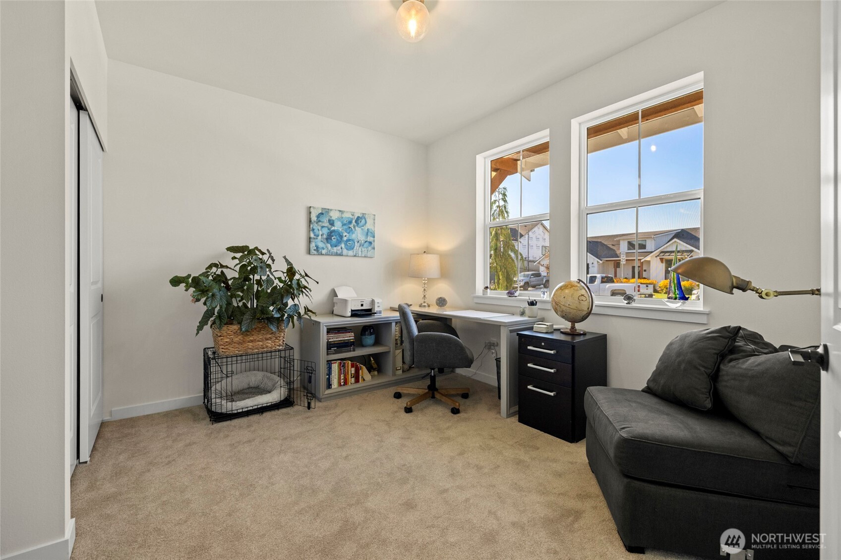 Just like new but with the benefit of more developed landscaping and a feel of "home". This single level floor plan has a great open concept. Wide entryway leads to an expansive great room, vaulted ceilings, gas fireplace & LVP flooring. Kitchen with Quartz counters, gas range, 36" upper Blonde cabinets, ample storage & great size island for functionality. All upgraded lighting & plumbing fixtures. Utility room has ample storage adjacent to the kitchen. Mini splits provide heat/AC. The primary bedroom has vaulted ceilings, ensuite bath w/a tile floor & shower, double sinks and walk in closet. Two generous guest bedrooms with lots of light. Private covered patio with beautiful yard fully landscaped & fenced w/plenty of room for gardening.