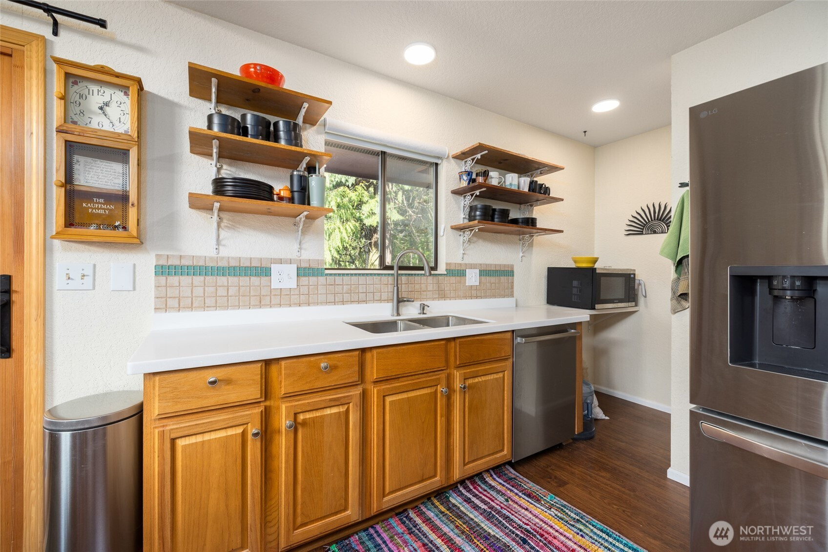 Discover the perfect blend of comfort, privacy, and modern updates in this well-maintained Shelter Bay home. This residence offers a spacious main-level layout featuring a primary bedroom, guest bedroom, full bathroom, kitchen, living, and dining rooms. Enjoy the vaulted ceilings, and serene views of surrounding evergreens with the glimmer of water through the trees at sunset. The open-concept kitchen, dining, and living areas create an inviting atmosphere ideal for everyday living or entertaining. Step outside to a large deck that extends your living space into the peaceful outdoors. Recent upgrades elevate the home’s appeal, including a newly installed 5-head mini-split system for efficient heating and cooling, new appliances, fresh interior paint, new solid-surface countertops, updated lighting, new bathroom vanity, new LVP bathroom flooring, and new carpet on the lower level. The lower floor also features a separate entrance, offering flexibility for guests, hobbies, or multi-generational living. A generous workshop area and large laundry room add to the home’s functionality. Community features include a 9-hole, par 3, golf course, swimming pool, clubhouse, tennis and pickleball courts, parks, beaches, playgrounds, and walking trails, all just minutes from the charming waterfront shops and restaurants of La Conner. Enjoy the privacy, space, and modern comfort this Shelter Bay gem provides, move-in ready and waiting to welcome you home!