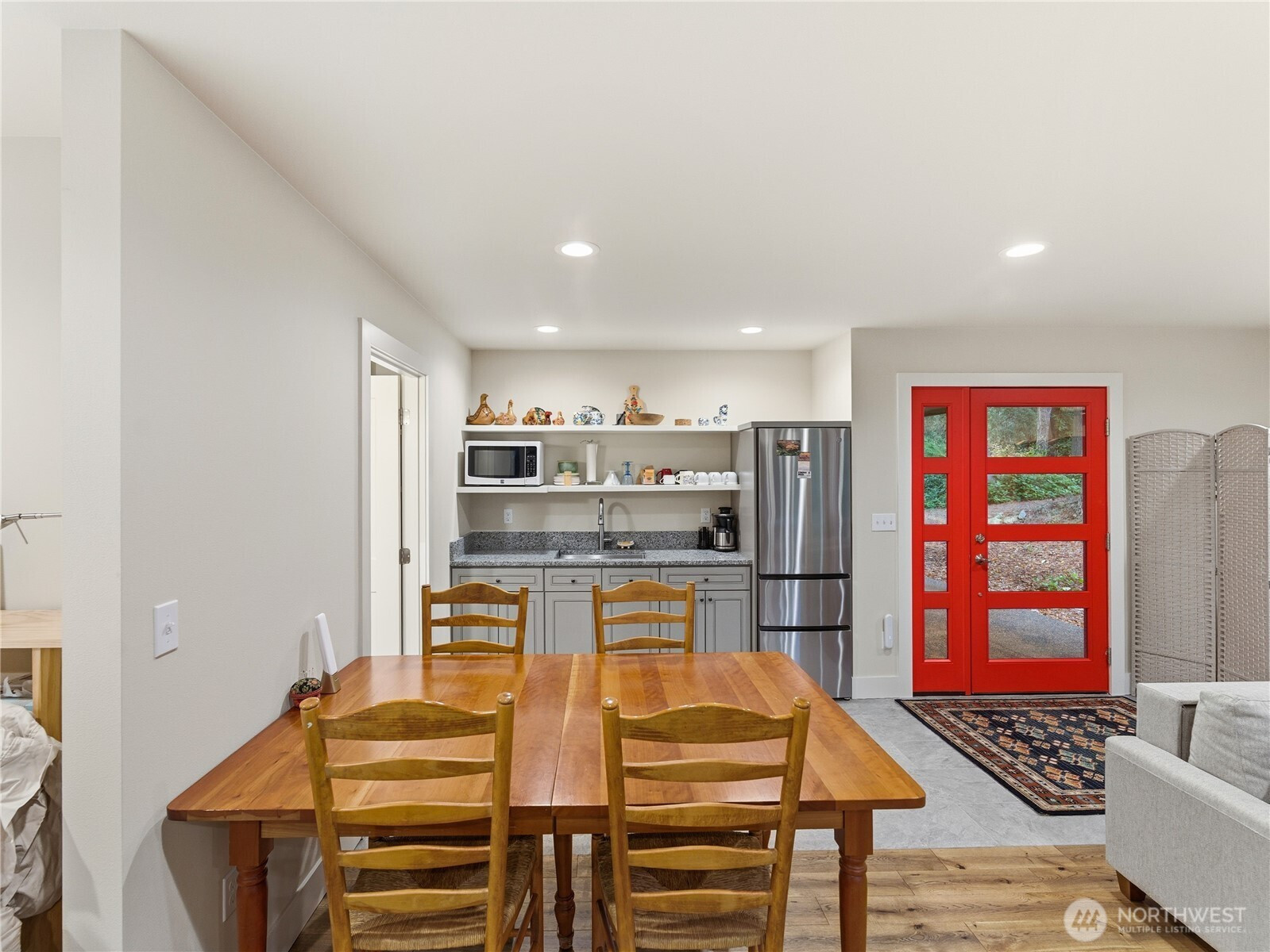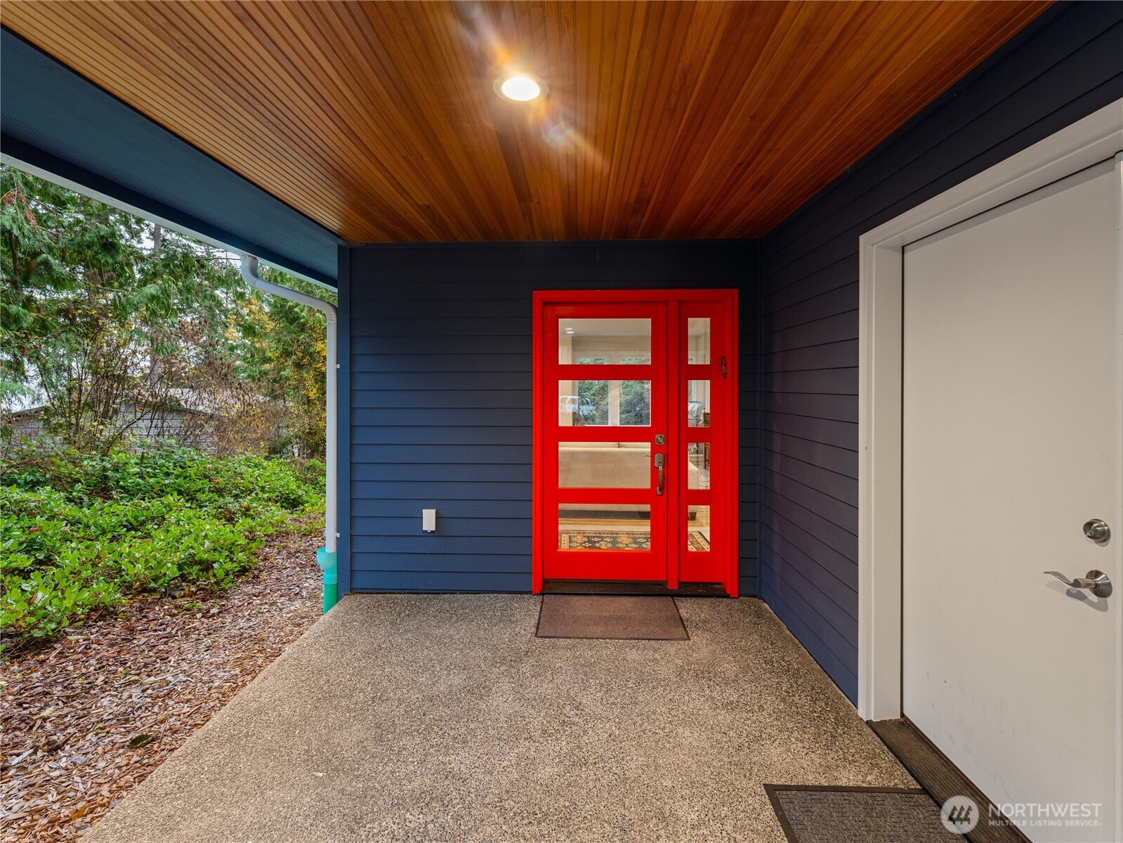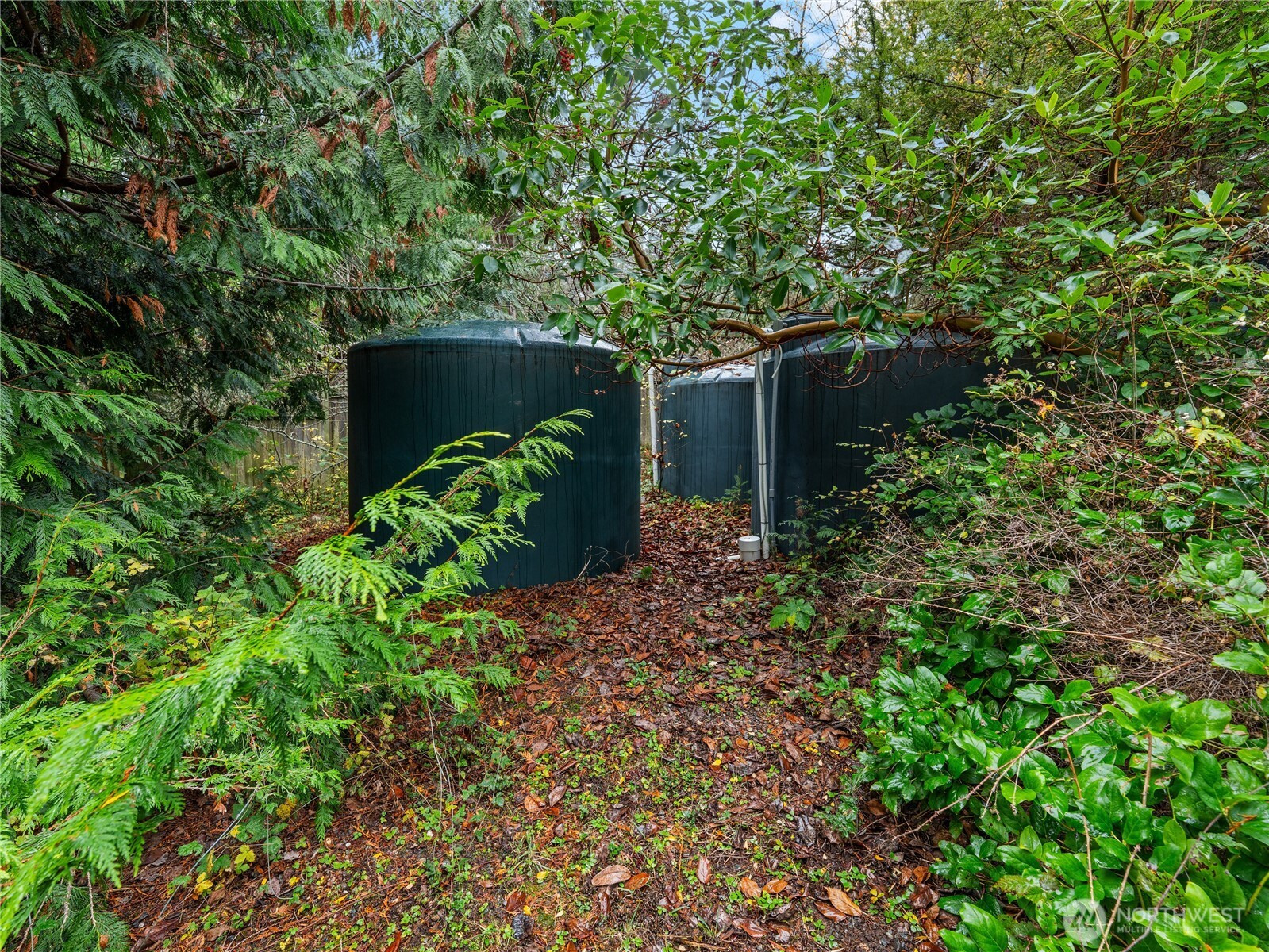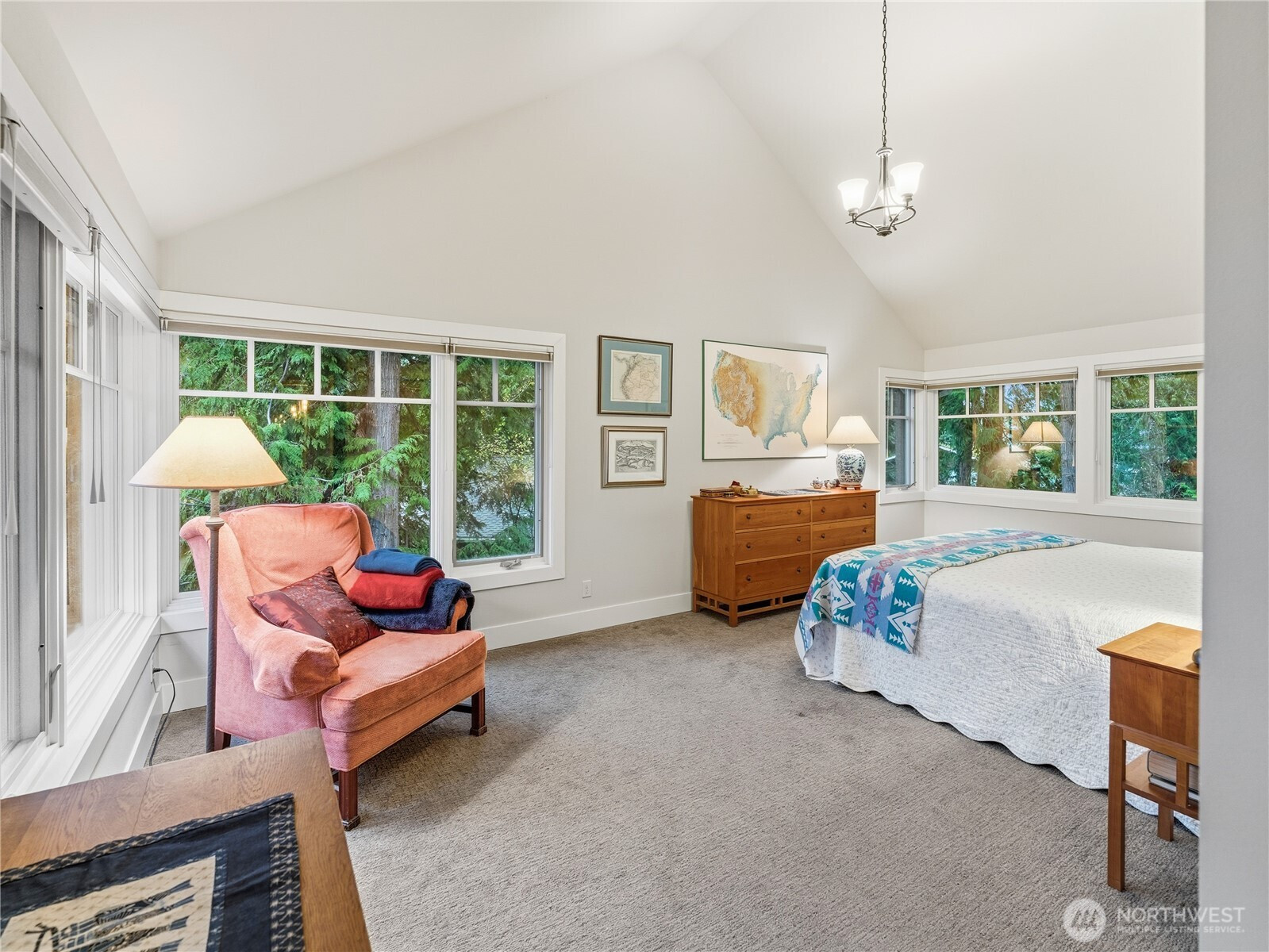 Welcome to your treetop hideaway with water views drifting through the trees. You’ll find two primaries (main + upper), a dreamy guest studio, cozy library, large storage room, and a 10,000 gallon rain-catchment system for garden watering (or for the home with the installed filtration) alongside the community water supply. Upstairs also offers an extra bedroom/office for work or guests. Relax in the sauna, stroll through native landscaping, or tend your fenced veggie garden. The loop driveway, tons of parking, automatic backup generator, and bonus lot with water share and 2-bedroom septic open the door to future plans. All just minutes from the 5-minute ferry to Anacortes and the stunning Guemes Mountain trail with panoramic island views.