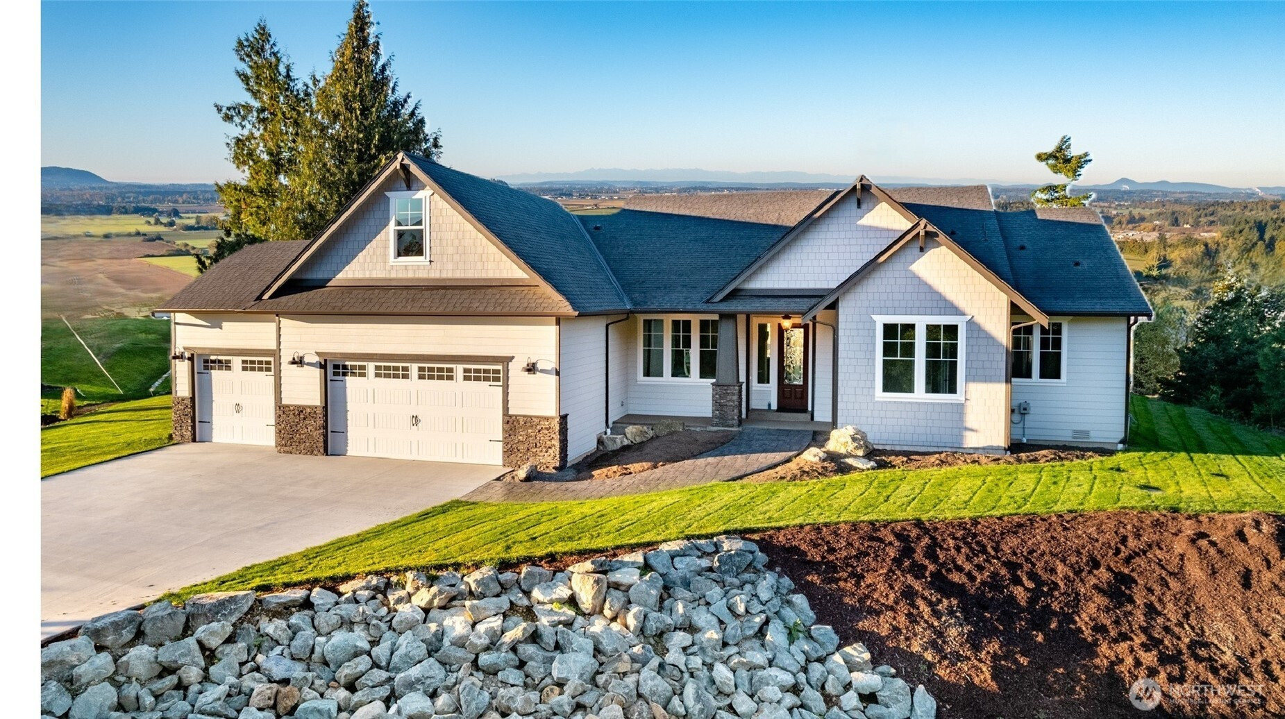 (503) 893-8874Brand new single-level home with spectacular views of the Cascades, Olympics, Skagit Valley, & San Juan Islands! Located in private gated community of Avalon Heights, this custom-designed home features 10FT ceiling heights, custom-made cabinetry throughout, magnificent vaulted great room, beautiful 14FT tall stone fireplace with stone hearth & mantel. An elegant 2742 SF home sitting on a level 1-acre with a huge covered patio facing sweeping views to the south & west. Flooring high-quality WPC Plank & carpet. Features 4 bedrooms plus large bonus room. Extra large 3-car garage. Great location only 7 minutes to I-5, 15 min to Mt Vernon, & 25 min to Bellingham. NOTE: HOA dues include water bill.