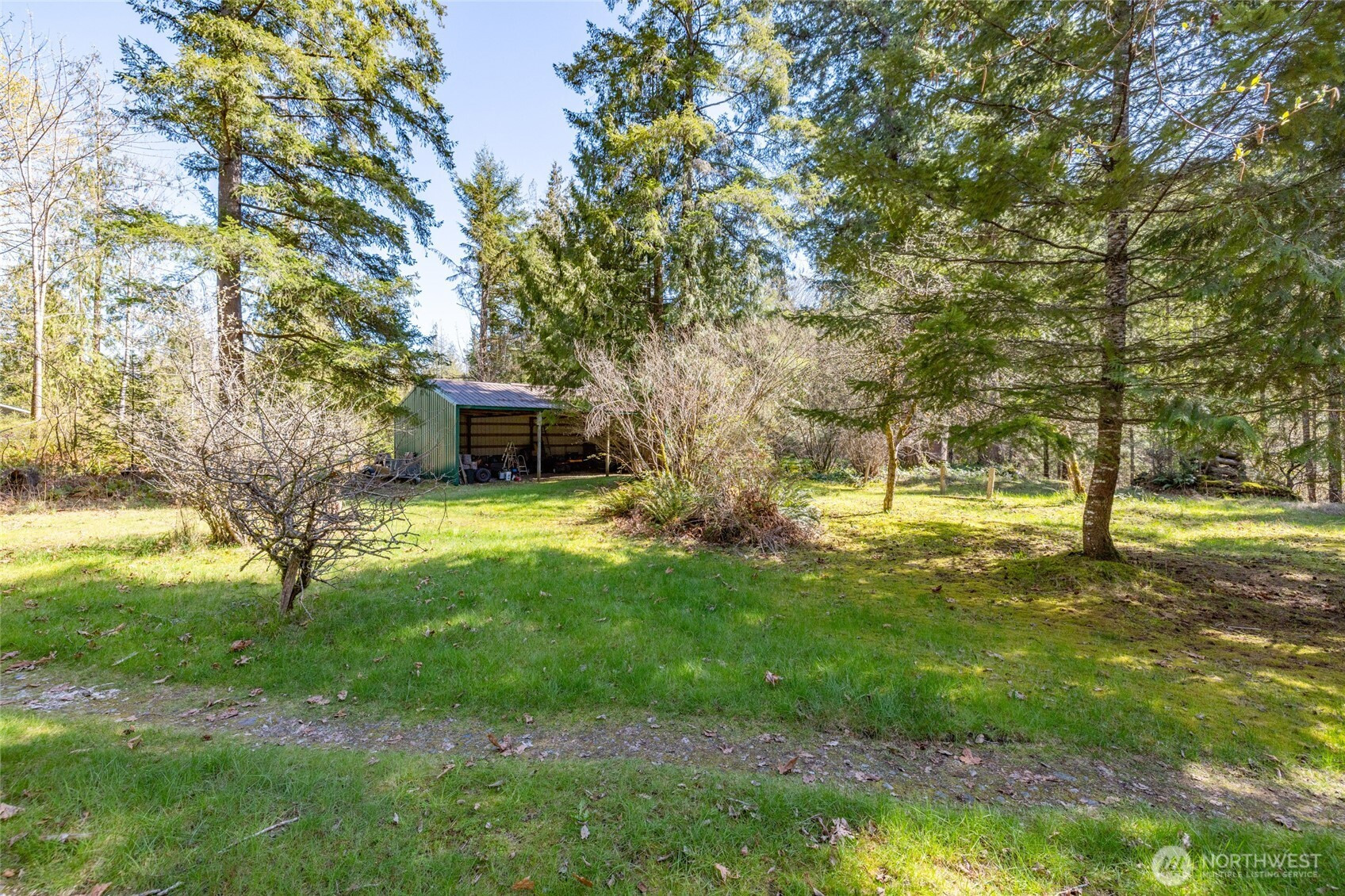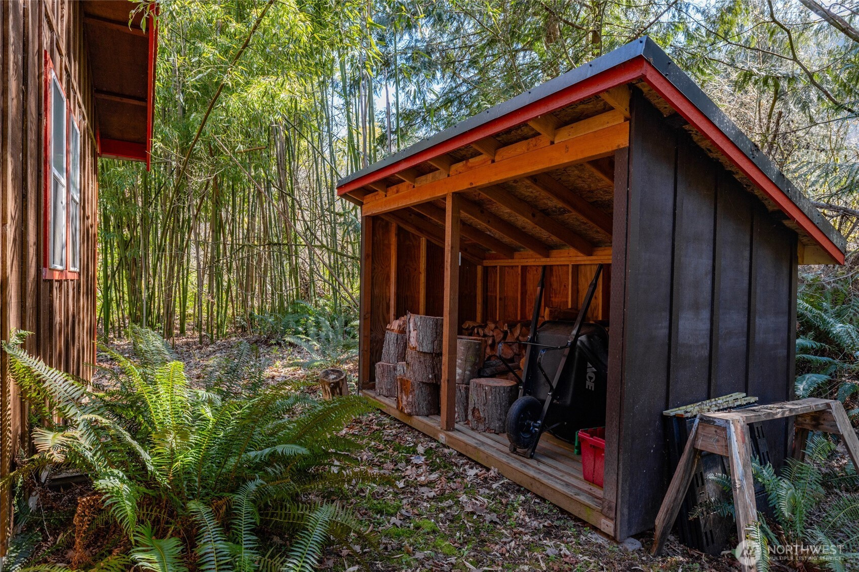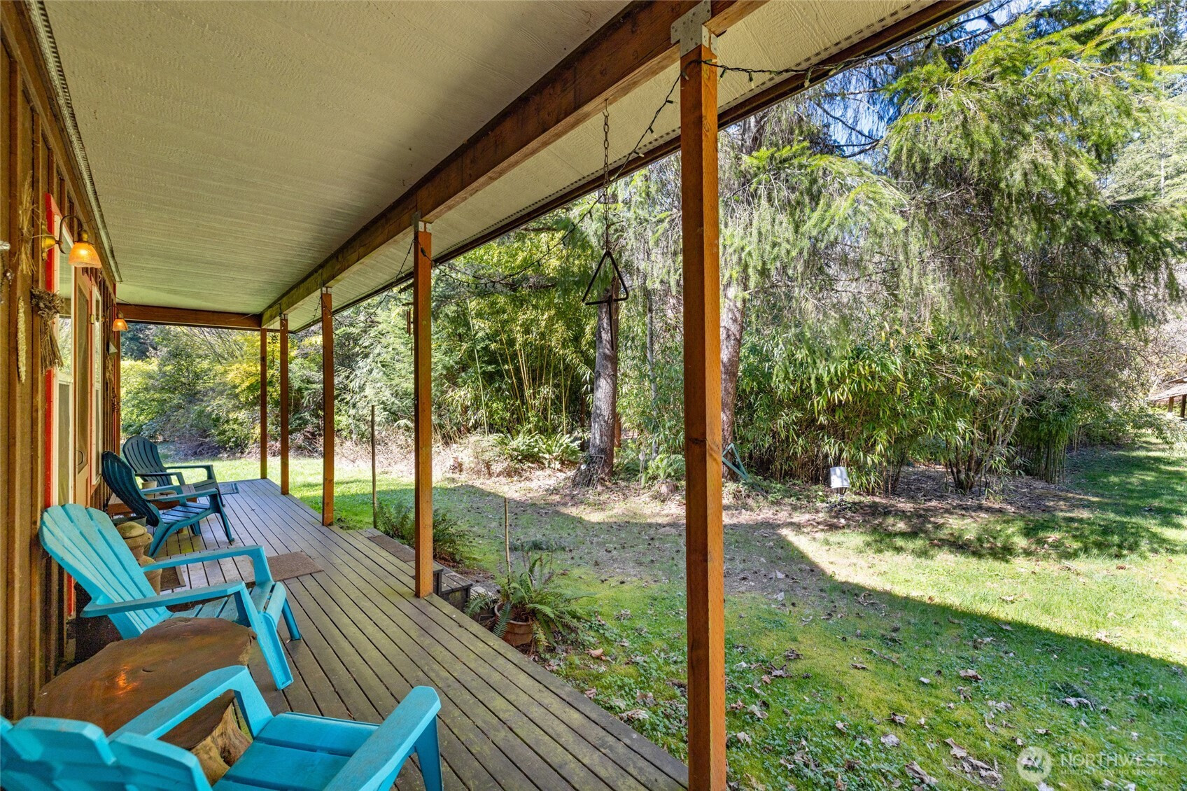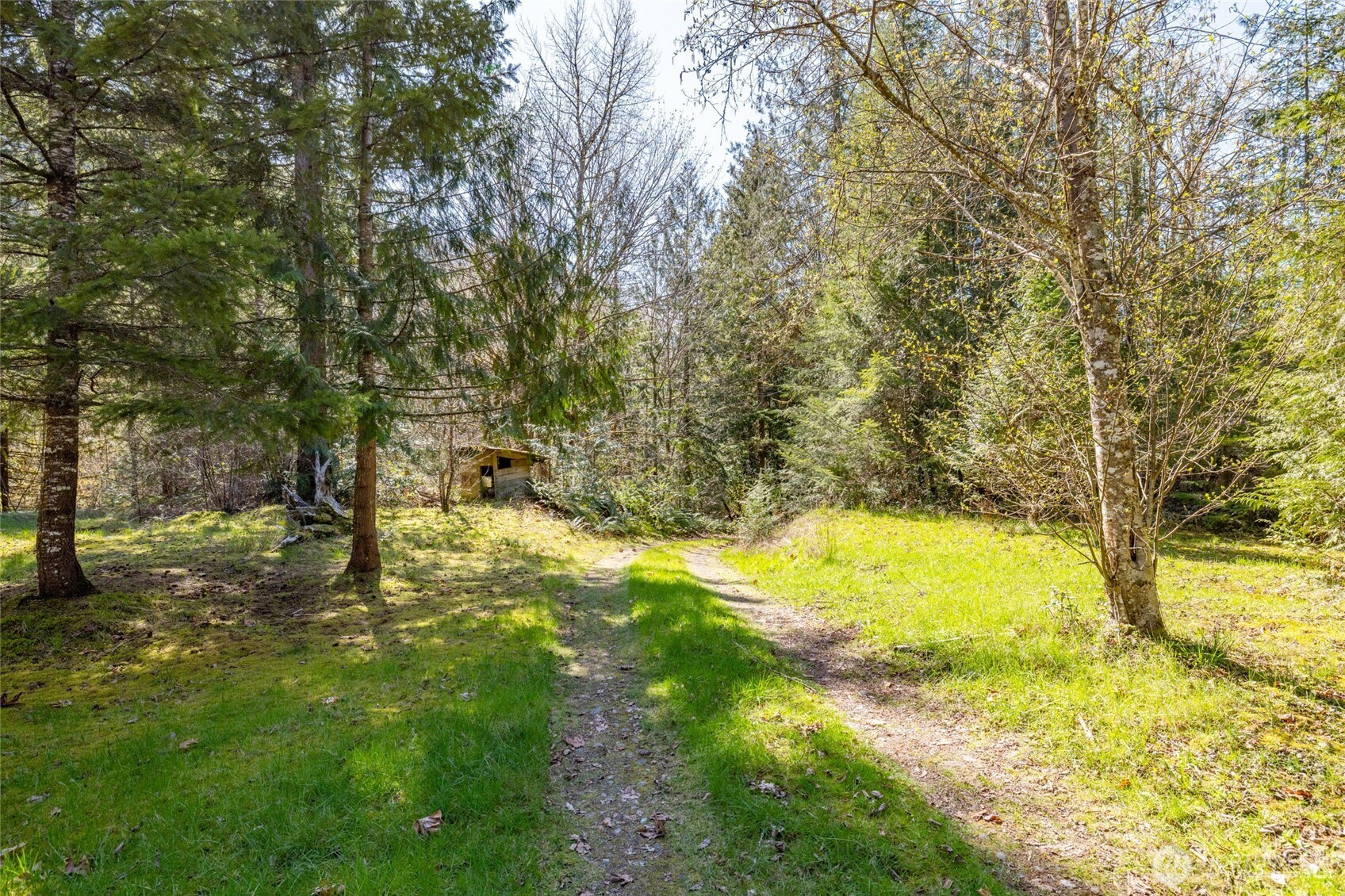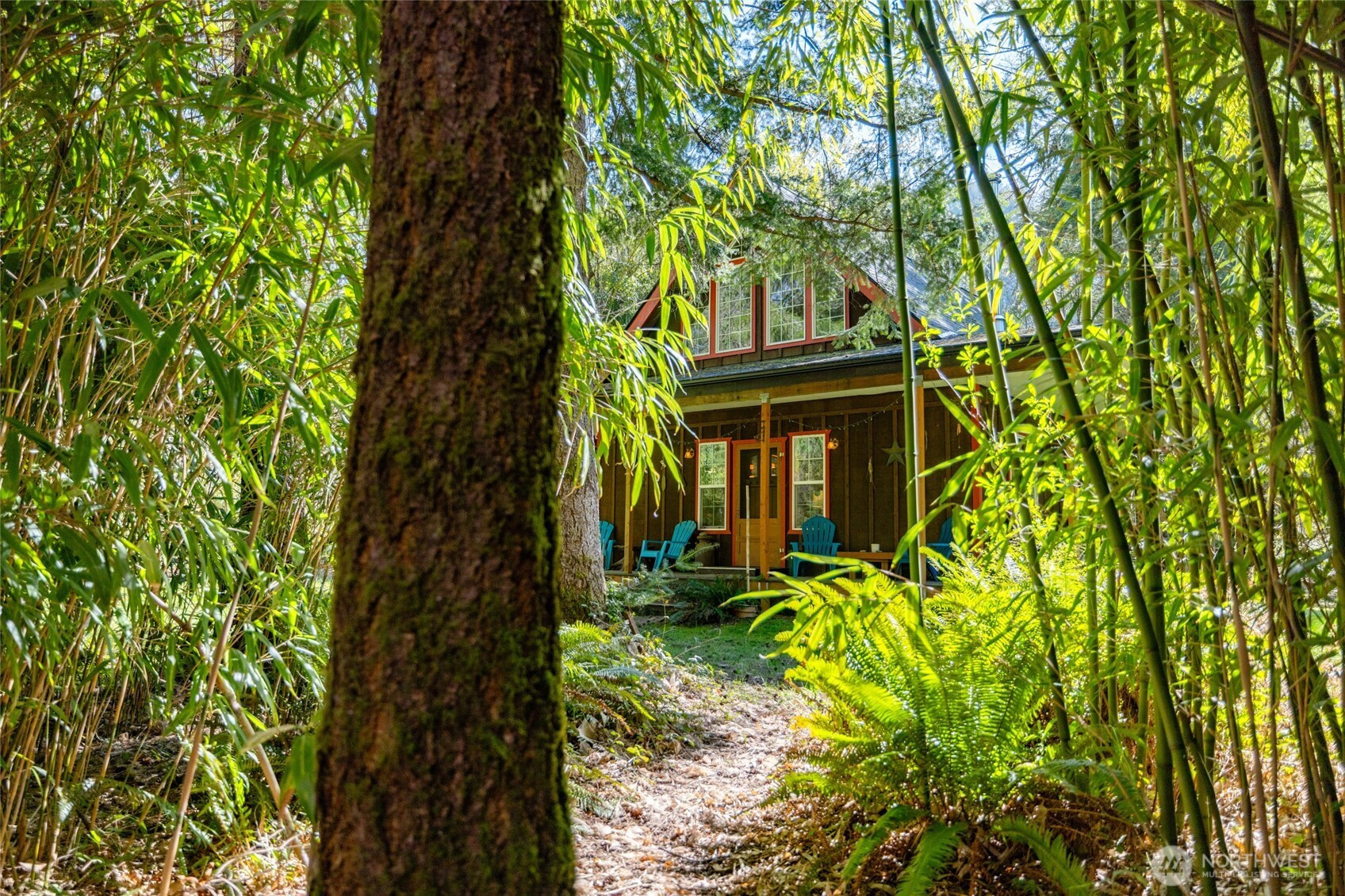 Experience the beauty of nature tucked away in the woods, this lovely 2-bed, 1.5 bath cabin is perfect for weekend getaways or a quiet place to call home. Enjoy the spacious wrap around porch, perfect for morning coffee or unwind inside where the warmth of the wood and thoughtfully decorated cabin create a cozy retreat. The soaring ceilings and windows create an open natural feel. Multiple outbuildings include a 3-stall pole building, ideal for vehicles, projects or storage, tool shed, woodshed, a small cottage, plus the original cabin is still standing with loads of potential with some TLC. Garden space galore, fruit trees, trails, beautifully wooded and open grassy spaces complete this lovely 5-acre property. The possibilities are endless. Located on a private gated drive you are minutes from town where you will have tranquility and convenience. Partially furnished. New roof in 2017 & new drainfield in 2020. Your serene, wooded escape awaits!