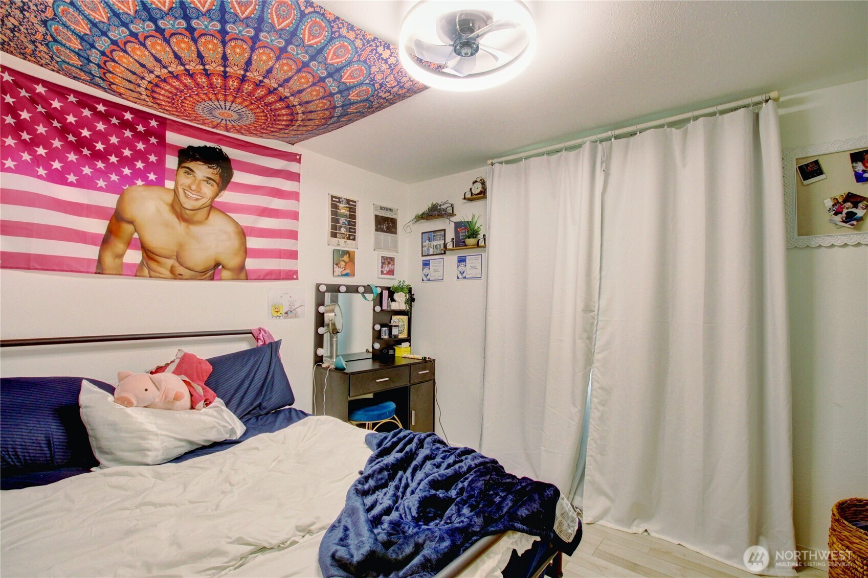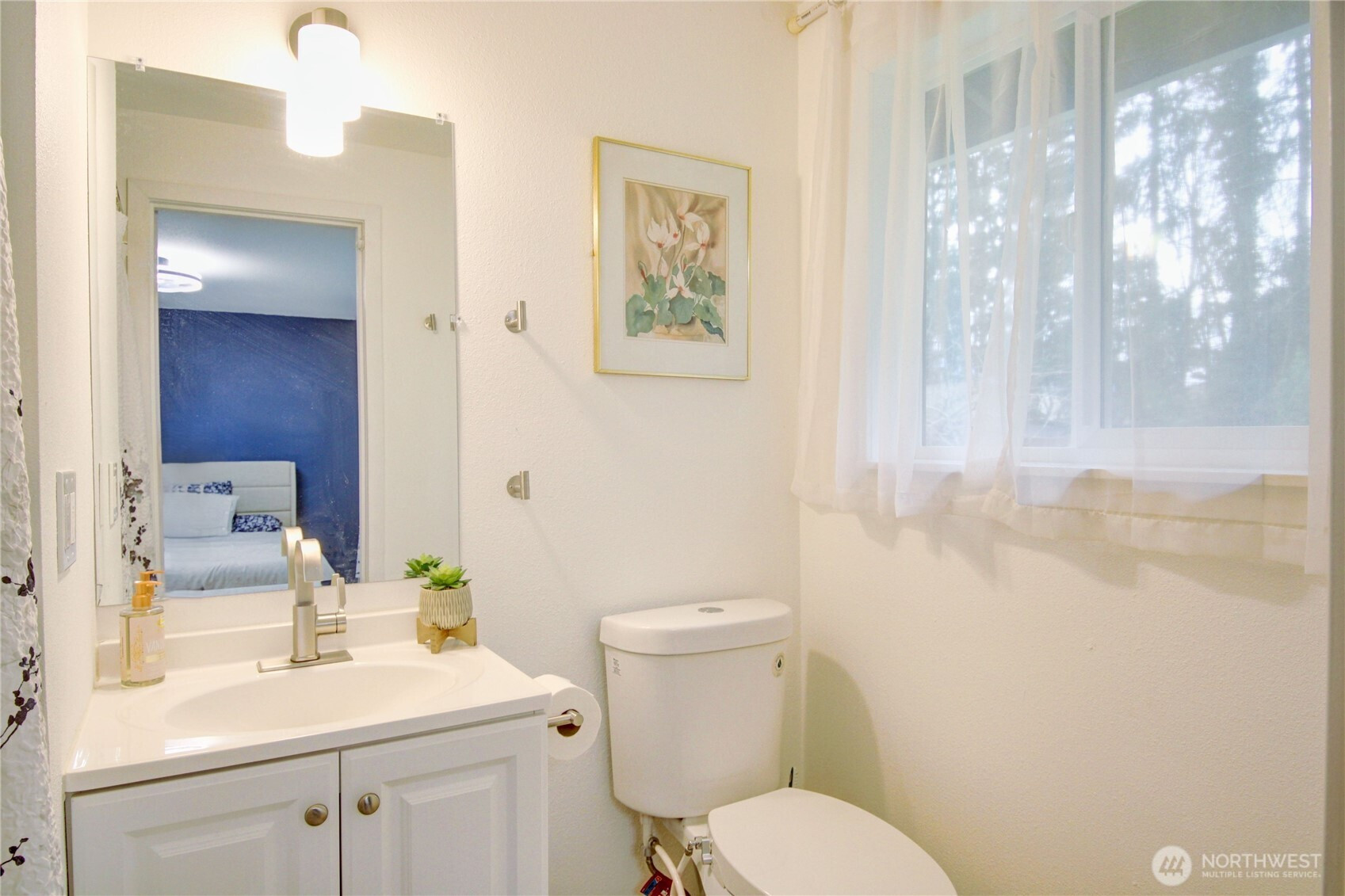 1,848 sq ft home on a level ¼-acre lot located on a dead-end road. Main level includes great room with vaulted ceilings, kitchen with butcher block counters, bar seating and stainless steel appliances. Primary suite with ¾ bath, plus two additional bedrooms and full bath. Separate living space (ADU) with interior and exterior entry, fenced yard, kitchenette and living area, ¾ bath, and two bedrooms upstairs. 550 sq ft two-car garage with washer/dryer and shelving. Driveway parking including RV space with power hookup. Fully fenced backyard with patio and storage shed. Updates include new flooring, paint, and windows. Located minutes to local amenities.