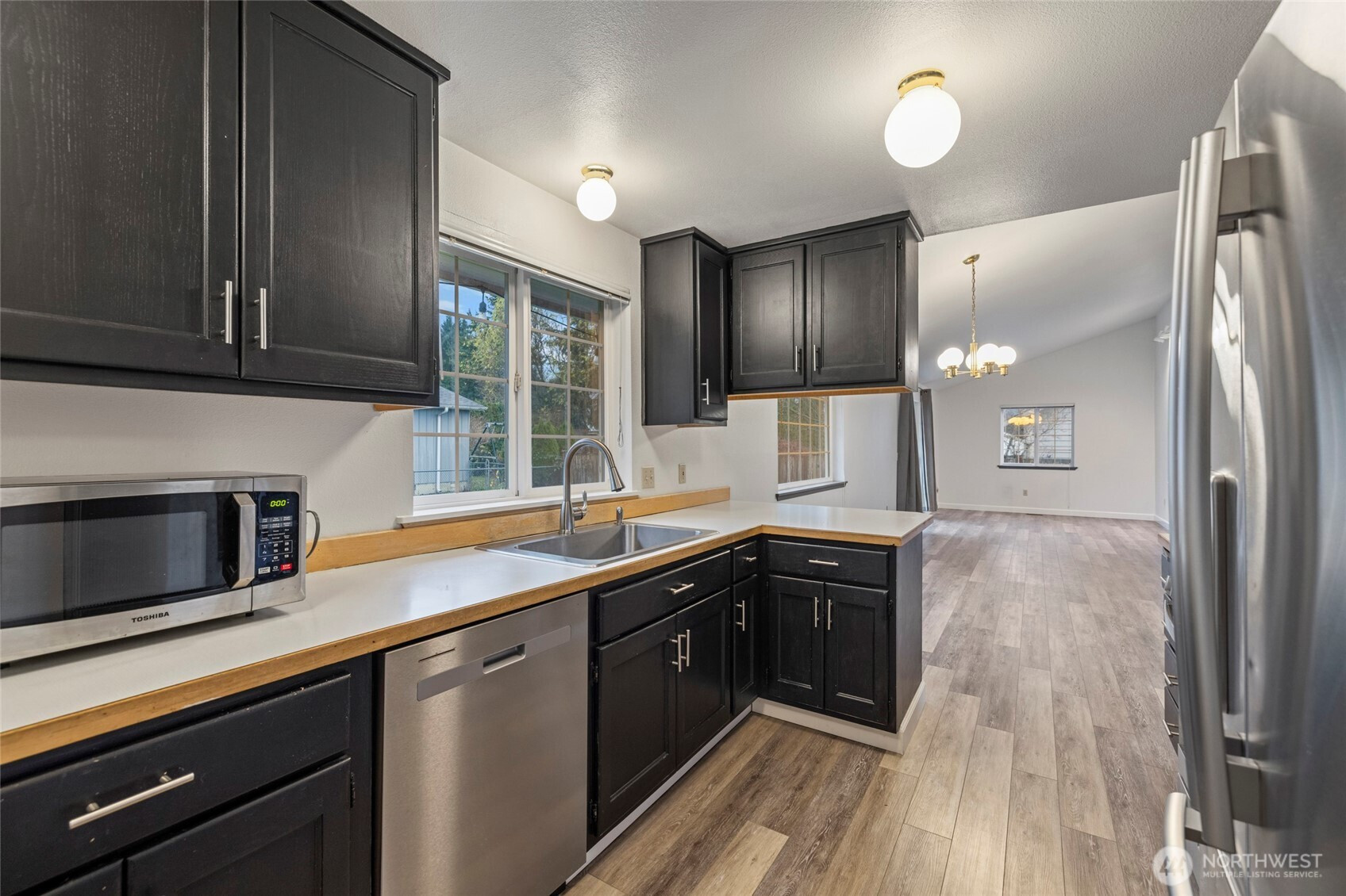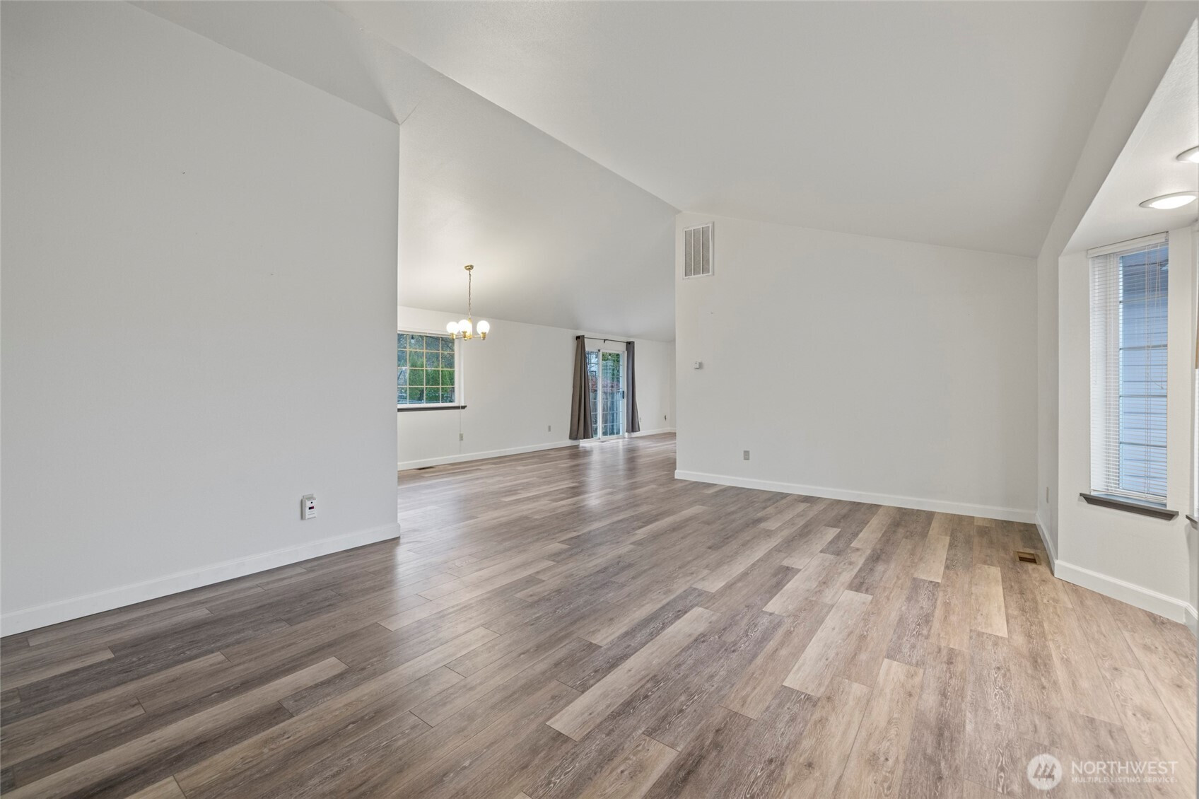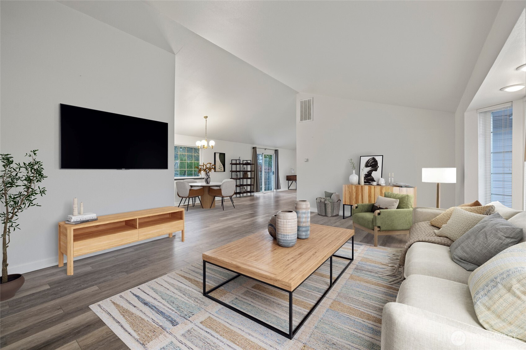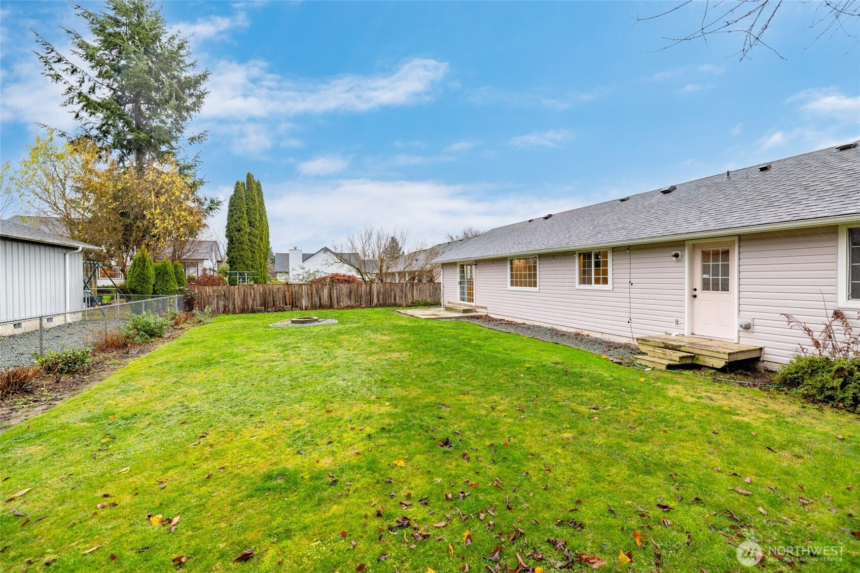 One level 1624 SQ. FT. Sedro Woolley home in the Mountain View Estates Community. Fresh updates in this 3 bed 2 bath home! Features include vaulted ceilings, spacious open living room, dining room attached to an additional family room area. Primary suite with vaulted ceilings and full bath. Additional 2 bedrooms and a full bath. Roof is 9 years old, furnace and water heater 6 years old. Air conditioning 2023 Brand new garage door. Fully fenced private back yard with fire pit, great for your gardening and entertaining. Don't miss this awesome home!