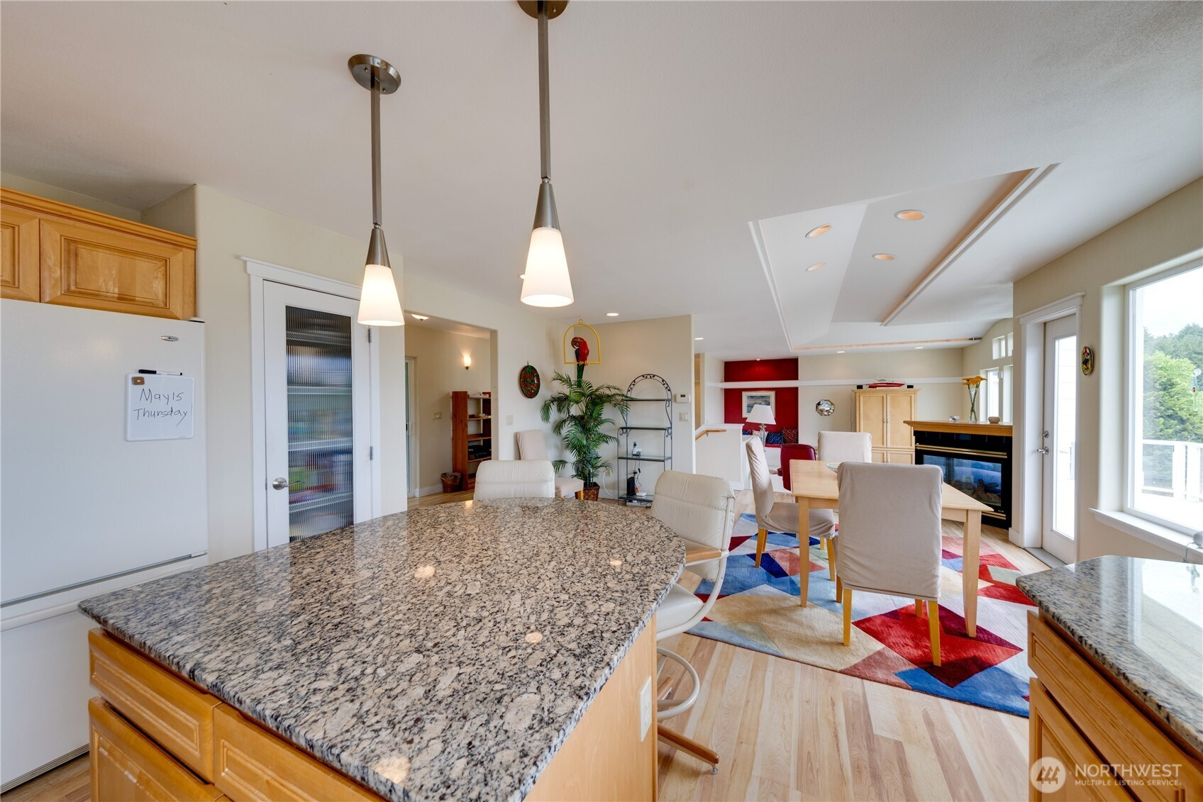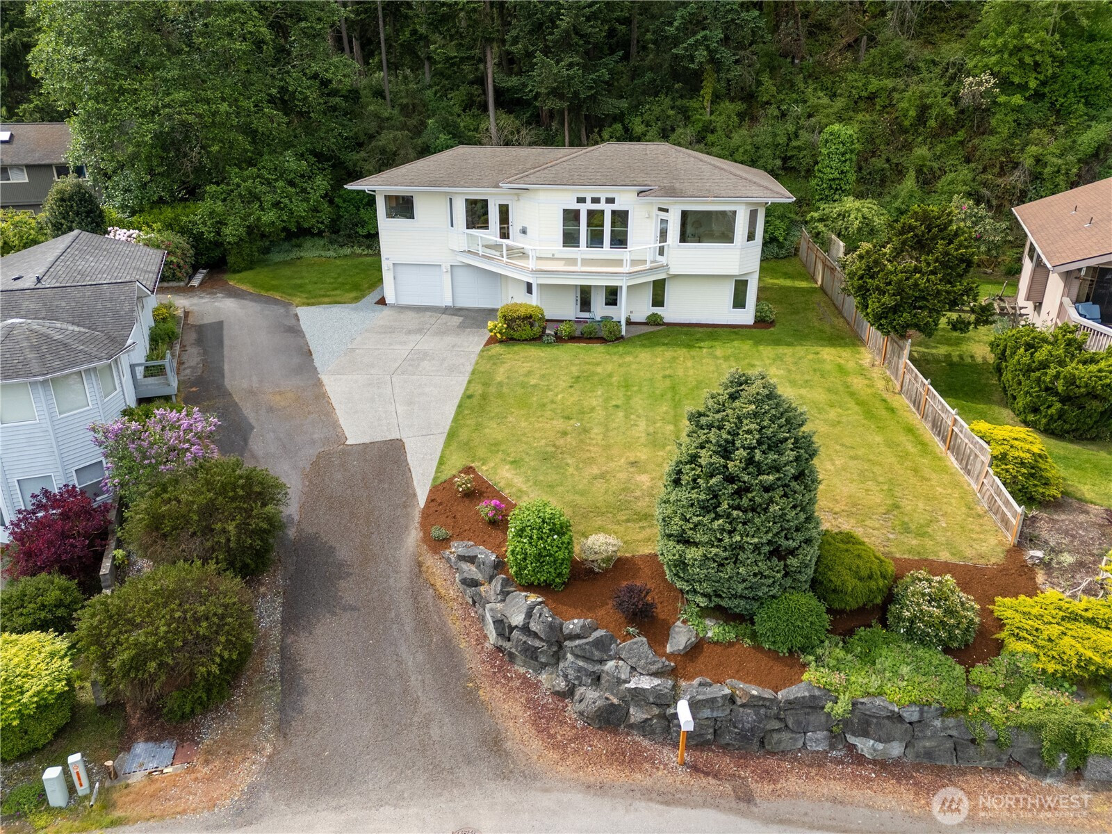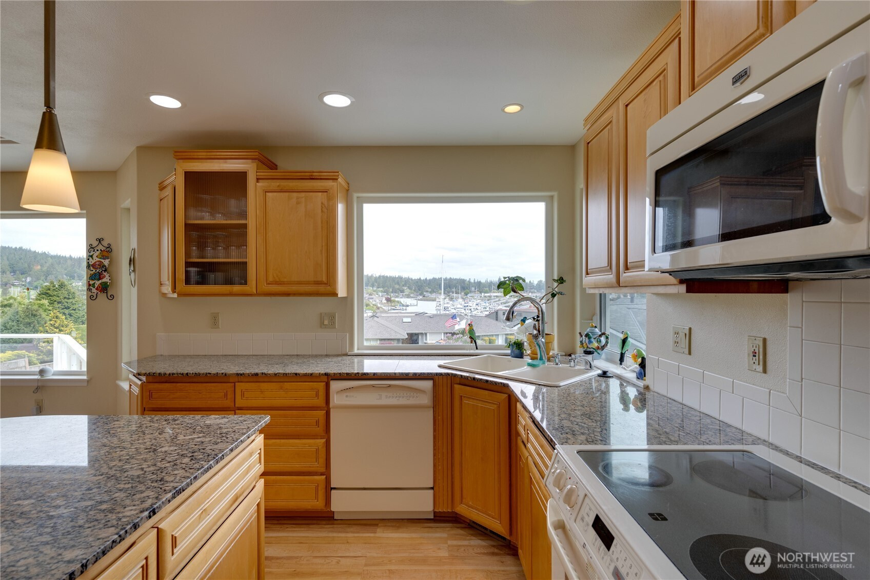 Nestled in the coveted Shelter Bay community, this bright and spacious 2-story home offers breathtaking views of the marina and the iconic Rainbow Bridge, providing the perfect backdrop for a relaxed, outdoor-inspired lifestyle. The expansive second floor is where the magic happens, with the main living area designed to take full advantage of the picturesque scenery. Main floor has potential for mother in law suite as it's wired for water. The sunken living room features a double-sided gas fireplace and a cozy bench seat nook, creating a warm and inviting atmosphere. Hardwood floors extend throughout the kitchen and dining areas, adding elegance to the space. The kitchen is a chef’s dream with granite countertops, a beautiful tile backsplash, a generous center island with seating, and stylish pendant lighting, all perfect for cooking and entertaining. The primary suite is a peaceful retreat, complete with a jetted soaking tub, a walk-in shower, and direct access to the deck, where you can enjoy the fresh air and stunning views. The lower level is home to ample storage space and a workshop off the garage. Shelter Bay amenities enhance this home’s appeal, offering marinas, beach access, a par 3 golf course, sports courts, and a seasonal pool—making it the ideal home for outdoor enthusiasts.