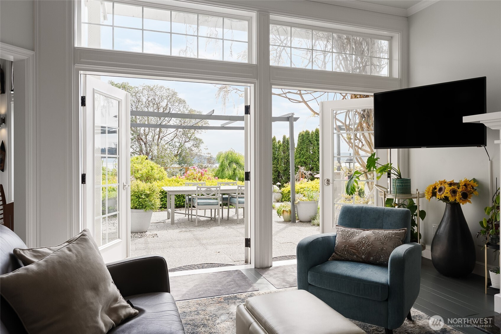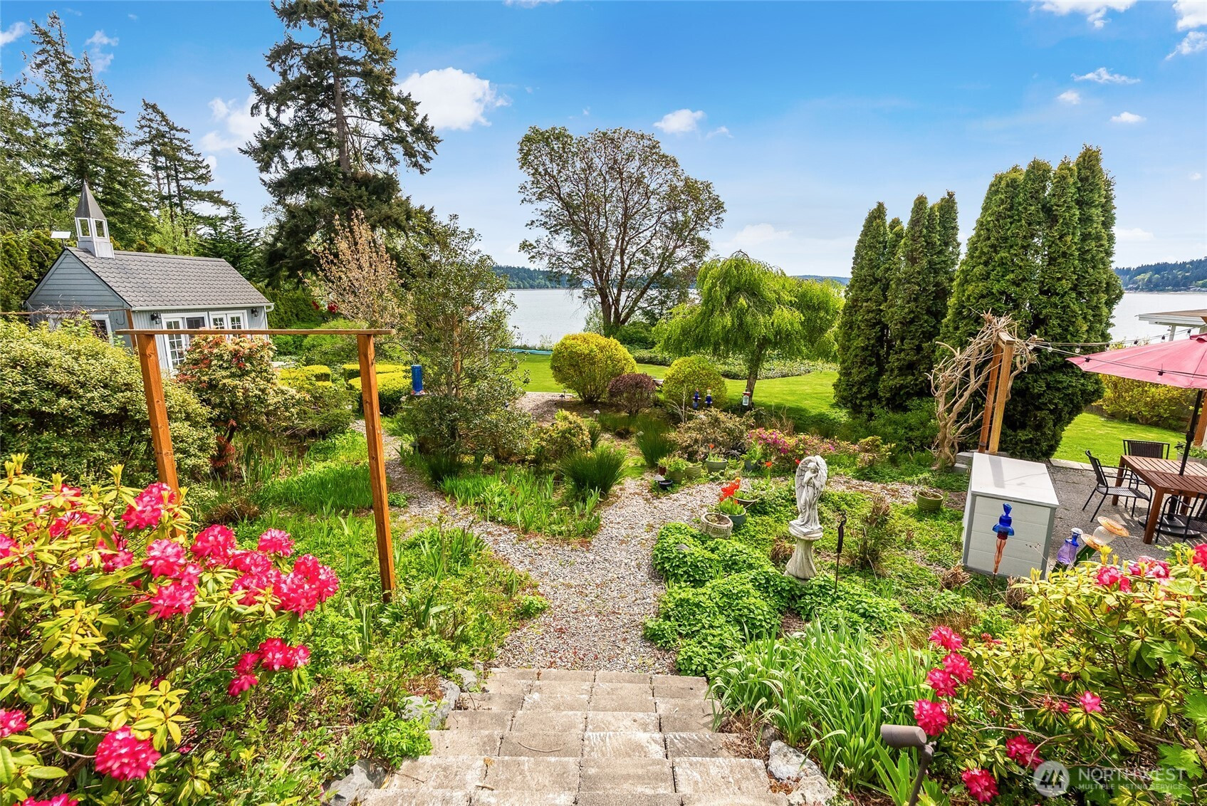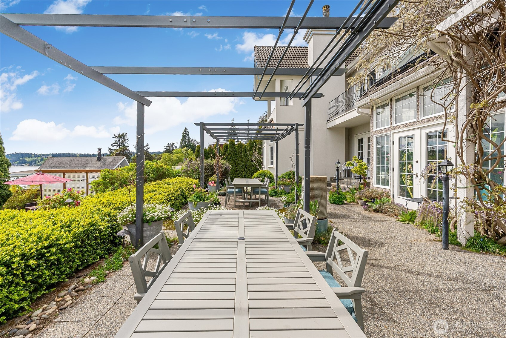A dynamic waterfront estate on Similk Bay offering two fully independent living residences joined by a light-filled atrium, creating genuine flexibility for multigenerational living, hosting friends and loved ones, or operating as an income-generating retreat. With an administrative use permit, the opportunity here extends well beyond the lifestyle. The main residence offers three bedrooms and generous living spaces oriented toward the water, where south-facing views stretch across the bay toward the Kukutali Preserve. There is also a flex space used by the current owner to host art classes which speaks to the kind of inspiration this setting quietly produces. The second residence mirrors the quality and views of the first with two bedrooms, two living rooms, and its own fully equipped kitchen. At 6,098 square feet across both residences, the scale supports every version of how this property can be lived in. What truly sets this estate apart is the waterfront and the access to it. Tideland rights give you private beach access where you could have your own hobby oyster farm, crab in the bay, or kayak across the characteristically calm water to Kiket Island and the Kukutali Preserve. The kind of coastal lifestyle most people only visit, and very few waterfront properties can actually offer. Lush grounds with mature gardens, room to host, and genuine peace and quiet complete a setting that has inspired owners, artists, and everyone lucky enough to visit.