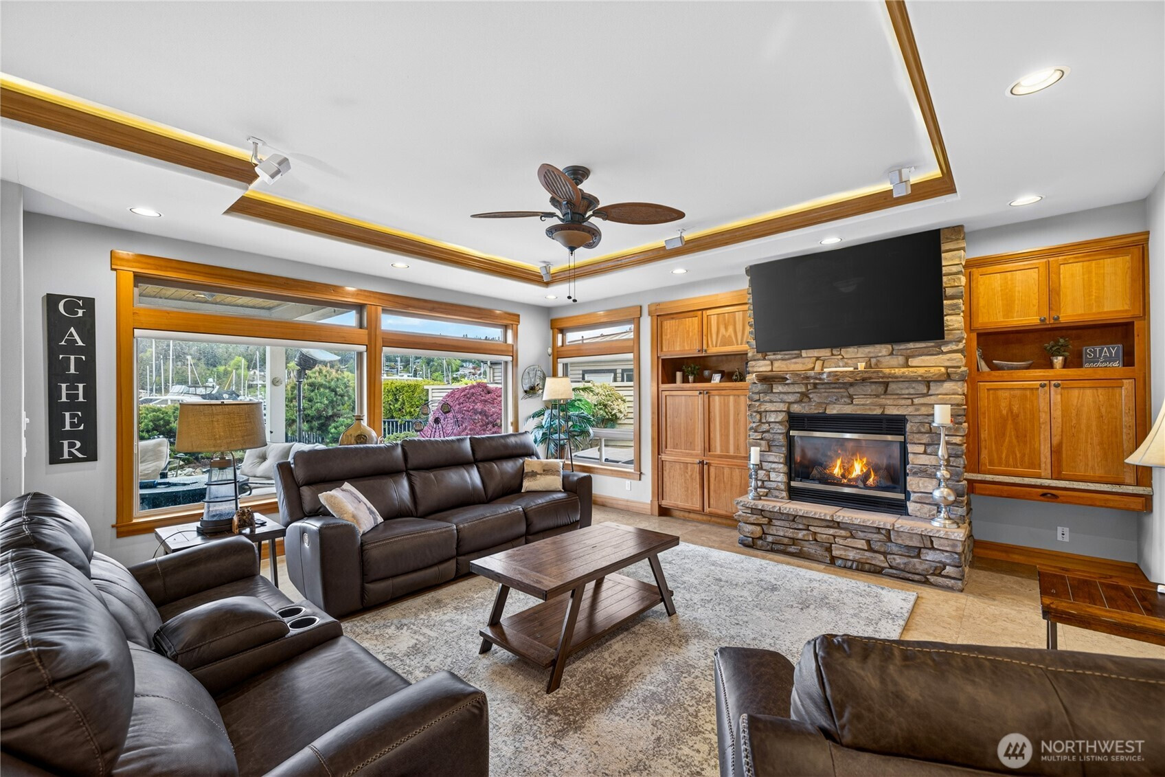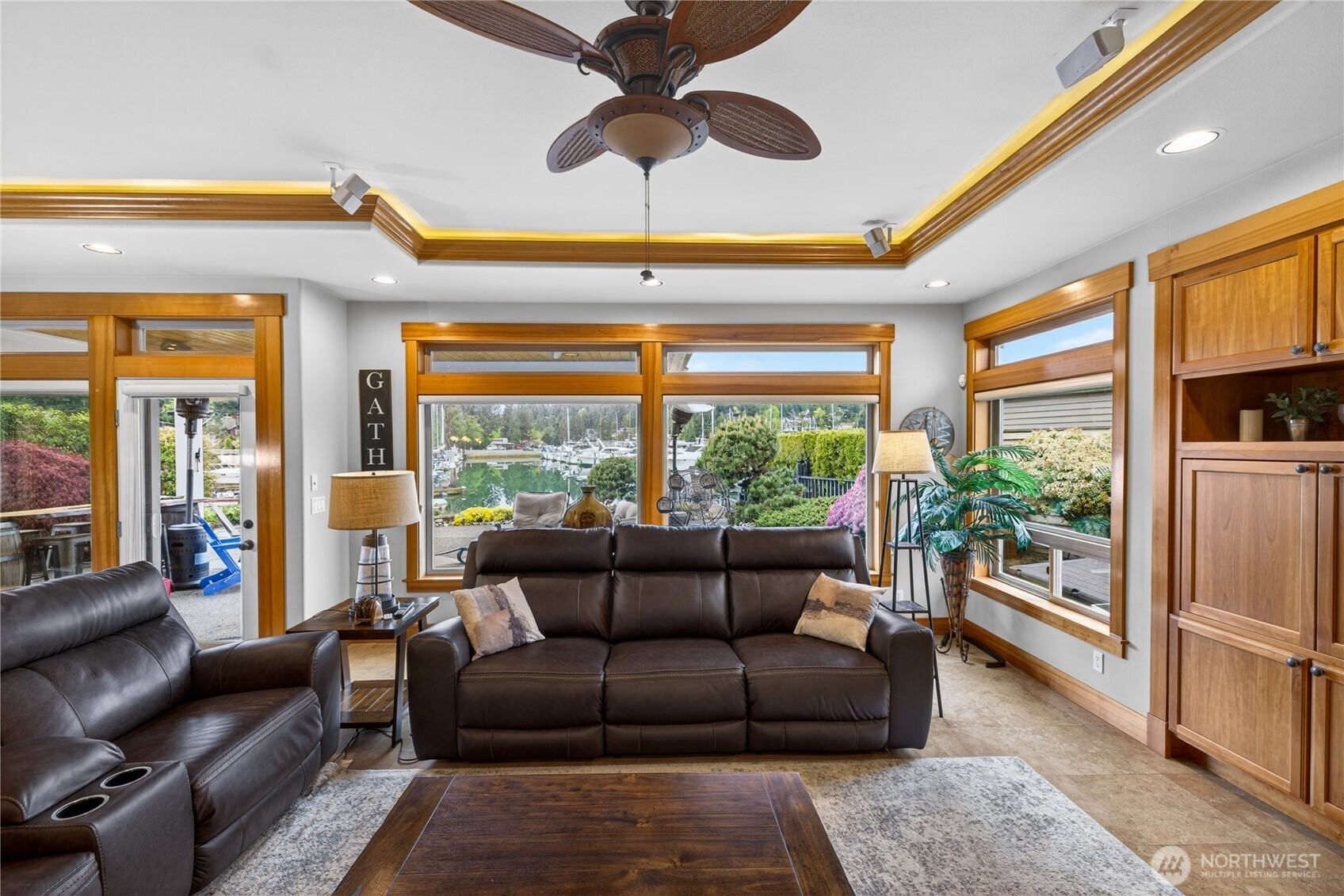 Live the waterfront lifestyle in this beautifully positioned Shelter Bay home with direct channel access, a 60 ft concrete dock, and peaceful marina views. From the moment you arrive, the inviting covered entry and manicured landscaping set the tone for relaxed, coastal living. Inside, an open concept layout filled with abundant natural light creates a warm and welcoming feel, while rich wood cabinetry and stone surfaces elevate the space for everyday living and entertaining. The primary suite offers a spa-like retreat with a soaking tub and generous storage. Expansive windows showcase the water and bring the outdoors in, while the covered patio extends your living space year-round. Enjoy quiet mornings and sunset evenings as boats drift by, then head out from your private dock for effortless days on the water. An oversized garage with built-in storage adds convenience and flexibility. Set in one of La Conner’s most desirable waterfront communities, this home delivers comfort, style, and the lifestyle you’ve been searching for.