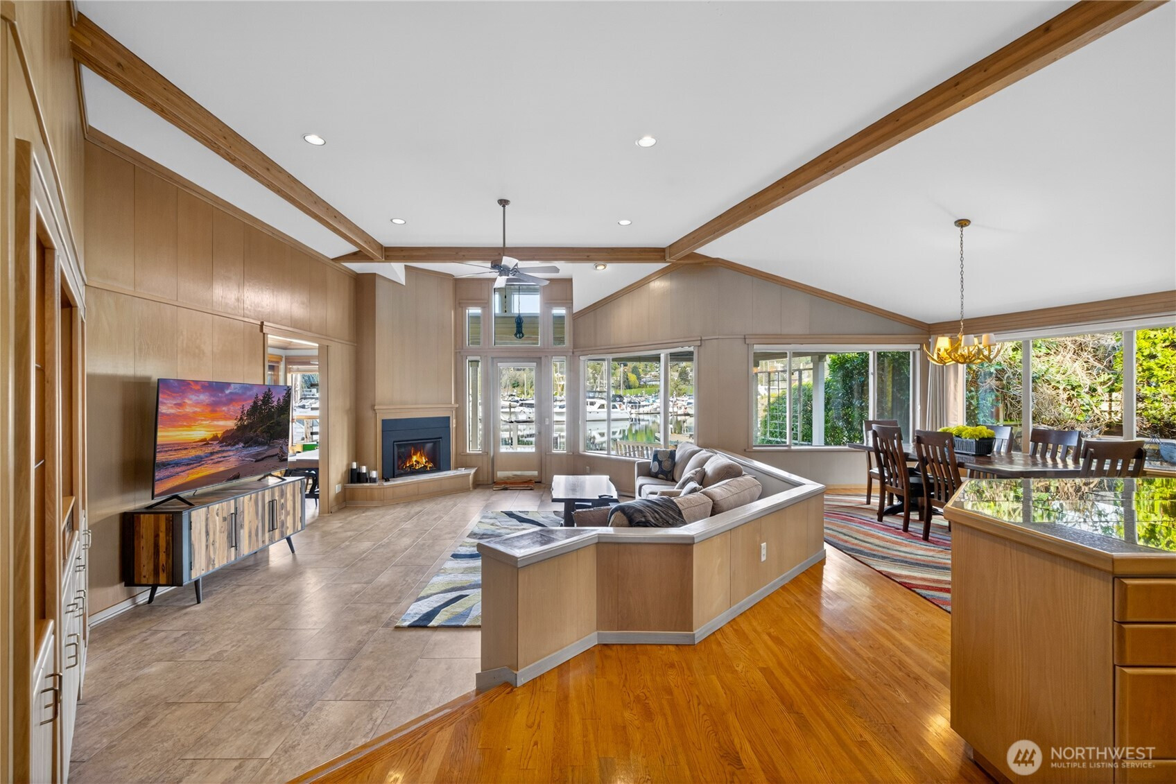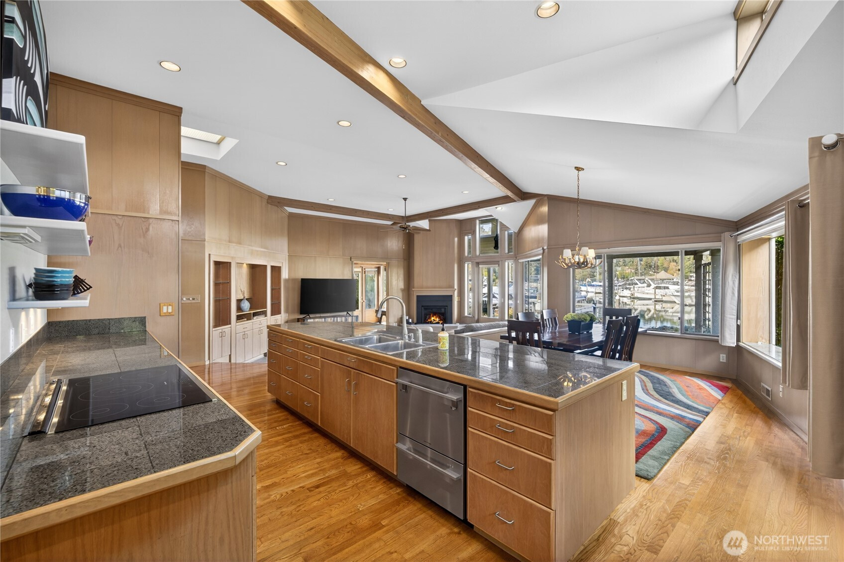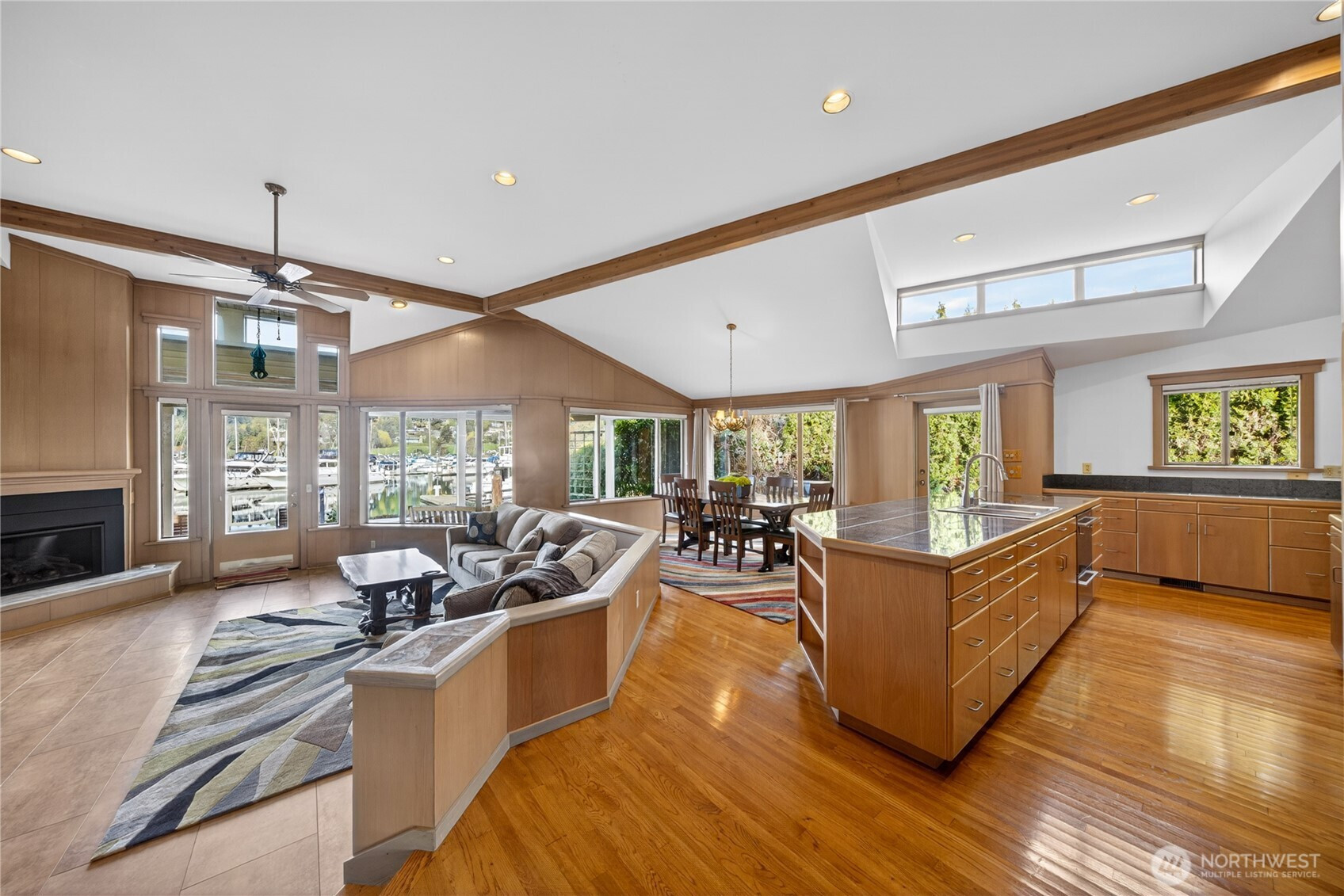 Welcome home to elevated waterfront living in the heart of Shelter Bay, where every detail is designed to capture the beauty of the coastal lifestyle. This stunning residence features a shared 40-foot dock, offering effortless access to the water and endless days of boating, crabbing, and sunset cruising right from your backyard. Inside, the open-concept design invites natural light to pour in, seamlessly connecting the living, dining, and gourmet kitchen spaces. Outfitted with high-end appliances and refined finishes, the kitchen is both a showpiece and a place to gather. The primary suite is a true retreat, complete with a cozy fireplace, a peaceful sitting area, and a spa-inspired ensuite featuring a luxurious soaking tub—your own private escape at the end of the day. Take in sweeping waterfront views from your dock, entertain with ease, or simply unwind in a setting that feels like a year-round getaway. Located in the sought-after Shelter Bay community on leased land, residents enjoy access to a marina, private beach, clubhouse, sports courts, and more—bringing together lifestyle, location, and luxury in one unforgettable property.