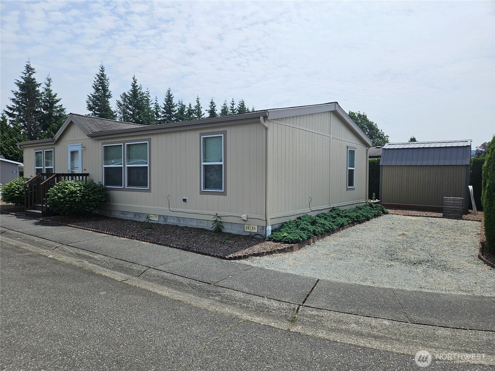 Like new double wide mobile home located on a corner lot in a premiere 55+ park in Sedro Woolley. Three bedrooms, 2 full baths with open and bright floorplan. Spacious kitchen with oak cabinetry and abundant storage, large primary bedroom with full bath. Two additional bedrooms on opposite side of the home with full bath in the hallway. All appliances are included. Separate laundry room. Everything is in top condition! Outside is a low maintenance yard which includes a carport, two storage buildings (4x10 and 8x12) and one extra parking space. Community features available: storage units, RV parking, clubhouse and community park. Park is centrally located near all services and recreation.