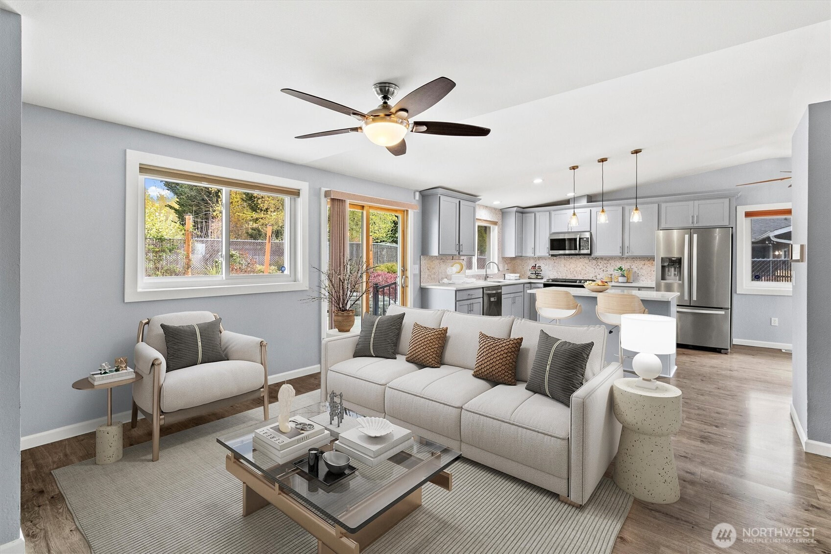 You know the feeling — you walk in, exhale, and think this is it. That's exactly what 914 S 28th Street delivers. Wonderfully updated between 2017 and 2020, this 3-bedroom, 1.75-bath home is completely turn-key and waiting for you.A Thoughtfully planned, whole-home renovation gives buyers the confidence of knowing everything was done together, done right, and done to last. New windows, new cement board siding, a fully restored crawl space with fresh vapor barrier and all-new insulation, a double sewer cleanout, and a showpiece back bathroom featuring tiled shower walls, a built-in bench, and a beautifully appointed barn door all reflect the same unwavering standard of care. Nearly every inch of this home has been elevated — simply arrive and settle in.Outside, the thoughtfully landscaped grounds are just as impressive. A tiered front yard with a charming patio area replaces traditional lawn with low-maintenance beauty — no mowing, no fuss. The backyard offers a second patio perfect for morning coffee or evening gatherings, plus a sweet patch of lawn for your four-legged companions — and Bakerview Park's off-leash dog park and disc golf course are just minutes away.Skagit Valley Hospital, nearby schools, 15th Street Park, Kiwanis Park, Hillcrest Park, and the Skagit River trail system are all just minutes away. Downtown dining, shops, and daily needs are within easy reach — and with Skagit Station and I-5 less than a mile away, make Mount Vernon your home base.