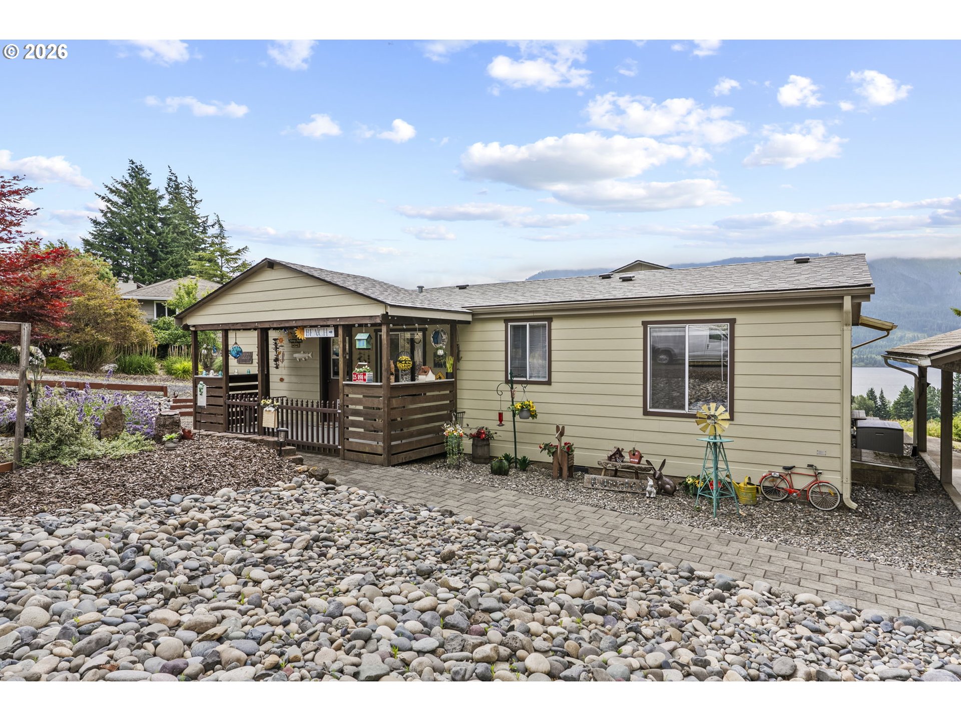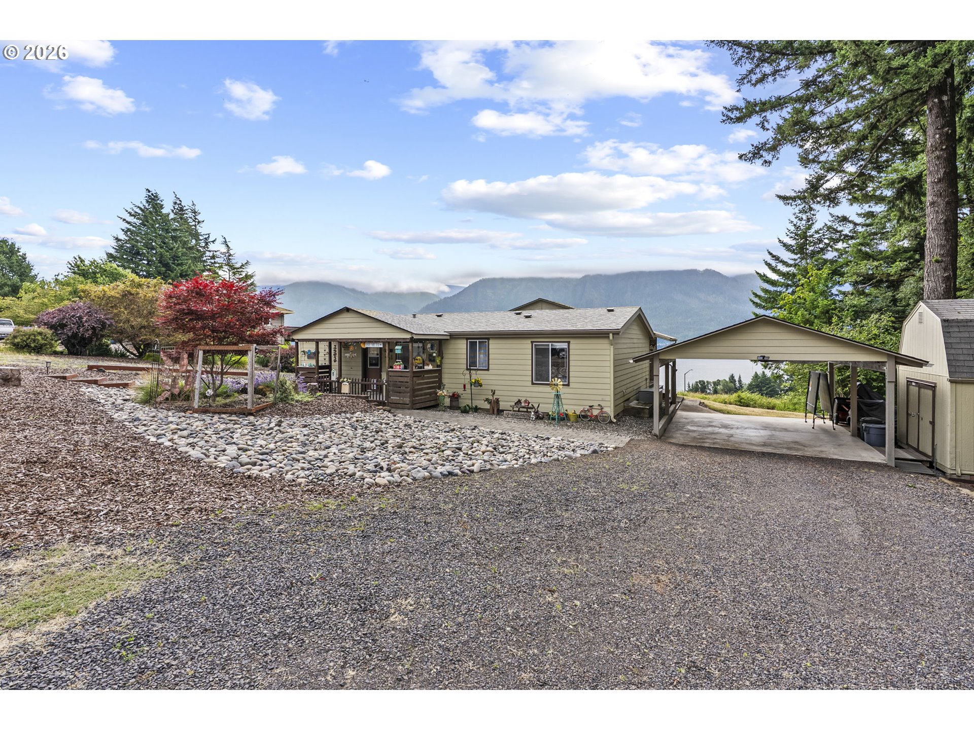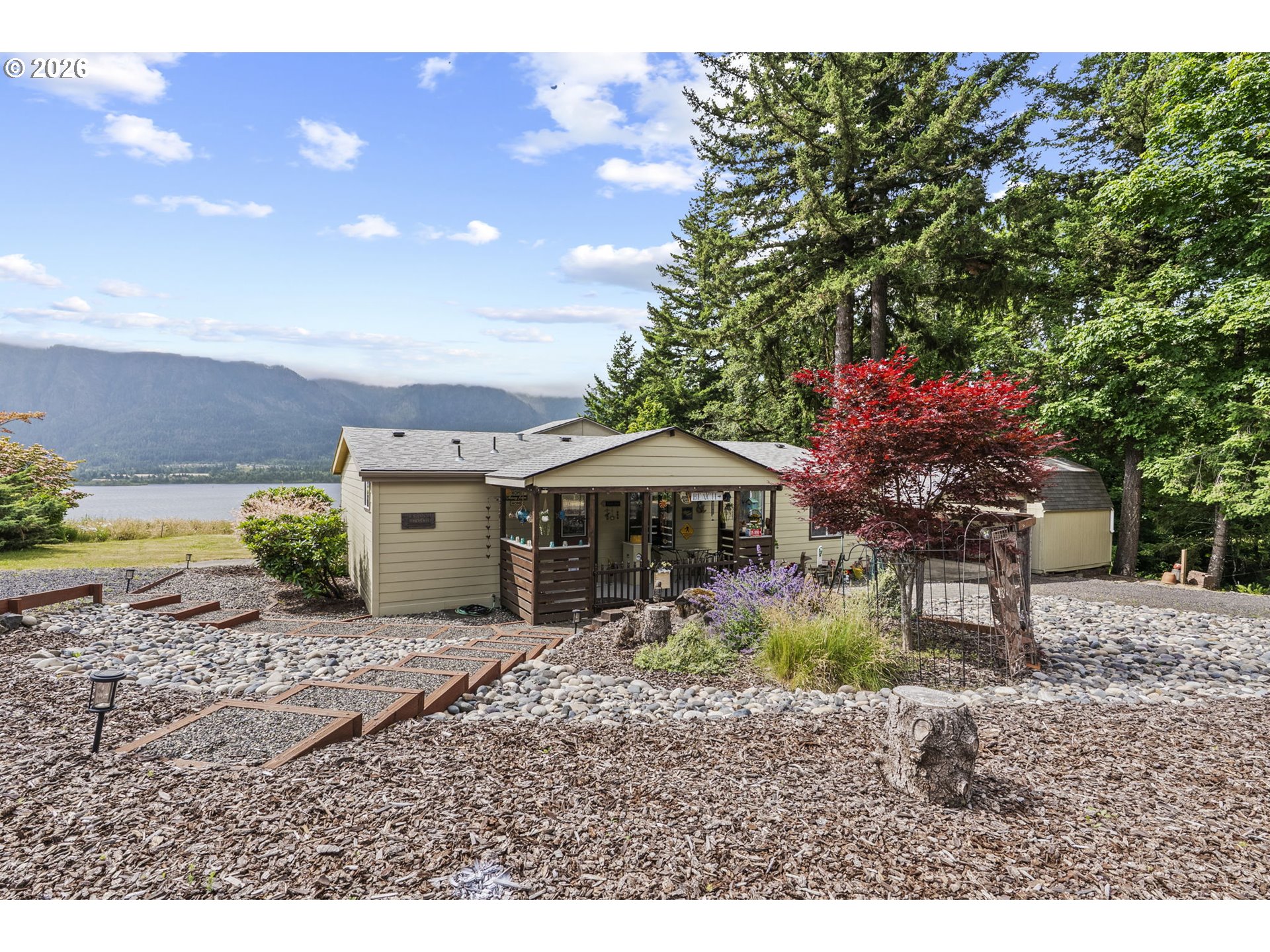 Charming 3-Bedroom Home with Sweeping Columbia River & Cascade Mountain ViewsWelcome to your delightful 3-bedroom, 2-bath home perfectly positioned to capture stunning panoramic views of the Columbia River and the lower Cascade Mountains of Oregon.This home is bright and full of warmth. It has been well-maintained home and features many owner upgrades. Large windows frame the natural beauty outside. The living area flows seamlessly into a spacious kitchen with ample cabinetry, updated appliances, and a cozy dining nook — perfect for enjoying morning coffee with a view.The primary suite offers a peaceful retreat with its own private bath and generous closet space. Two additional bedrooms provide flexibility for guests, a home office, or creative space, all while keeping comfort and functionality in mind.Outside, find a generous deck where you can relax and take in the breathtaking scenery — from vibrant sun rises over the Columbia River to the serene silhouette of the Cascades. The yard offers space to garden, play, or simply enjoy the fresh mountain air.Located in a quiet, scenic area with easy access to outdoor recreation, wineries, and small-town charm, this home offers the perfect mix of peaceful living and natural wonder. In nearby downtown Stevenson, enjoy the Waterfront and your selection of shops, restaurants and taverns. Whether you're seeking a full-time residence or a tranquil weekend escape, this is your chance to own a slice of the Pacific Northwest with views you will enjoy year-round. Ask about options to include all or some furniture at full-asking. Real Estate can be an emotional journey, come take yours today!