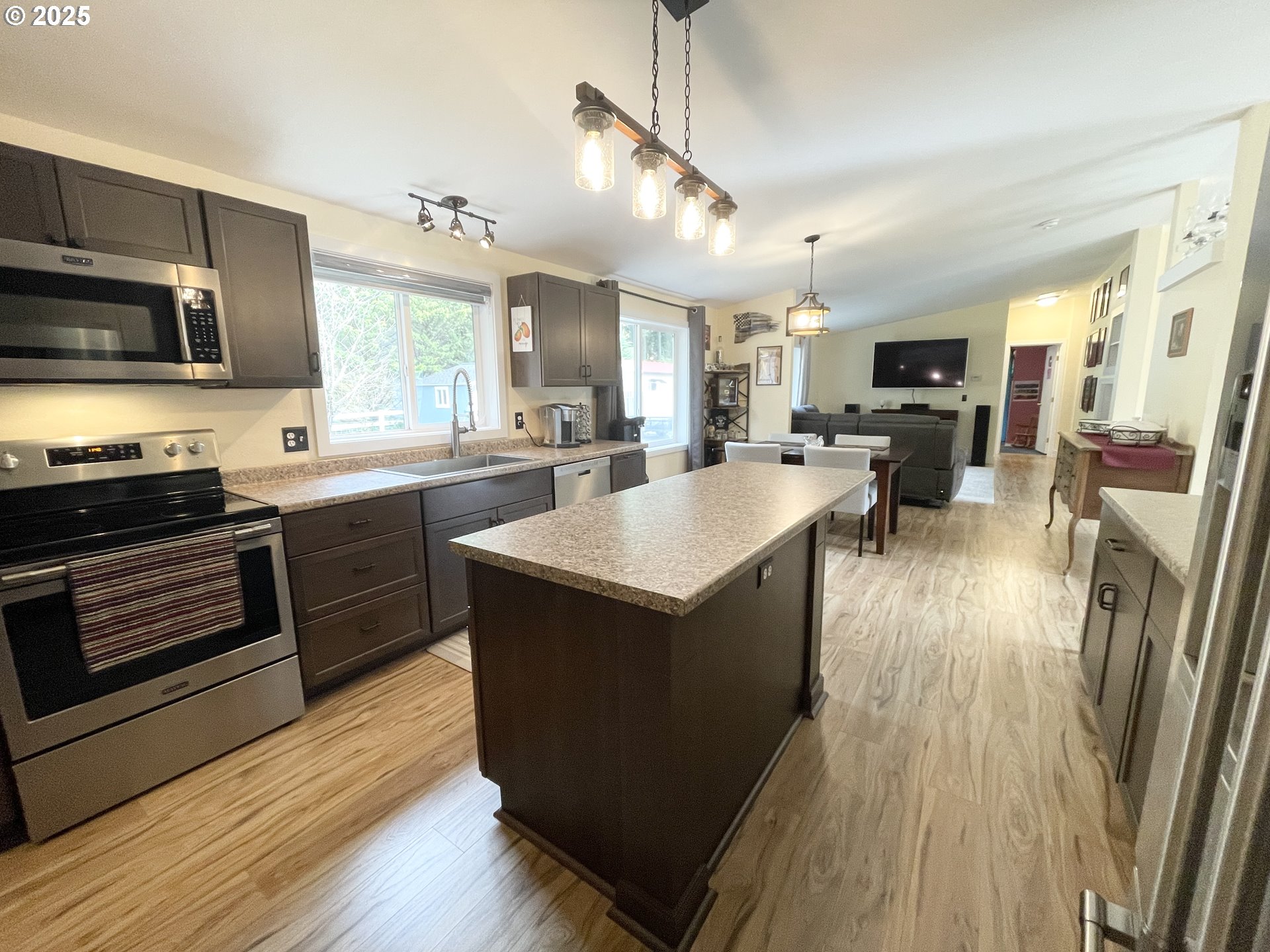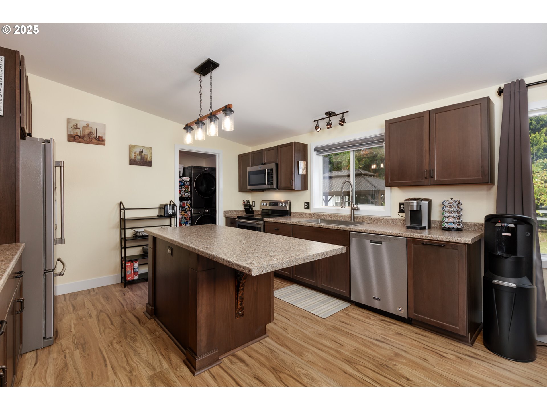 Dishwasher, FreeStandingRange, FreeStandingRefrigerator, Island, Microwave, Pantry, StainlessSteelApplianc
