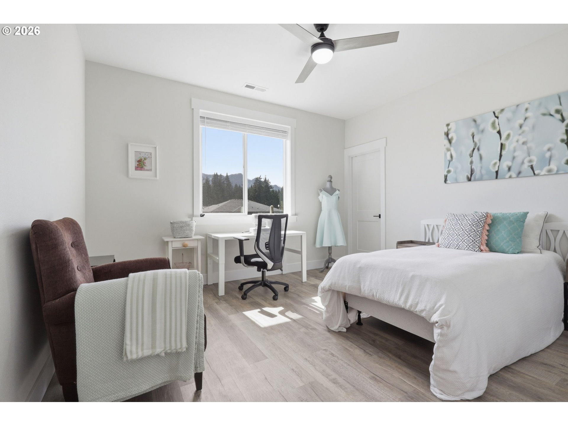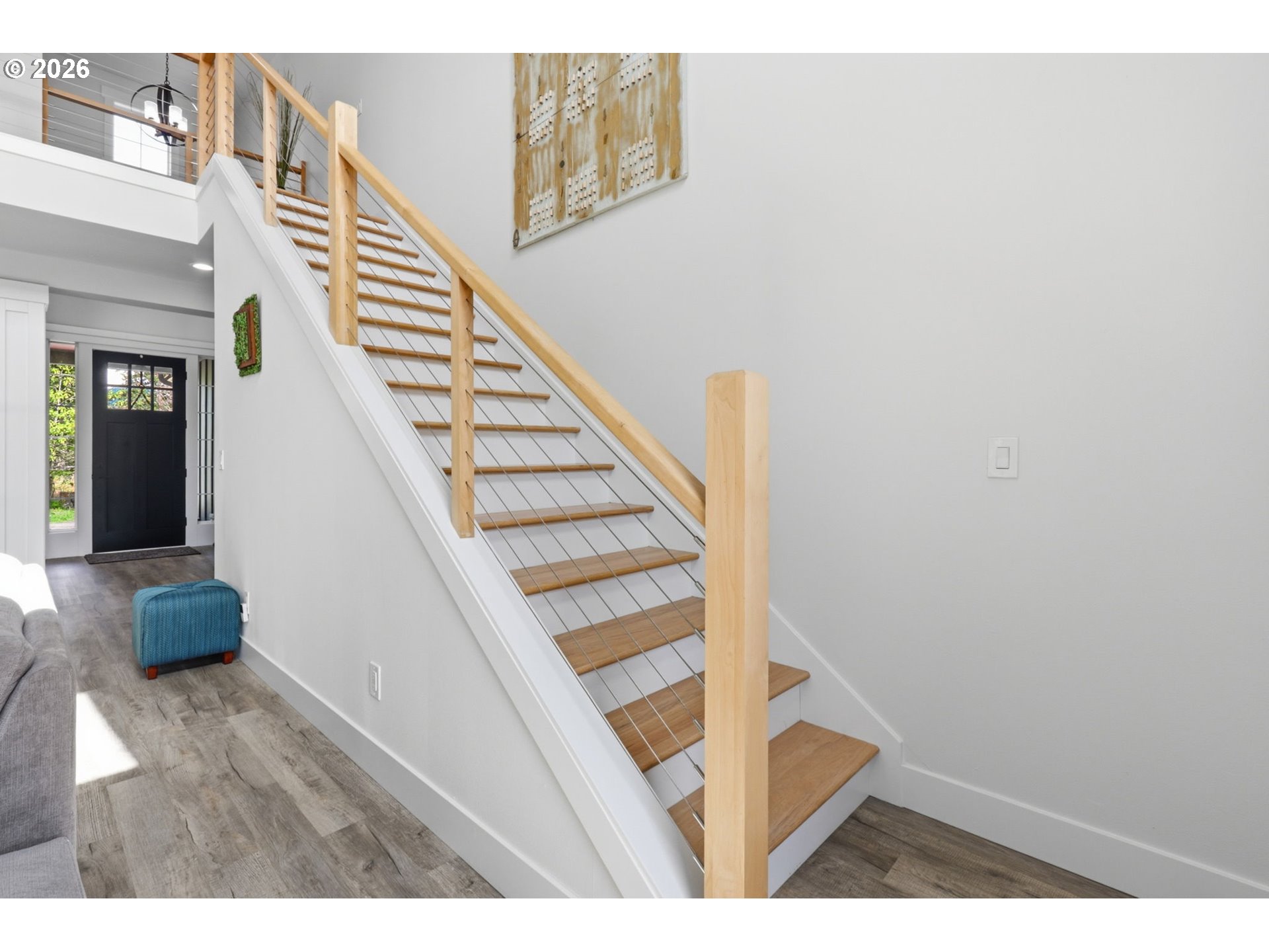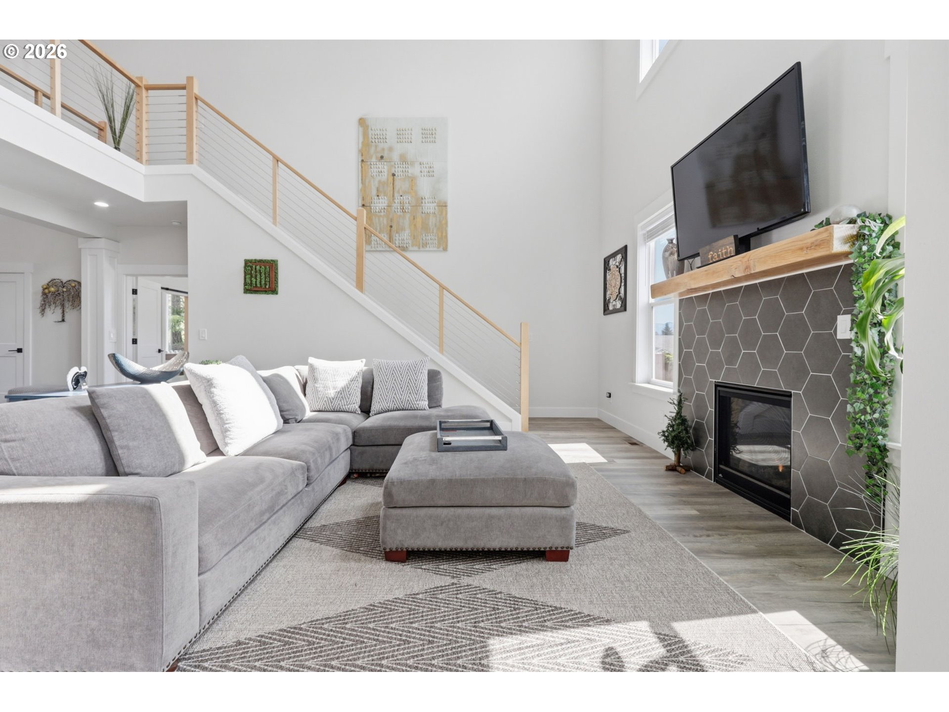 Framed by mountain views and clean modern lines, this beautifully designed Stevenson home stands out from the moment you arrive. Set on a corner lot, the exterior blends rich tones and warm wood accents, creating a look that feels both elevated and inviting.Inside, the home opens up with soaring ceilings, expansive windows, and a flood of natural light that carries throughout the main living spaces. The design feels intentional at every turn, from the open railing staircase to the sleek fireplace and wide plank flooring that ties everything together. The kitchen is a true centerpiece, built for both everyday living and entertaining, with a 5-burner gas range, walk-in pantry, showcase cabinets, and a built-in wine cooler. It flows seamlessly into the dining and living areas, creating a space that feels connected, open, and easy to live in. The main level primary suite offers a private retreat with a spa-like feel, featuring a soaking tub, walk-in shower, and dual vanity, all finished with clean, modern touches and great natural light.Upstairs, a spacious bonus room adds flexibility for a media room, home office, or additional living space. Step outside, and the lifestyle continues. A large patio is ready for gatherings around the firepit, with raised garden beds adding both charm and function. Tucked above it all, a quiet picnic area sits among the trees, giving you your own peaceful escape right at home. Just minutes from the Bridge of the Gods, hiking trails, and downtown Stevenson, this home brings together thoughtful design, newer construction, and the kind of setting that’s hard to find.