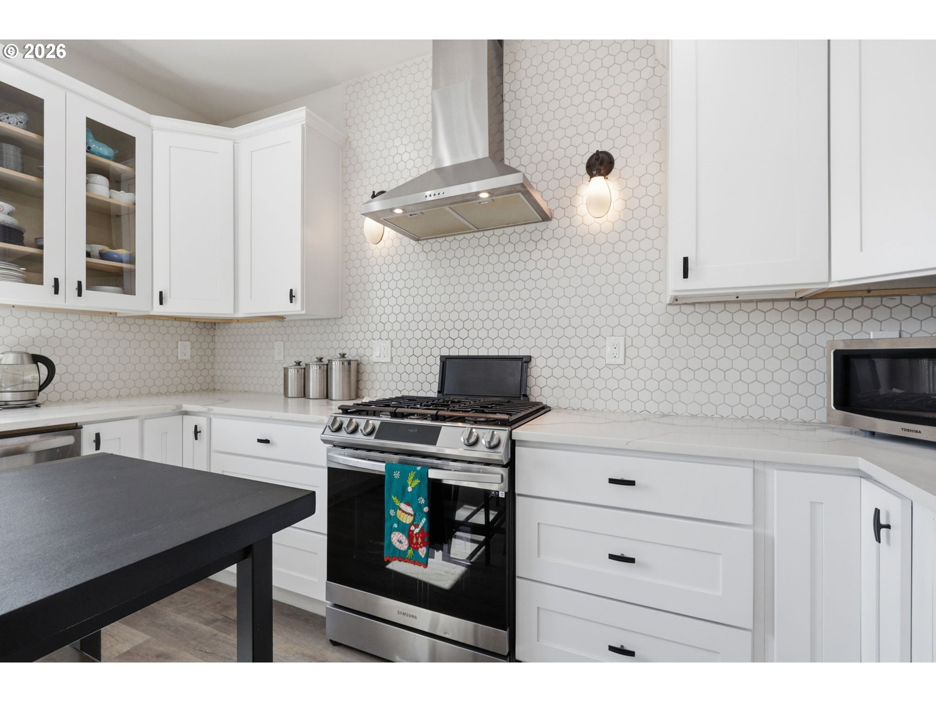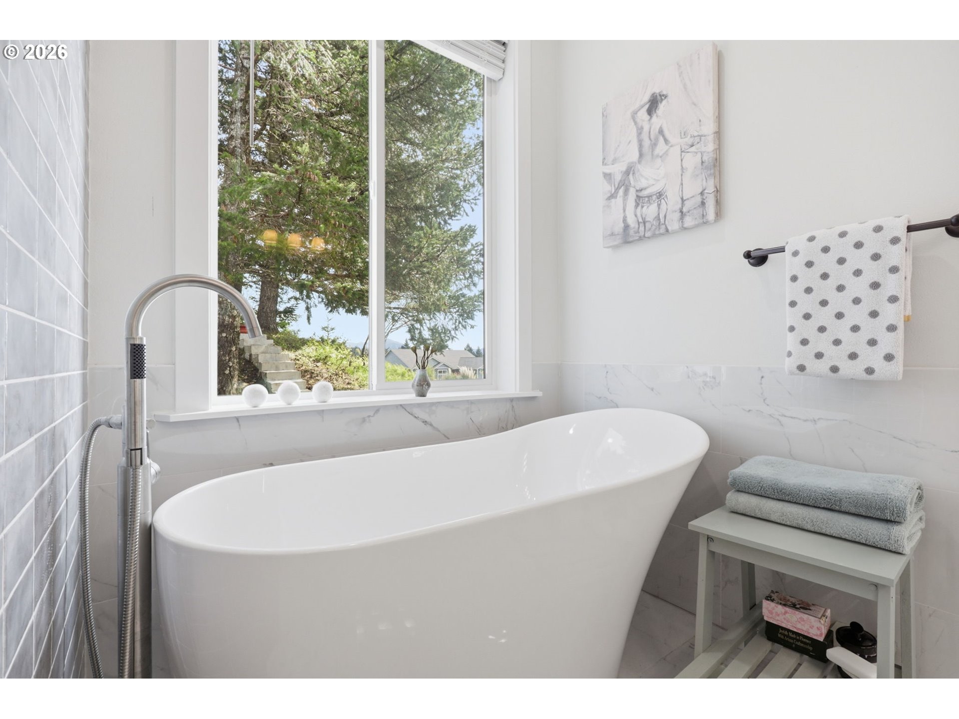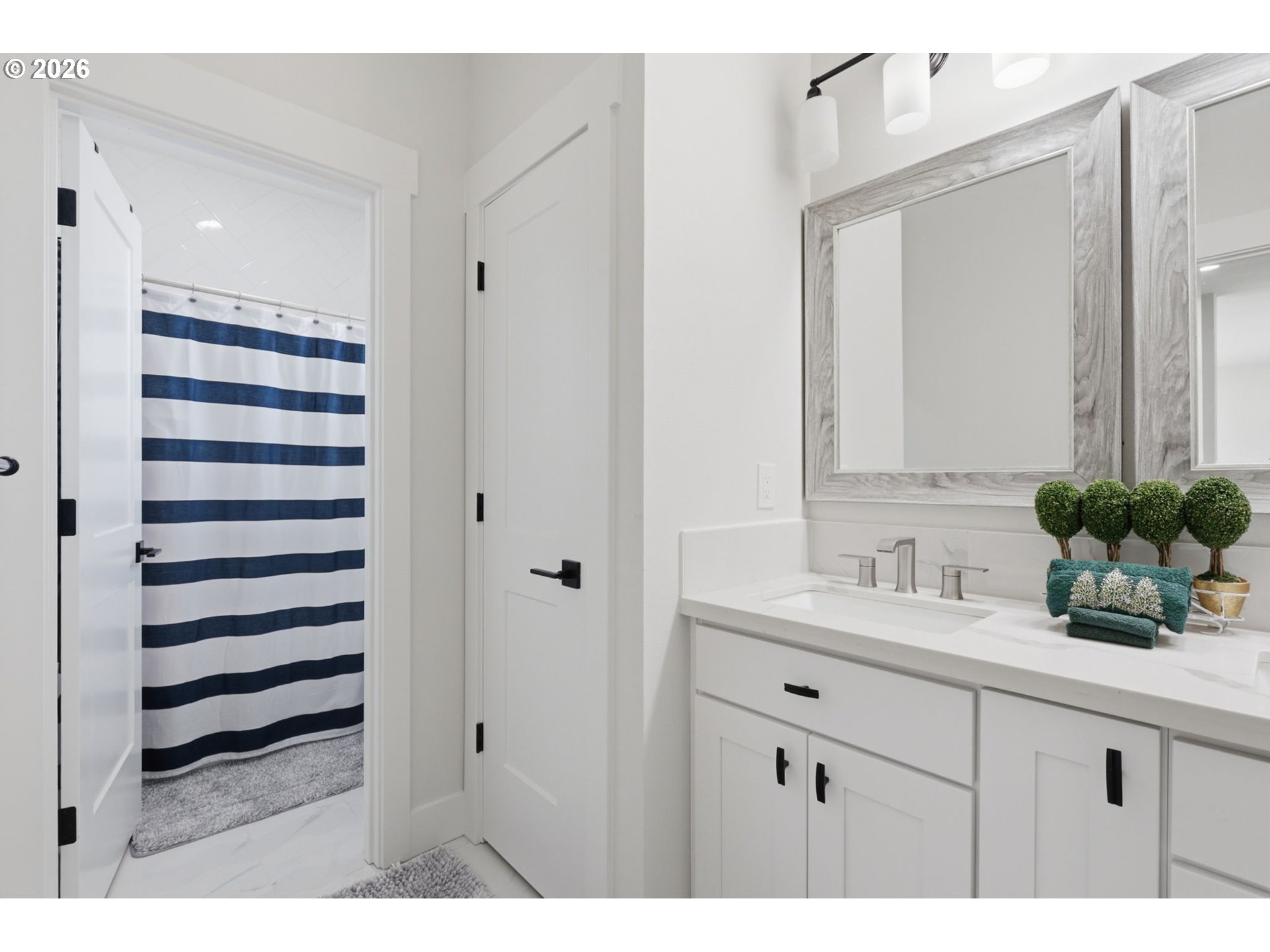 Framed by mountain views and clean modern lines, this beautifully designed Stevenson home stands out from the moment you arrive. Set on a corner lot, the exterior blends rich tones and warm wood accents, creating a look that feels both elevated and inviting.Inside, the home opens up with soaring ceilings, expansive windows, and a flood of natural light that carries throughout the main living spaces. The design feels intentional at every turn, from the open railing staircase to the sleek fireplace and wide plank flooring that ties everything together. The kitchen is a true centerpiece, built for both everyday living and entertaining, with a 5-burner gas range, walk-in pantry, showcase cabinets, and a built-in wine cooler. It flows seamlessly into the dining and living areas, creating a space that feels connected, open, and easy to live in. The main level primary suite offers a private retreat with a spa-like feel, featuring a soaking tub, walk-in shower, and dual vanity, all finished with clean, modern touches and great natural light.Upstairs, a spacious bonus room adds flexibility for a media room, home office, or additional living space. Step outside, and the lifestyle continues. A large patio is ready for gatherings around the firepit, with raised garden beds adding both charm and function. Tucked above it all, a quiet picnic area sits among the trees, giving you your own peaceful escape right at home. Just minutes from the Bridge of the Gods, hiking trails, and downtown Stevenson, this home brings together thoughtful design, newer construction, and the kind of setting that’s hard to find.