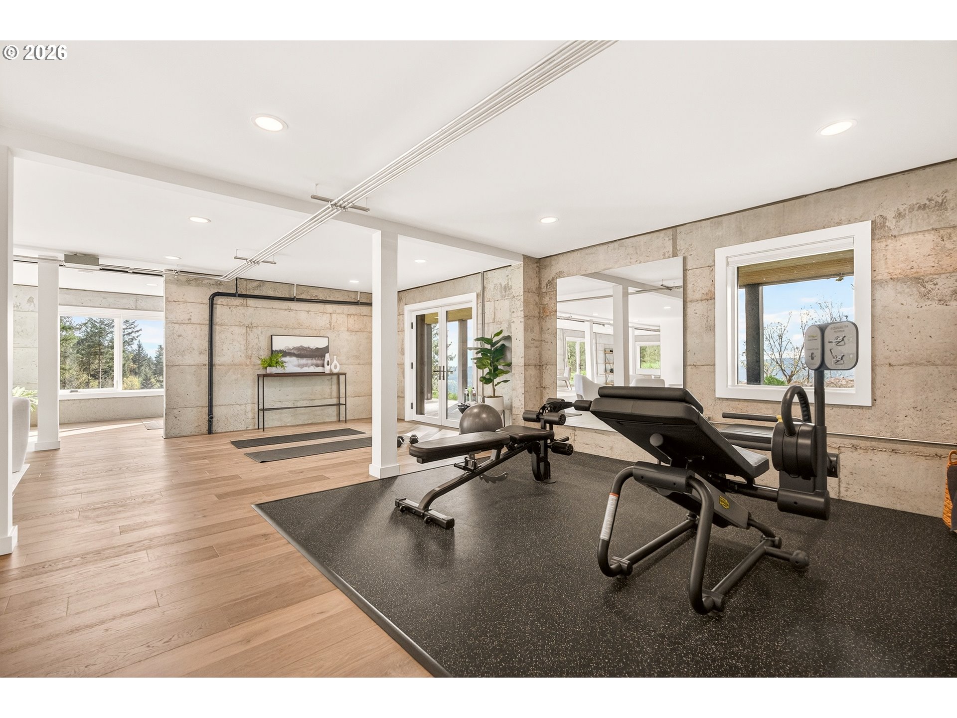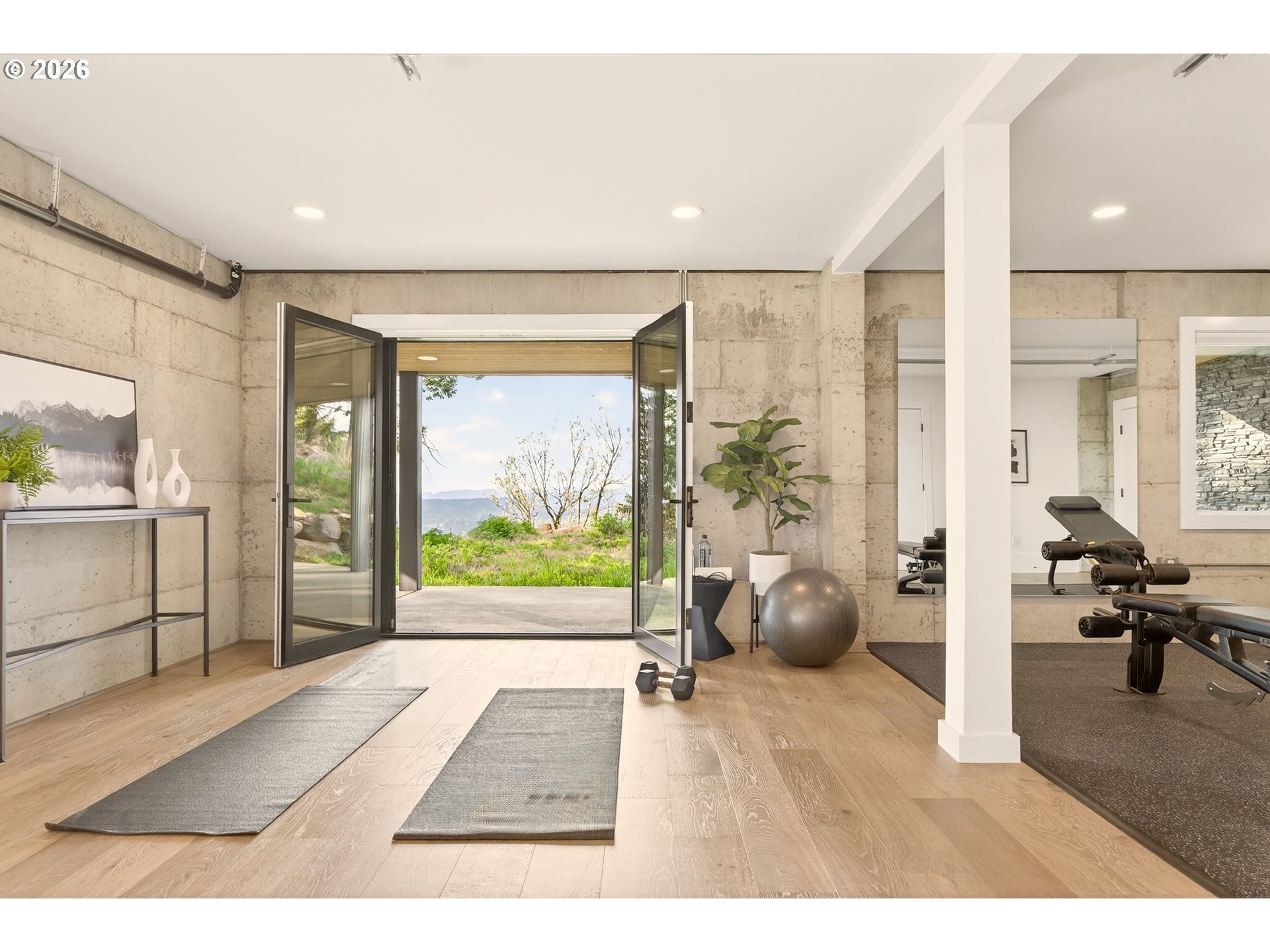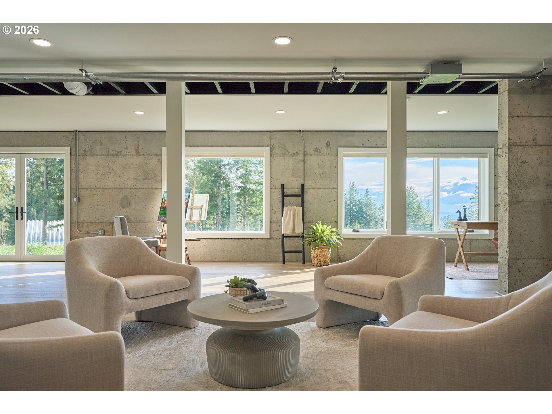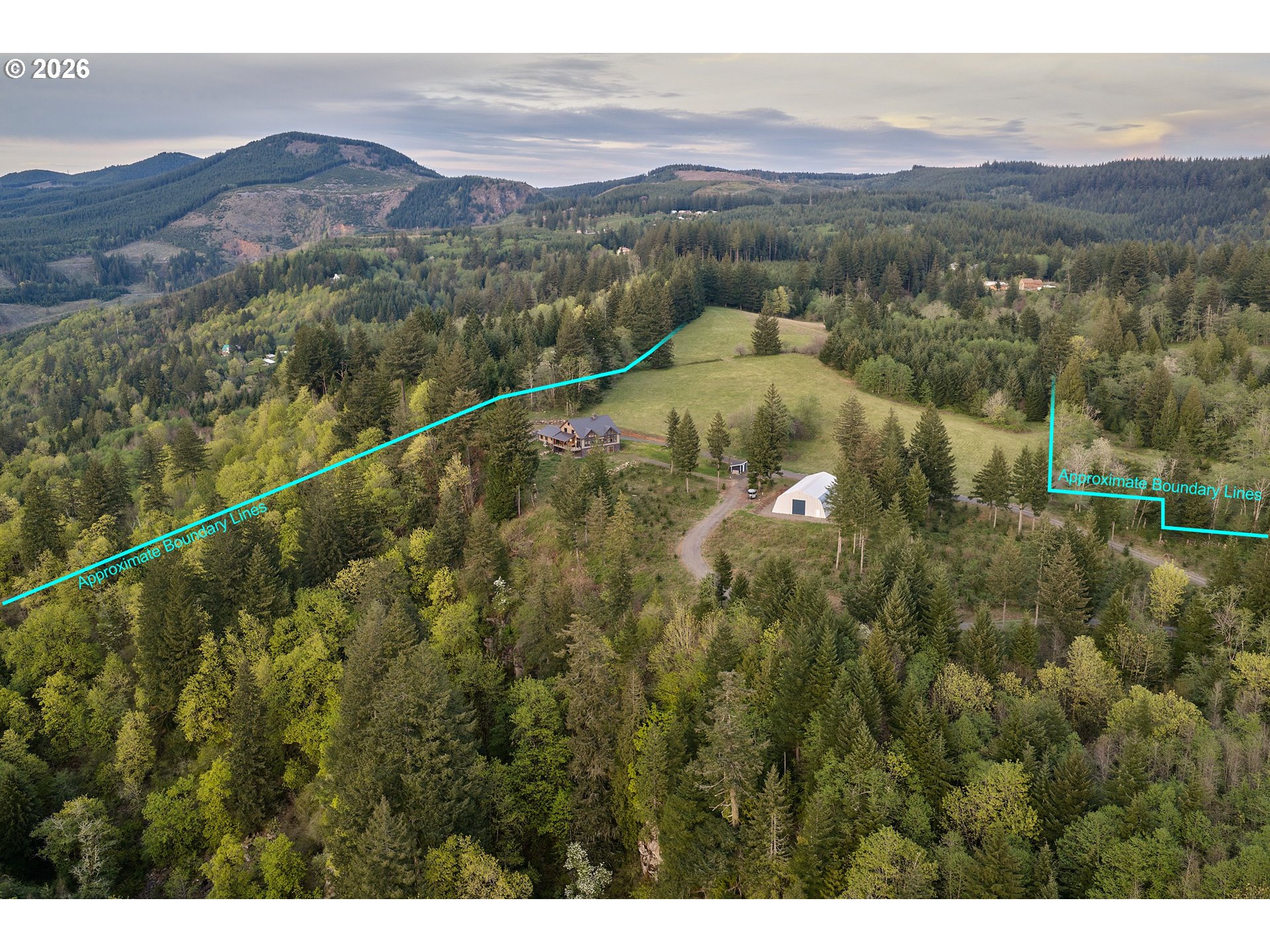 Welcome to the apex property of Washougal. Never has a more unique and astounding estate touched the market here. A nearly 50 acre property encompassing wildly different terrains from rolling meadows, dense mature forests, massive boulder fields, a towering waterfall along a long basalt cliff, and expansive views for many, many miles. The three adjacent lots are also available for sale, putting the total available at 73 acres all zoned R-5. Set right at the top of the bluff overlooking most of Washougal is an equally impressive home. With laminated, tongue and groove timber walls born from thermally modified Southern Yellow Pine utilizing the cutting-edge eco friendly and ultra energy efficient Enertia envelope, this bespoke luxury cabin is packed with every feature you can imagine. Two primary suites, a large multi-purpose/bunk room, cozy main living area around a huge central masonry heater fireplace, bright and airy sun room with hard-wired motorized windows, open flex space throughout the entire daylight basement, and multiple covered and open aired deck/patio spaces make all of the square footage usable for various needs. Outside you'll be amazed by the incredible 4,100 square foot Quonset hut with pull-through oversized 14' high roll-up doors. With high speed Starlink satellite internet (and fiber on the way!), a backup generator with underground 500 gallon propane tank, the wood fired masonry heater, and a large high production private well with heated oversized pump house shed, you can comfortably weather even the strongest of storms on your private compound. Reach out to your agent for a more detailed breakdown of all the incredible features of this home and property.