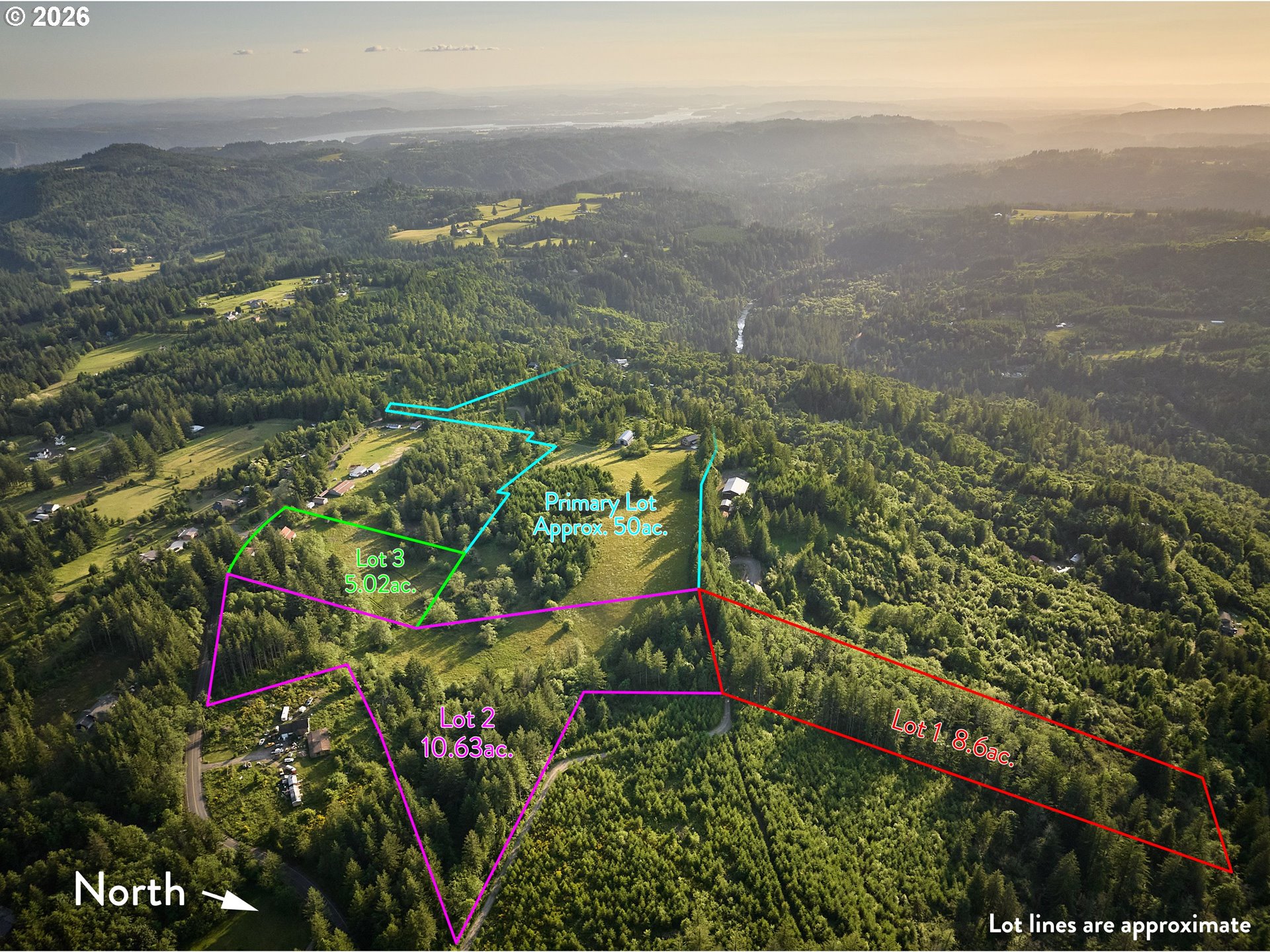 Welcome to the apex property of Washougal. Never has a more unique and astounding estate touched the market here. A 73 acre property encompassing wildly different terrains from rolling meadows, dense mature forests, massive boulder fields, a towering waterfall along a long basalt cliff, and expansive views for many, many miles. Currently 4 separate lots all zoned R-5, the residence is on its own nearly 50 acre lot, while the other 3 buildable lots add an additional 23 acres. Set right at the top of the bluff overlooking most of Washougal is an equally impressive home. With laminated, tongue and groove timber walls born from thermally modified Southern Yellow Pine utilizing the cutting-edge eco friendly and ultra energy efficient Enertia envelope, this bespoke luxury cabin is packed with every feature you can imagine. Two primary suites, a large multi-purpose/bunk room, cozy main living area around a huge central masonry heater fireplace, bright and airy sun room with hard-wired motorized windows, open flex space throughout the entire daylight basement, and multiple covered and open aired deck/patio spaces make all of the square footage usable for various needs. Outside you'll be amazed by the incredible 4,100 square foot Quonset hut with pull-through oversized 14' high roll-up doors. With high speed Starlink satellite internet (and fiber on the way!), a backup generator and underground 500 gallon propane tank, the wood fired masonry heater, and a large high production private well with heated oversized pump house shed, you can comfortably weather even the strongest of storms on your private compound. Reach out to your agent for a more detailed breakdown of all the incredible features of this home and property.
