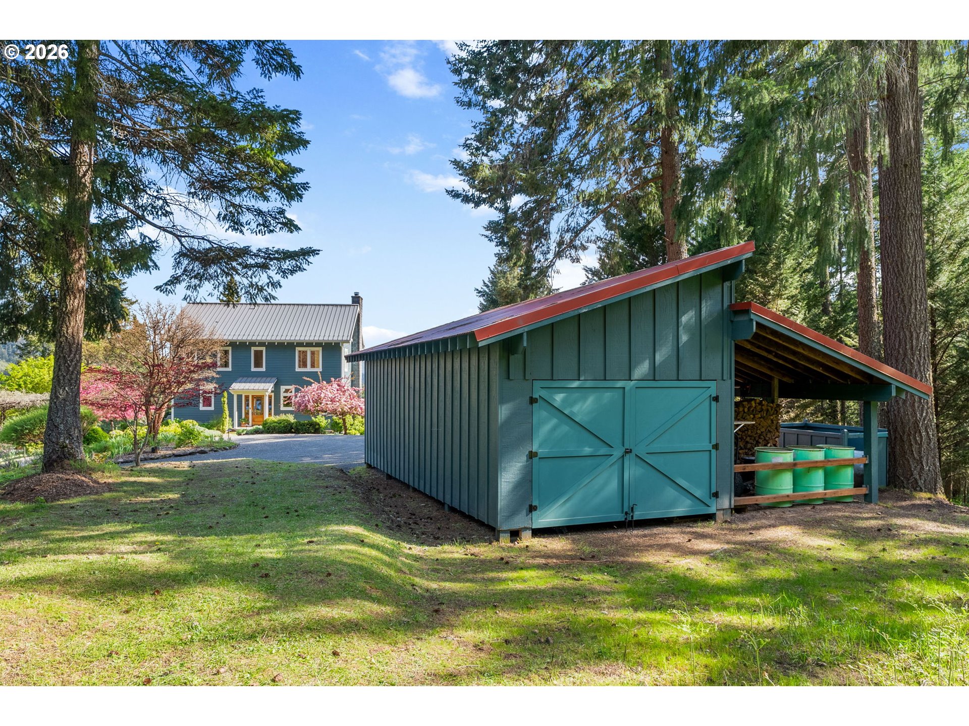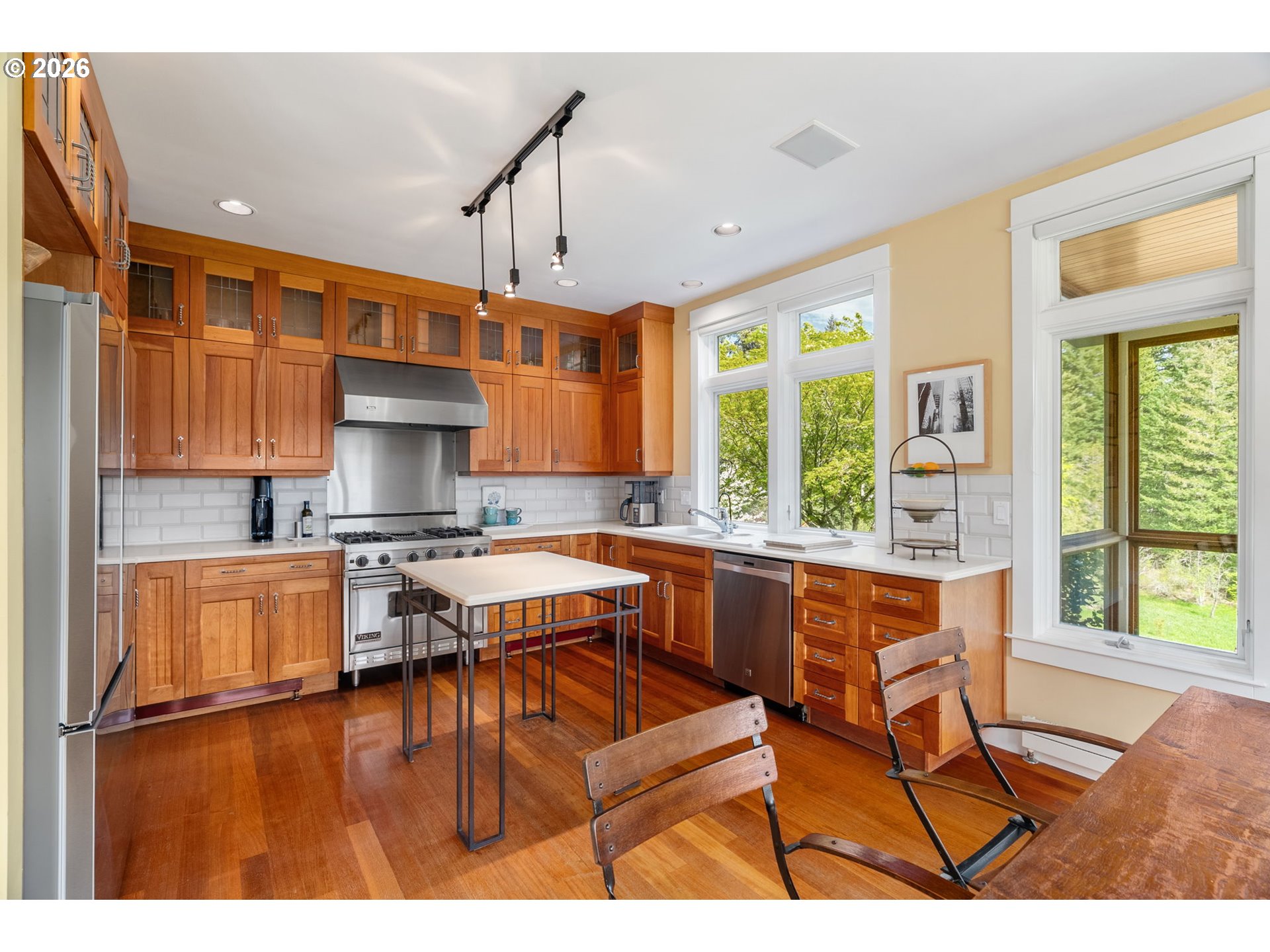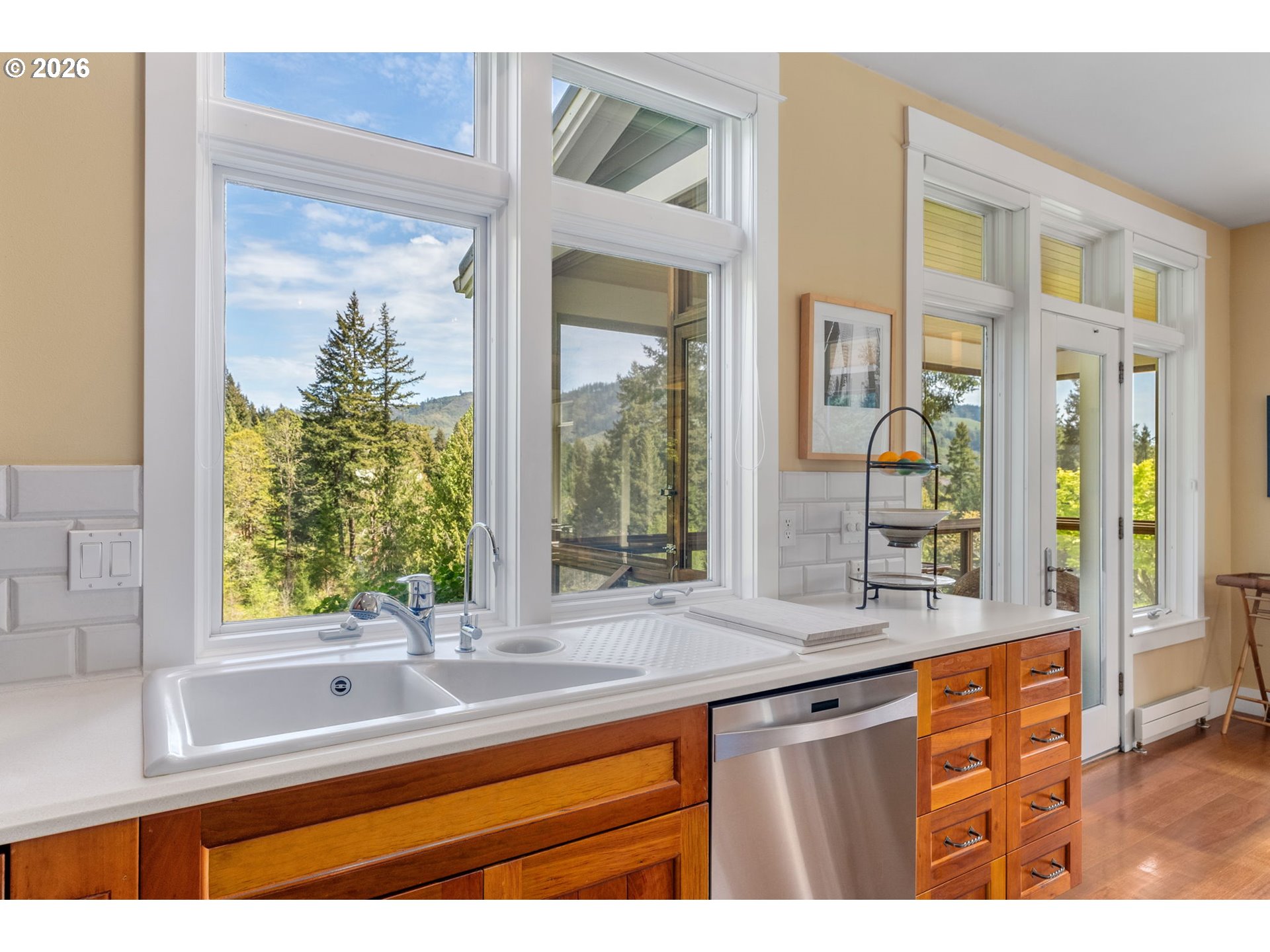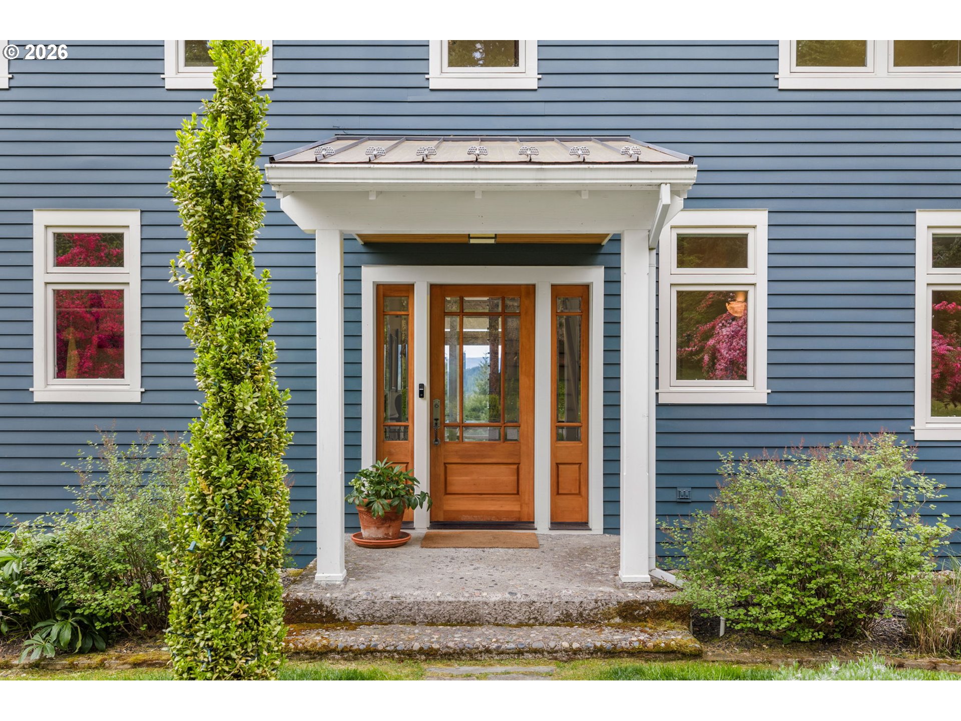 Set on a gently elevated knoll in Upper White Salmon, this architect-designed home offers quality craftsmanship in a private, tranquil Gorge setting. Situated on nearly five landscaped acres of open meadow and mature trees, the property provides a peaceful, park-like environment with seasonal color and full irrigation for ease of maintenance. The one-owner, 3 bedroom + den, 3 bath home reflects thoughtful design and meticulous care throughout. The light-filled interior features 9-foot ceilings, Merbau tropical hardwood floors, and Pella wood casement windows that capture natural light and surrounding views. The main level includes a gourmet kitchen with Viking range and hood, an open living area with fireplace, and an office or den with Simpson fir and glass pocket doors. A mudroom with laundry, utility sink, exterior access, and a full bath completes the main level. Upstairs, the primary suite includes a cast iron soaking tub and walk-in shower, along with two additional bedrooms, all finished with wool carpeting. Bathrooms feature Ann Sacks tile, Porcher fixtures, and radiant towel warmers. An upstairs balcony offers an elevated vantage point to take in the surrounding landscape and beauty. Outdoor living is well integrated with a covered deck and a fully screened east-facing porch for year-round enjoyment. A detached two-car garage/barn provides additional storage and workspace. Built for energy efficiency with solid insulation and passive solar design. The home is equipped with a whole-house Generac standby generator with automatic transfer switch and WiFi capability. 172 Upper Lakeview Rd is a place to settle in, stretch out, and take in the quiet rhythm of the Gorge.