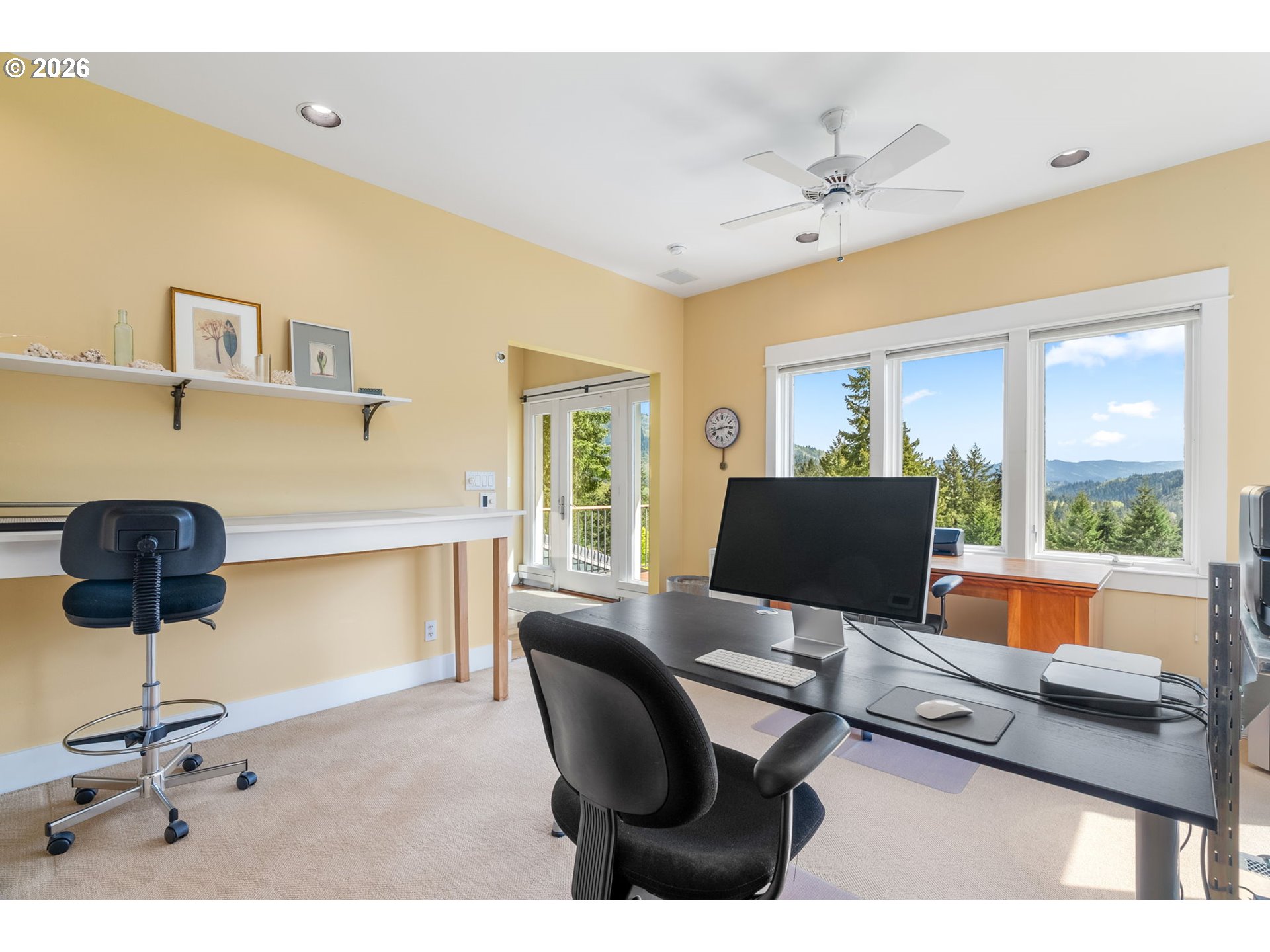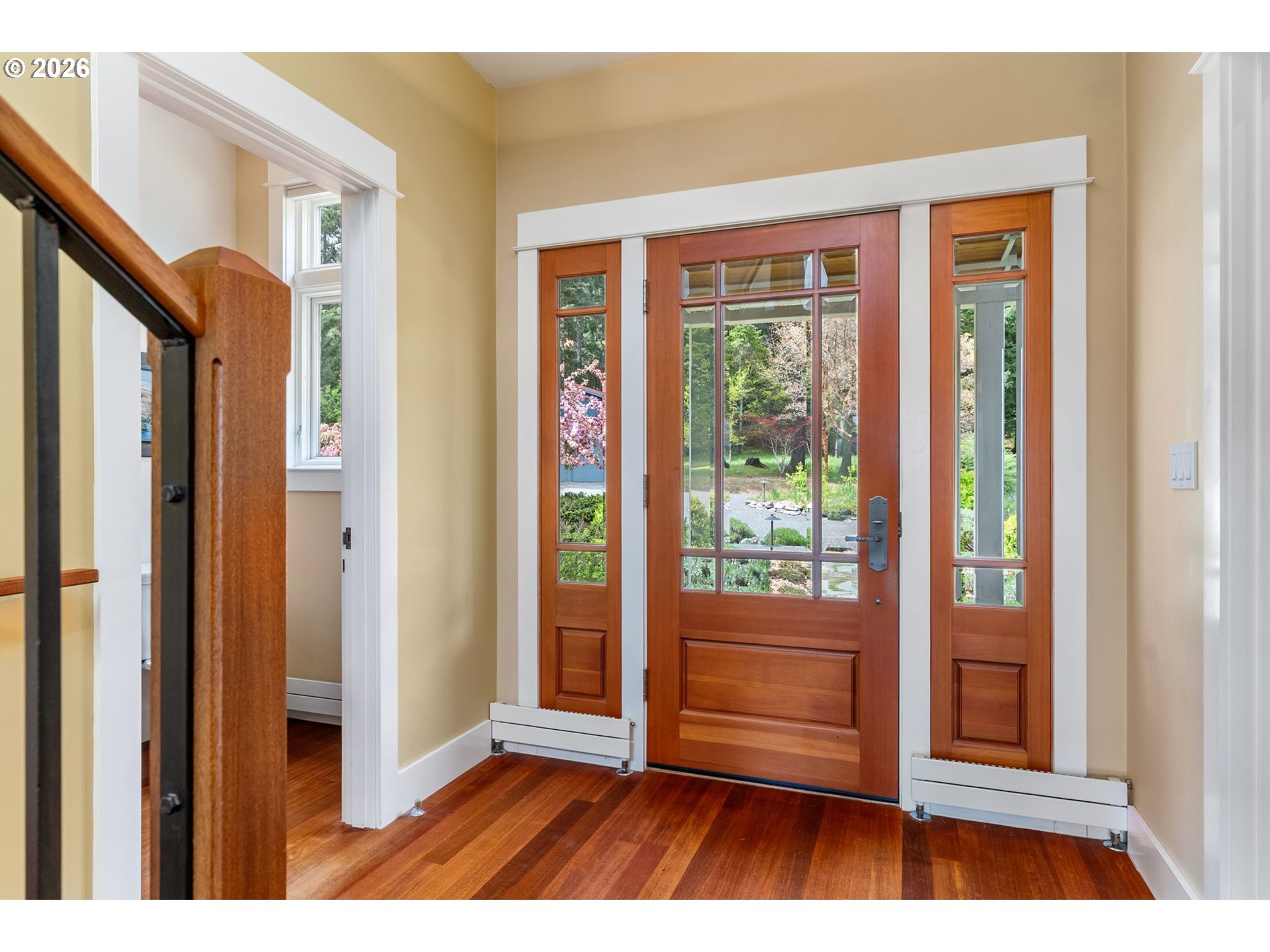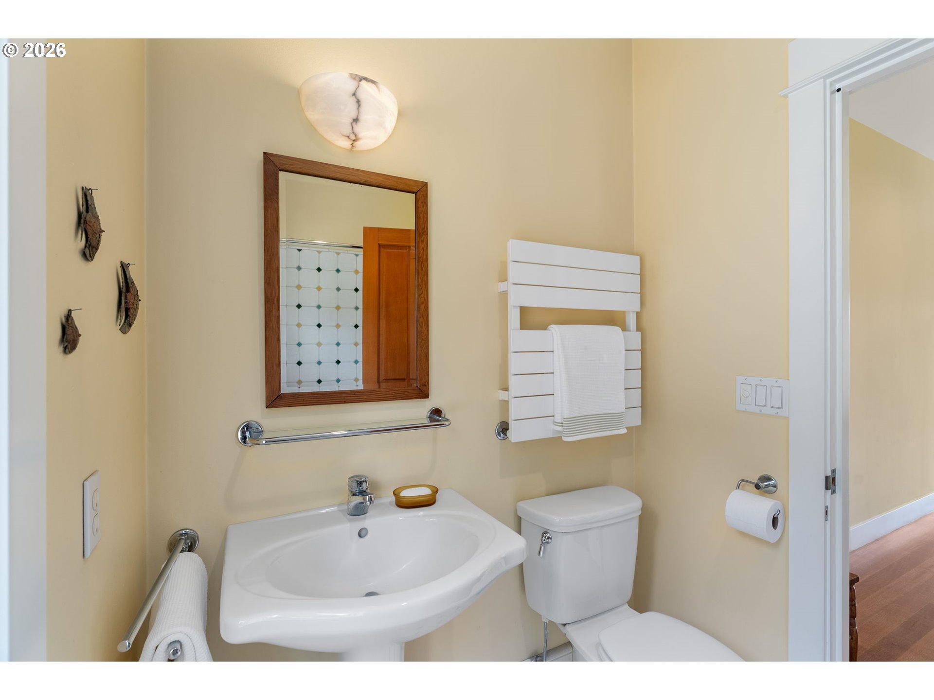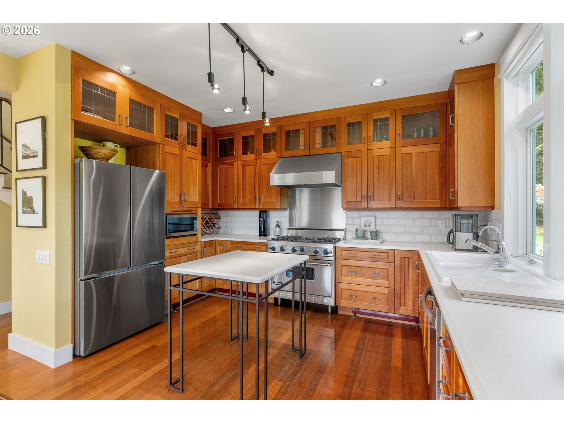 Set on a gently elevated knoll in Upper White Salmon, this architect-designed home offers quality craftsmanship in a private, tranquil Gorge setting. Situated on nearly five landscaped acres of open meadow and mature trees, the property provides a peaceful, park-like environment with seasonal color and full irrigation for ease of maintenance. The one-owner, 3 bedroom + den, 3 bath home reflects thoughtful design and meticulous care throughout. The light-filled interior features 9-foot ceilings, Merbau tropical hardwood floors, and Pella wood casement windows that capture natural light and surrounding views. The main level includes a gourmet kitchen with Viking range and hood, an open living area with fireplace, and an office or den with Simpson fir and glass pocket doors. A mudroom with laundry, utility sink, exterior access, and a full bath completes the main level. Upstairs, the primary suite includes a cast iron soaking tub and walk-in shower, along with two additional bedrooms, all finished with wool carpeting. Bathrooms feature Ann Sacks tile, Porcher fixtures, and radiant towel warmers. An upstairs balcony offers an elevated vantage point to take in the surrounding landscape and beauty. Outdoor living is well integrated with a covered deck and a fully screened east-facing porch for year-round enjoyment. A detached two-car garage/barn provides additional storage and workspace. Built for energy efficiency with solid insulation and passive solar design. The home is equipped with a whole-house Generac standby generator with automatic transfer switch and WiFi capability. 172 Upper Lakeview Rd is a place to settle in, stretch out, and take in the quiet rhythm of the Gorge.