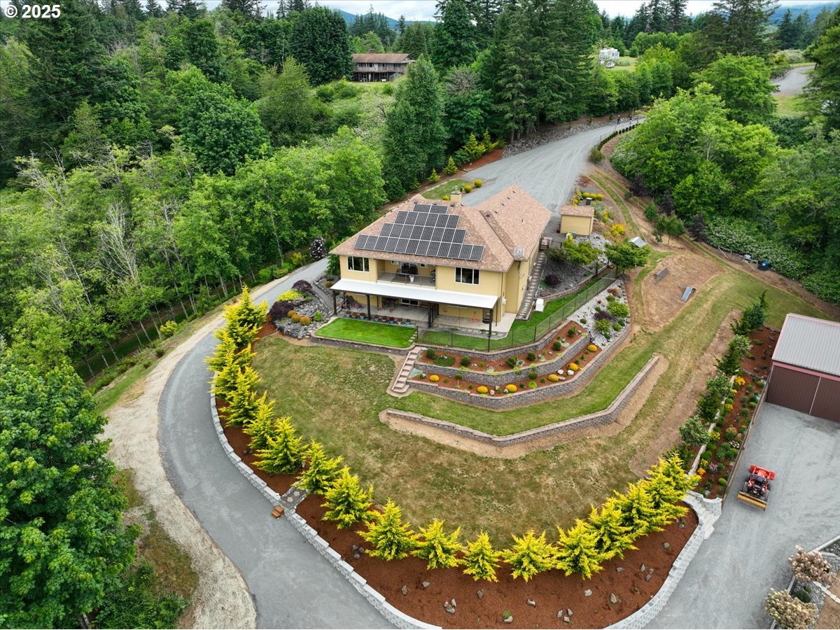 (503) 893-8874Custom home on 2.5 acres PLUS private adjacent 2.5 acre vacant lot. Two adjacent legal lots and no CC&R’s! LOT 1 w/ 3112 SF home and 36 X 40 shop Close-in private country setting. Contractor’s own personal super-efficient 2015 custom built home on 2.5 treed landscaped acres and it is only 12 minutes to town! A private driveway leads you to the secure gated entry. Plenty of guest parking inside, a beautiful 3112 SF custom home, a year-a-round creek and so much more. MAIN LEVEL: Covered entry porch to foyer leads to the inviting great-room, granite island kitchen, dining room and fantastic views in all directions. Main floor Primary B/R has two walk-in closets and full master bath. Office or 4th B/R is also on main floor along with guest bath, laundry and a handy mud room at the garage entrance. DOWNSTAIRS: A large Bonus room with gas fireplace is open to a wonderful, covered view deck and canine condo heated kennel. There are two roomy bedrooms, a full bath and a mechanical room. EFFICIENCY & CREATURE COMFORTS: Entry gate w/ lock pad and remote access, solar panels, geothermal HVAC. Average monthly power cost is $111. Generac automatic power system, Central Vacuum, 300-gal propane tank, water feature and deck at creek. LANDSCAPING: Absolutely gorgeous landscaping everywhere you look. A finely manicured parklike setting, outrageous views of surrounding forest and hills beyond the extensive masonry, plantings, lawns, trees and trails. SHOP: A 36 x 40 shop with 14’ head clearance provides great space for your RV, boat, cars, or hobby shop. 110 and 220 power. Interior tool or workshop space.LOT 2 INCLUDED Vacant treed private parcel w/ separate driveway. No CC&R’s. An ideal setting for a M/H, Tiny house, Barndo or your dream cabin in the woods! Yes! both parcels with home and shop are included in the offered price.
