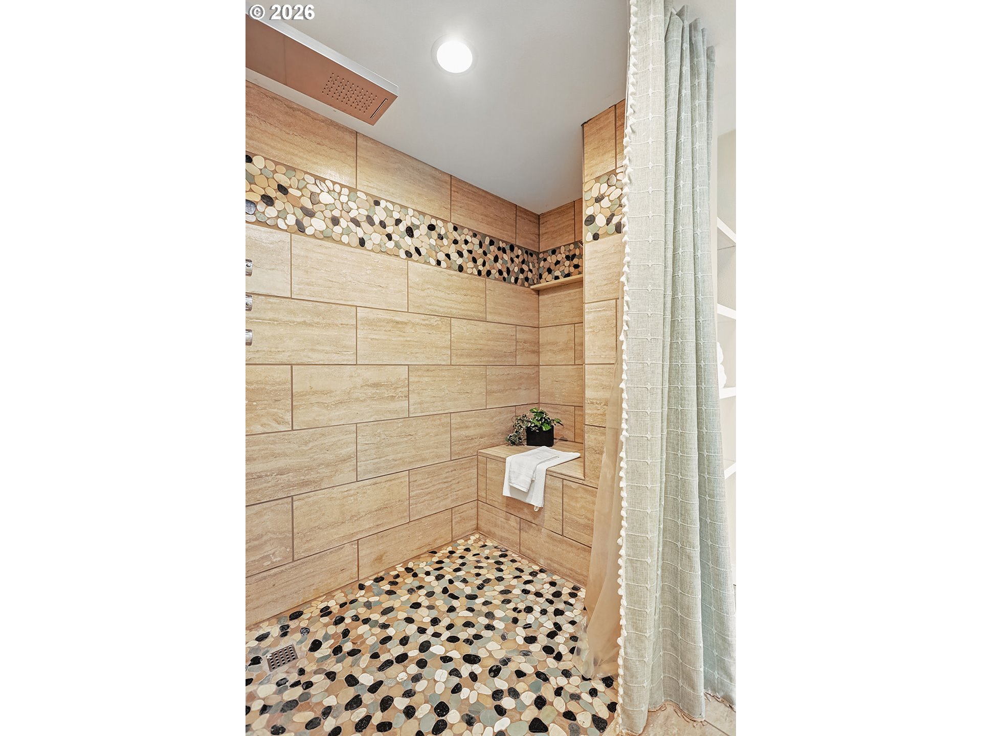 Perched to capture sweeping, unobstructed views of the Columbia River Gorge, this beautifully appointed home in Stevenson, Washington offers a rare blend of comfort, style, and unforgettable scenery. Enjoy breathtaking river views from nearly every window, filling the home with natural light and a constant connection to the outdoors. Step outside onto the expansive deck—perfect for morning coffee, sunset dinners, or entertaining guests while taking in the ever-changing landscape of the Gorge. A lower patio with a charming pergola provides an additional private space to relax and unwind. This spacious 4-bedroom, 2-bathroom home is thoughtfully designed for both everyday living and hosting. Upstairs features three comfortable bedrooms and a full bath, while the lower level offers a private primary retreat complete with a cozy stone-front fireplace, custom built-ins, and a luxurious ensuite bathroom. The primary suite also includes a large walk-in shower, washer and dryer, and a separate sliding door leading directly to a patio with pergola. The kitchen is a true centerpiece, featuring upgraded stainless-steel appliances, quartz countertops, a stylish tile backsplash, and a generous island with a gas cooktop—ideal for cooking and gathering. A walk-in pantry with a dedicated coffee bar area adds both function and charm. Heated tile floors in the kitchen and both bathrooms provide year-round comfort, while a wood pellet fireplace on the main floor creates a warm and inviting atmosphere. This is Gorge living at its finest—where stunning views, thoughtful upgrades, and inviting spaces to come together to create a truly special place to call home.