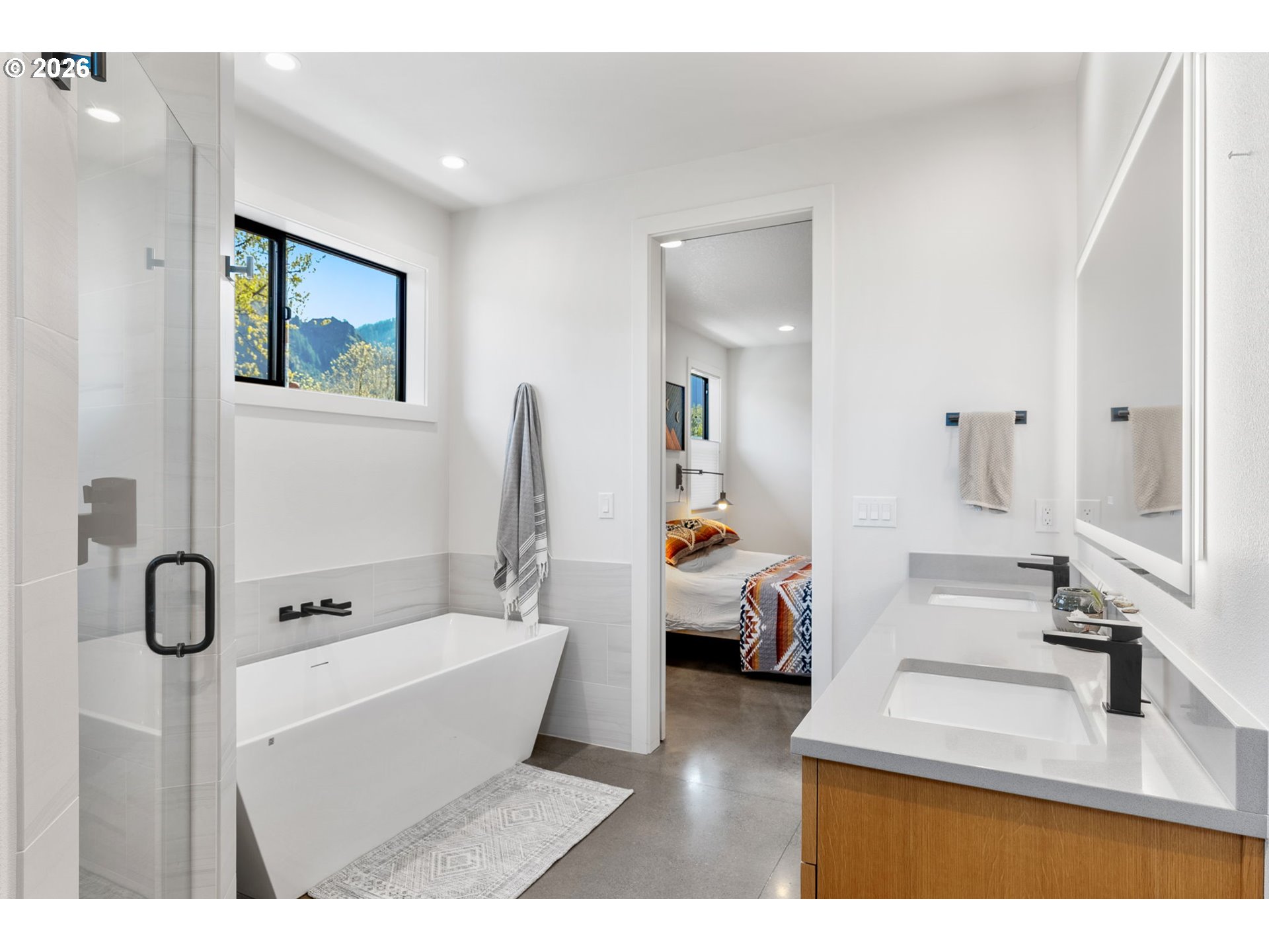 Imagine waking every morning to the dramatic silhouette of Hamilton Mountain framing your floor-to-ceiling windows — this is daily life in this 2023 built NW Contemporary home. Every detail reflects intentional, uncompromising craftsmanship — from the heated polished concrete floors and soaring great room ceilings to the chef's kitchen, spa-inspired baths, and serene Zen rock garden. This is the rare home where construction quality matches the breathtaking surroundings, offering true turnkey living with zero compromise. The oversized 3-bay attached garage features a dedicated dog wash station, RV parking, and room for all your Pacific Northwest adventure toys. Outside your door experience 12 miles of paved trails, Columbia River Gorge hiking, disc golf, tennis, a wildlife refuge, and zero HOA fees. For remote workers, outdoor enthusiasts, investors, and discerning buyers seeking PNW contemporary living in the Columbia River Gorge — this is the one. Own something genuinely rare. Live somewhere truly extraordinary.