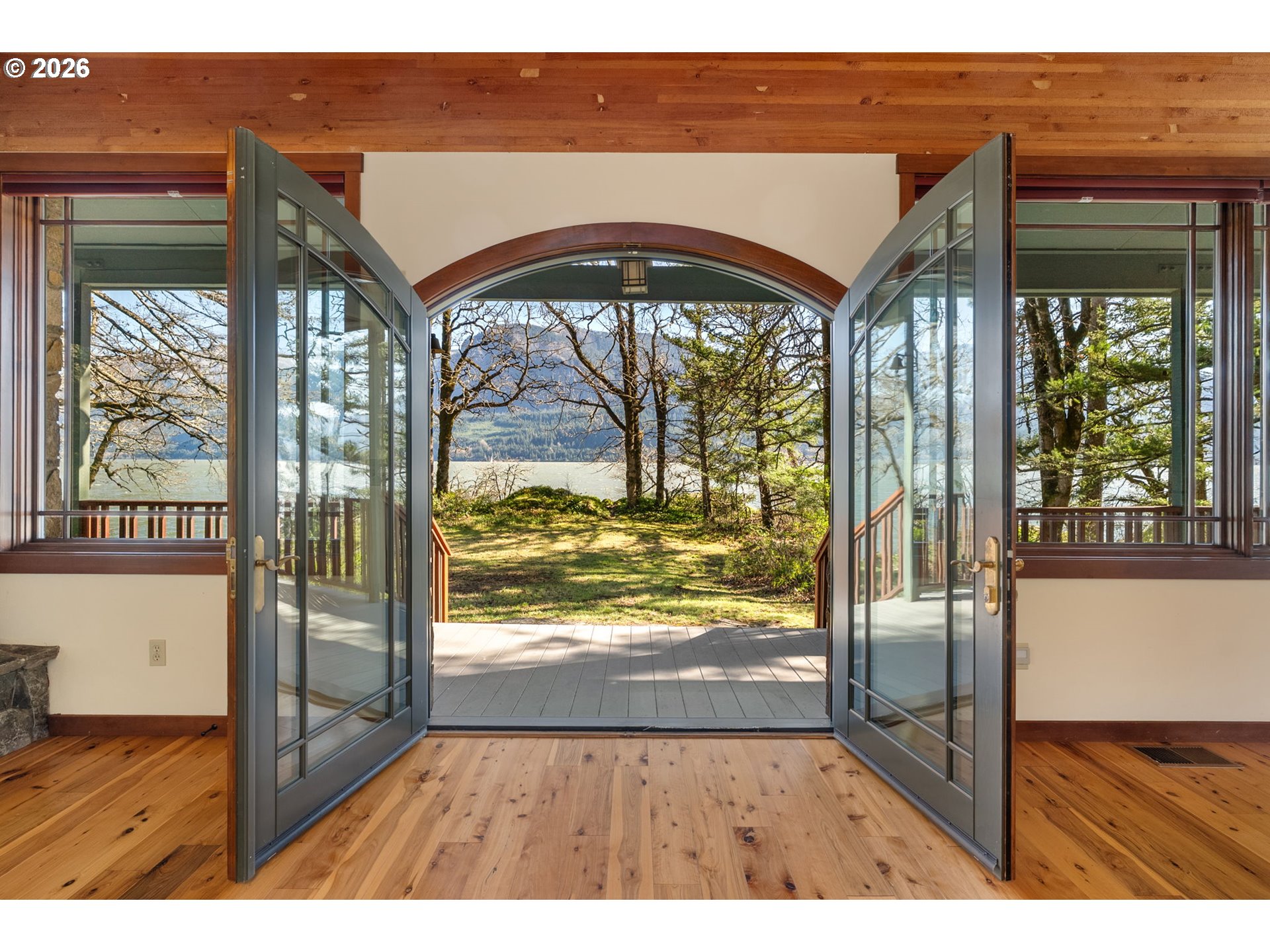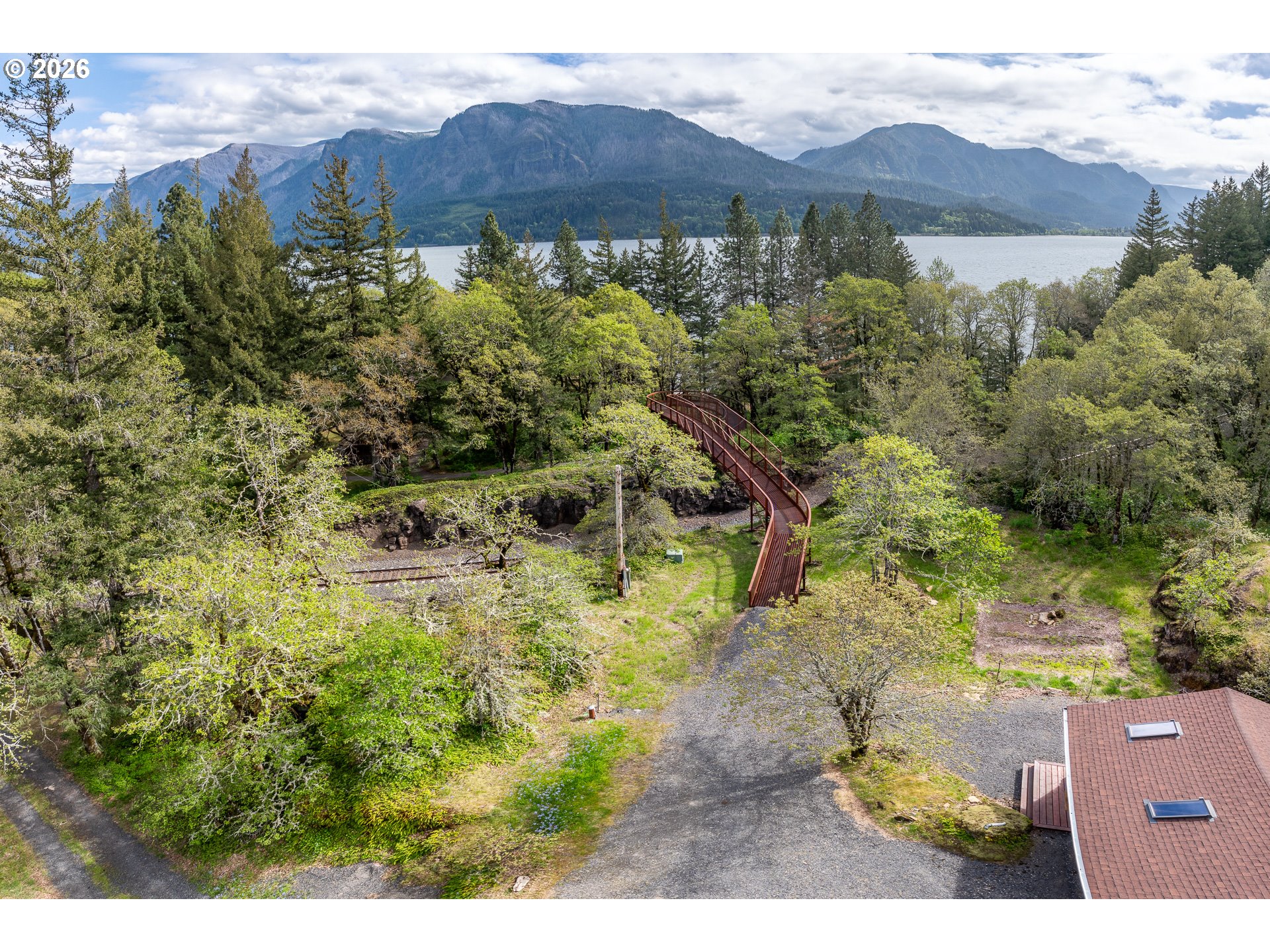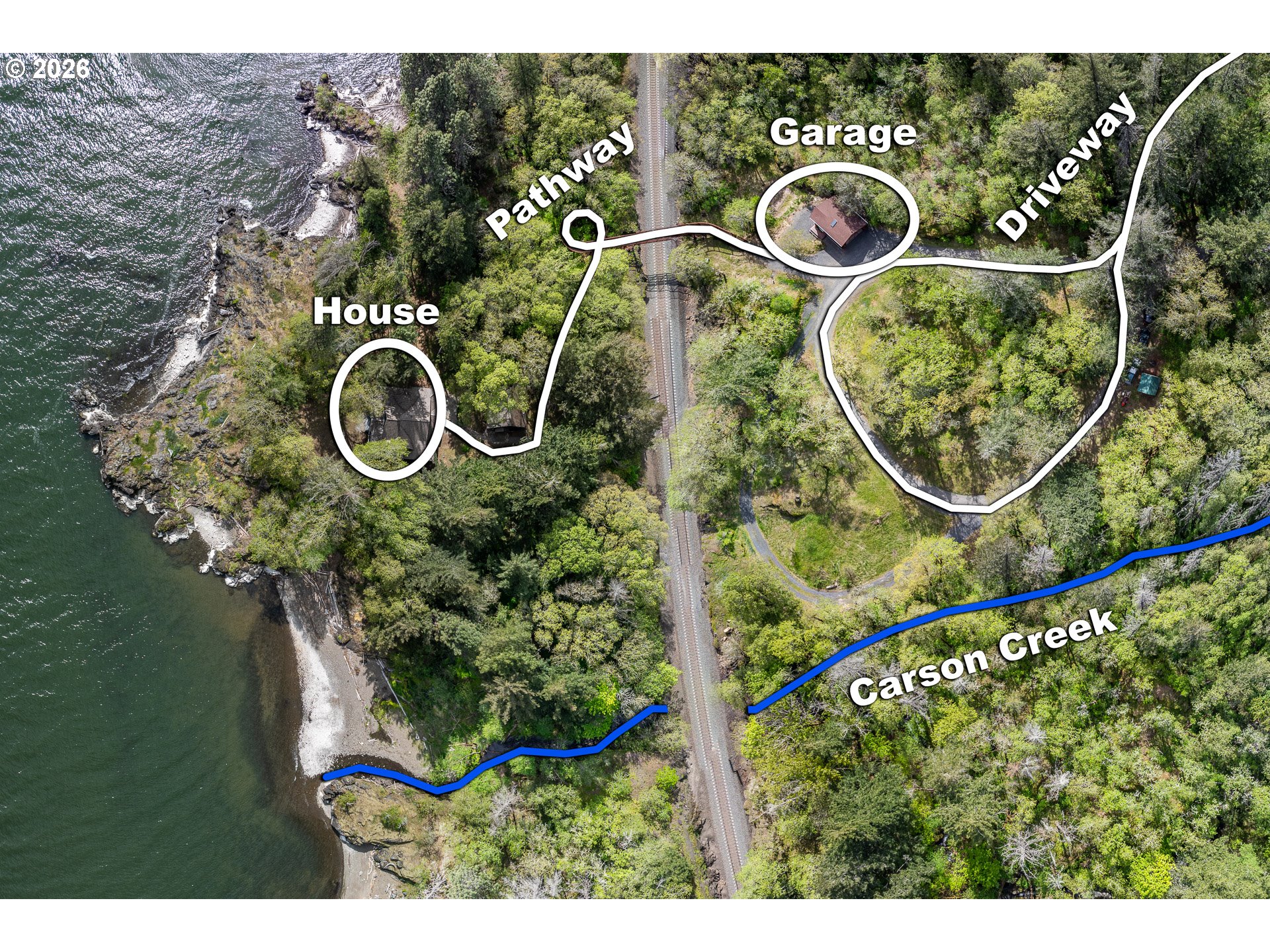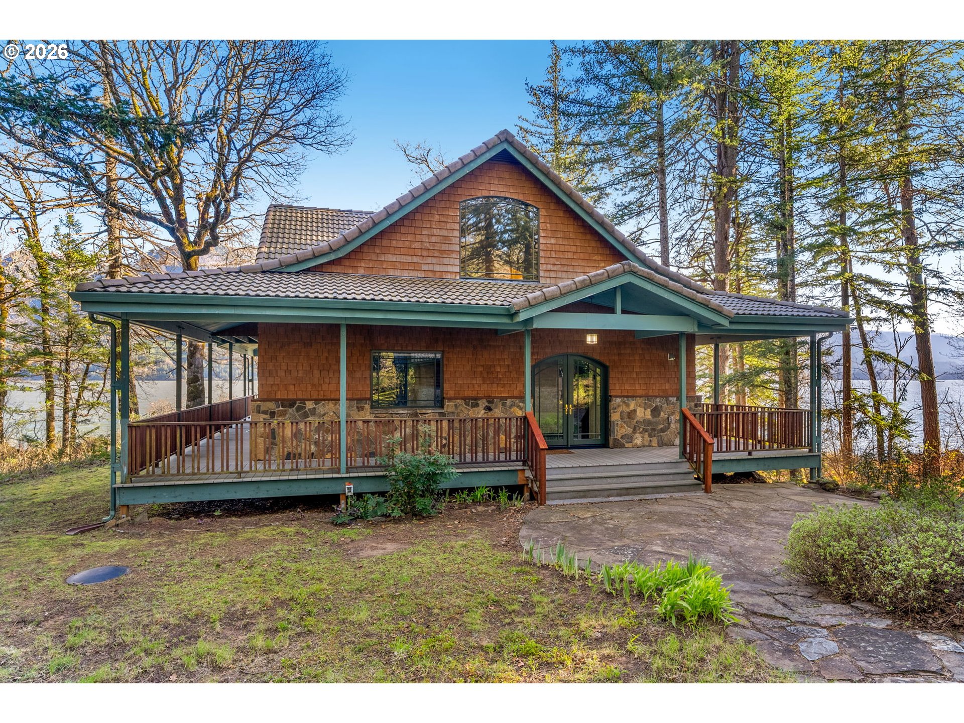 (503) 893-8874One-of-a-kind waterfront property in the heart of the Columbia River Gorge. Welcome to your own private paradise! Bordered to the south by the Columbia River, this property boasts an expansive beach, multiple inlets, and a bluff along 750+ feet of private waterfront. The beautiful year-round Carson Creek flows through the lush, forested acreage, providing a habitat for abundant wildlife. Just steps from the water lies a custom-built home offering stunning sunrise-to-sunset views. The home features stone siding quarried on-site and a covered wrap-around porch, inviting you to relax and enjoy the serene surroundings. Main Level Features: beamed ceilings, Australian Cypress floors, open-concept living area with a custom fireplace, primary suite, and laundry nook. Upper Level Features: large picture windows, family room, spacious office/bonus room, 2nd bedroom with private balcony, 2nd bathroom with walk-in shower and soaking tub. A custom-built detached guest studio provides privacy for your visitors, complete with a walk-in closet, bathroom, loft, and fireplace. Enjoy the abundant wildlife and breathtaking views from your private beach, explore the creek bed, or take advantage of river access as a watersports launch site! This property offers something for everyone. Located in the Columbia Gorge National Scenic Area. Buyer due diligence is recommended for any improvements or changes.