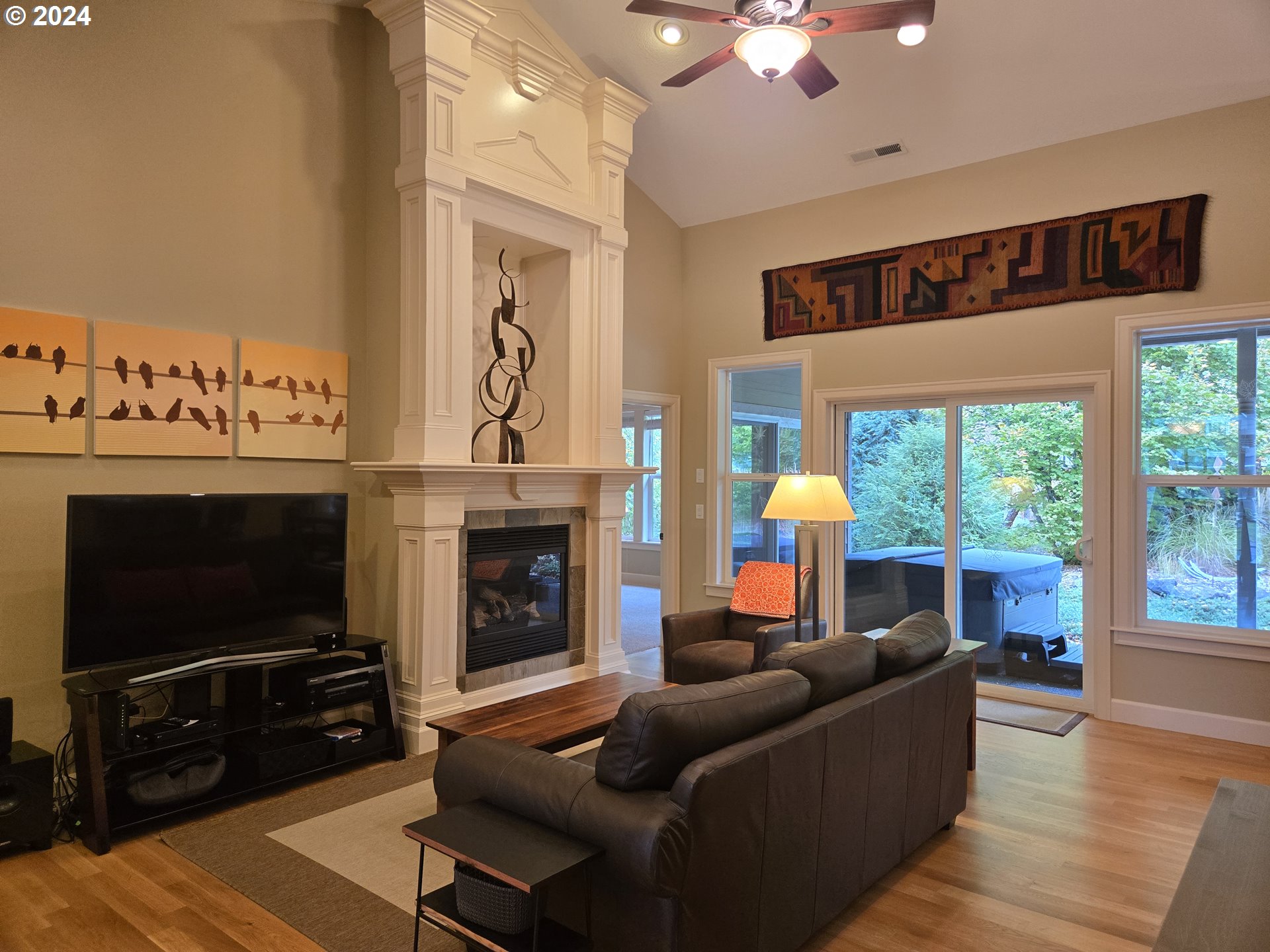Bookcases, CeilingFan, Fireplace, HardwoodFloors