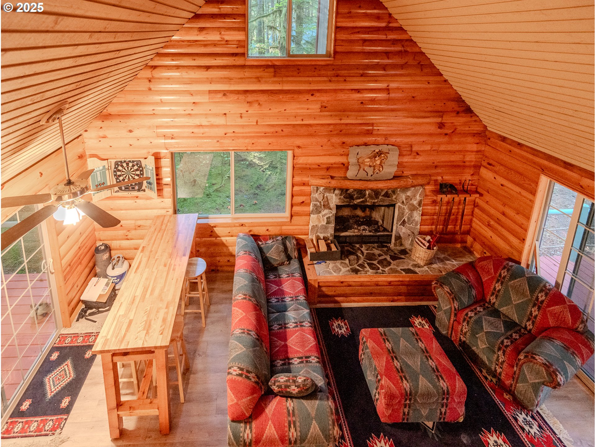 MOTIVATED SELLER! Escape to your own cozy retreat in the heart of the Gifford Pinchot National Forest! This lovingly maintained cabin is the perfect blend of rustic charm and modern comfort. Nestled along Swift Reservoir with prime access to Indian Heaven, Lewis River Lower Falls, Oldman Pass Sno-Park, and more, you will never run out of places to explore in this paradise for outdoor enthusiasts. Hiking, hunting, snowmobiling, fishing, and mushroom picking are just minutes away, as well as delicious pizza at the Eagle Cliff store during the summer and the common areas of the North Woods community, including a play area, fire pit, and access to Swift Reservoir. Inside, the cabin features both a fireplace and woodstove for year-round coziness, while luxury vinyl plank flooring flows through the main level, creating a warm, inviting atmosphere. Log walls and a stone feature on the stairs to the loft add to the rustic charm. Oversized sliders open to front and back decks, inviting you to enjoy the peaceful surroundings, whether you're sipping coffee on the covered deck, soaking up the sun on the uncovered deck, or relaxing on the patio. The cedar-paneled bathroom with a steamy shower is perfect for unwinding after a day of adventure. The remote start generator with battery system makes off-grid living a breeze, and all furniture can be included at the asking price, so you can settle in right away. An ample driveway provides room for multiple vehicles, or even an RV so that you can bring all of your friends along on your adventures. This is more than just a cabin - it's a year-round haven where memories are made, with nature right at your doorstep. Come experience North Woods charm for yourself!