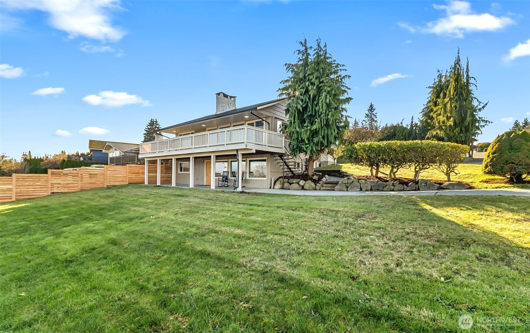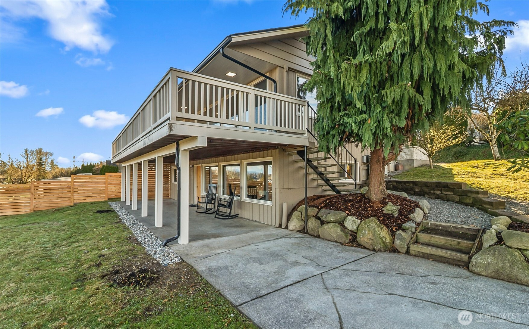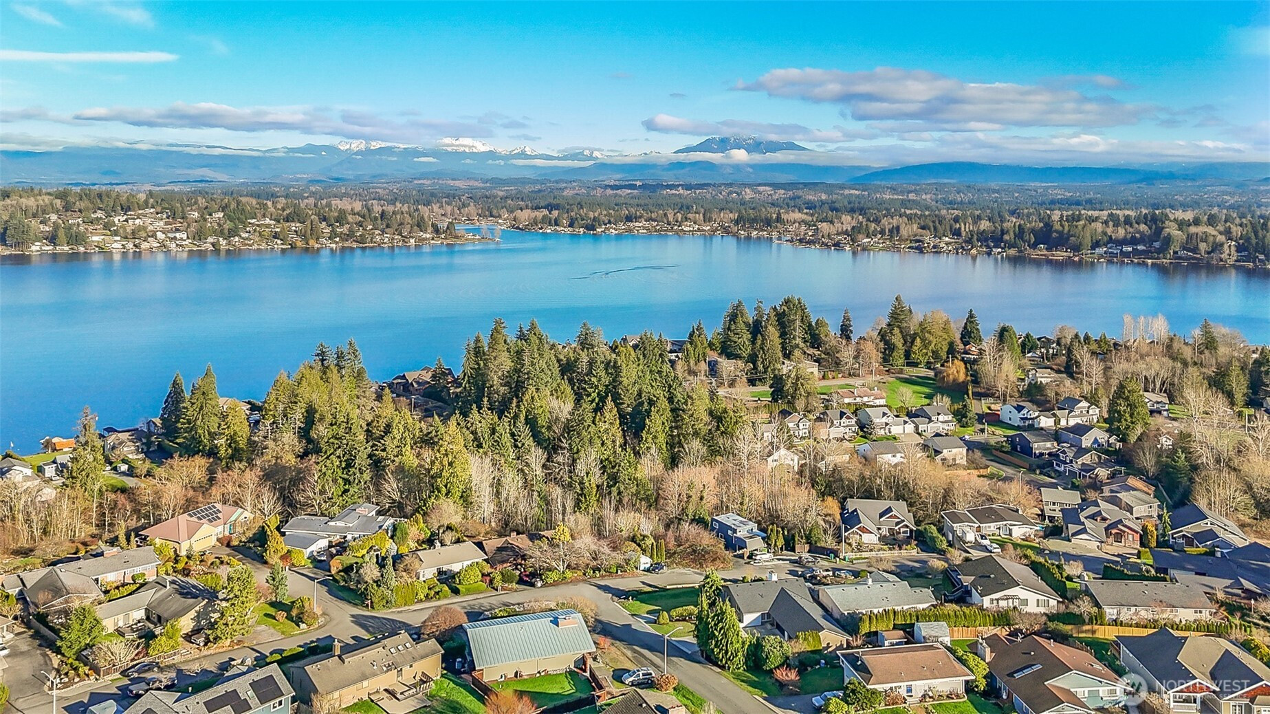 {Lake & Mountain Views} rambler with daylight basement! Located in the coveted Lake Stevens community. A 3 bed, 3.5 bath, large open concept living, kitchen w/eating bar, dining and living room w/cozy gas fireplace both on the main level & downstairs, large great room with wet bar. This NW contemporary home was built and designed with timeless style. Large Covered deck with sliding door & patio make this home perfect for entertaining. With complete ADU downstairs this house is perfect for extended families as well as investors. Home is just minutes from Lake Stevens public beach/boat launch. Recent updates include new roof, gutters, exterior paint, fencing, LVP flooring and carpet. Situated on a desirable corner lot with an oversized 625 SF garage adding storage and long-term value. A rare opportunity combining views, upgrades, and investment appeal.