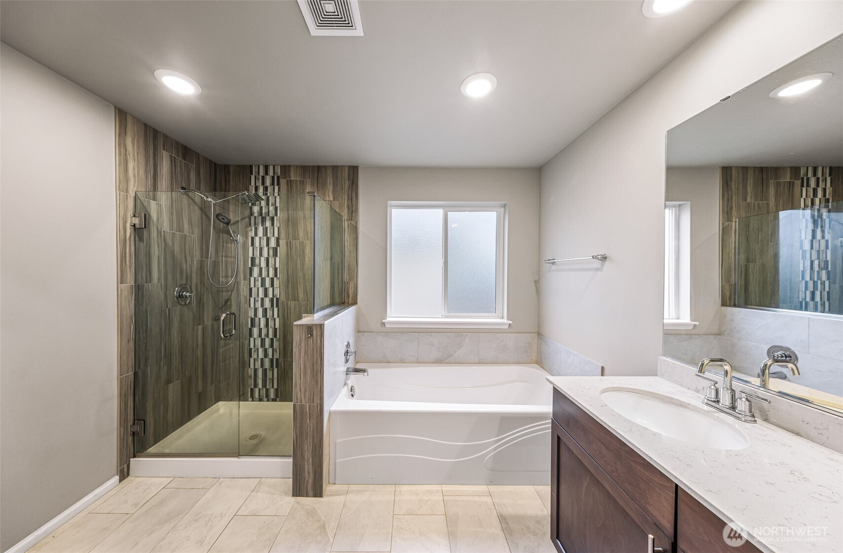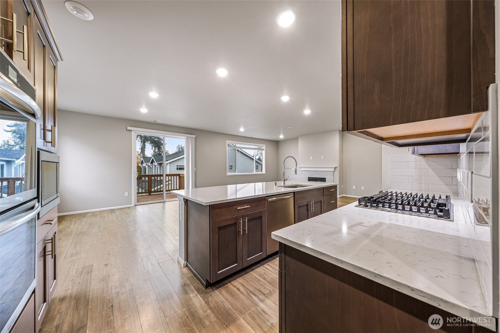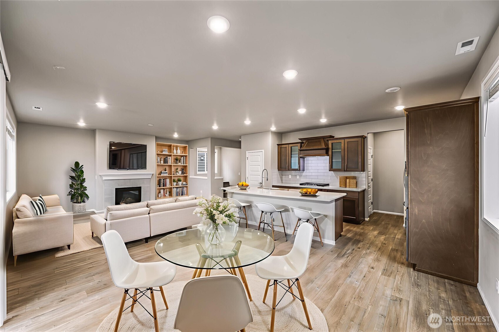 Welcome to this standout home in the desirable Mountain Crest area of Lake Stevens. Set on a fully fenced corner lot, it offers privacy, modern comfort, and everyday convenience. The layout features 5 bedrooms and 3.25 baths, including a spacious upper-level suite. The lower level adds flexibility with a large recreation room, full bath, and additional bedroom. The main floor shines with a gourmet kitchen featuring quartz countertops, stainless steel appliances, and open flow to the Great Room and dining area. Enjoy AC, EV readiness, a two-car garage, new turf, and a relaxing backyard patio. Close to I-5, Costco, markets, Lake Stevens waterfront, and Centennial Trail. Move-in ready and better than new.