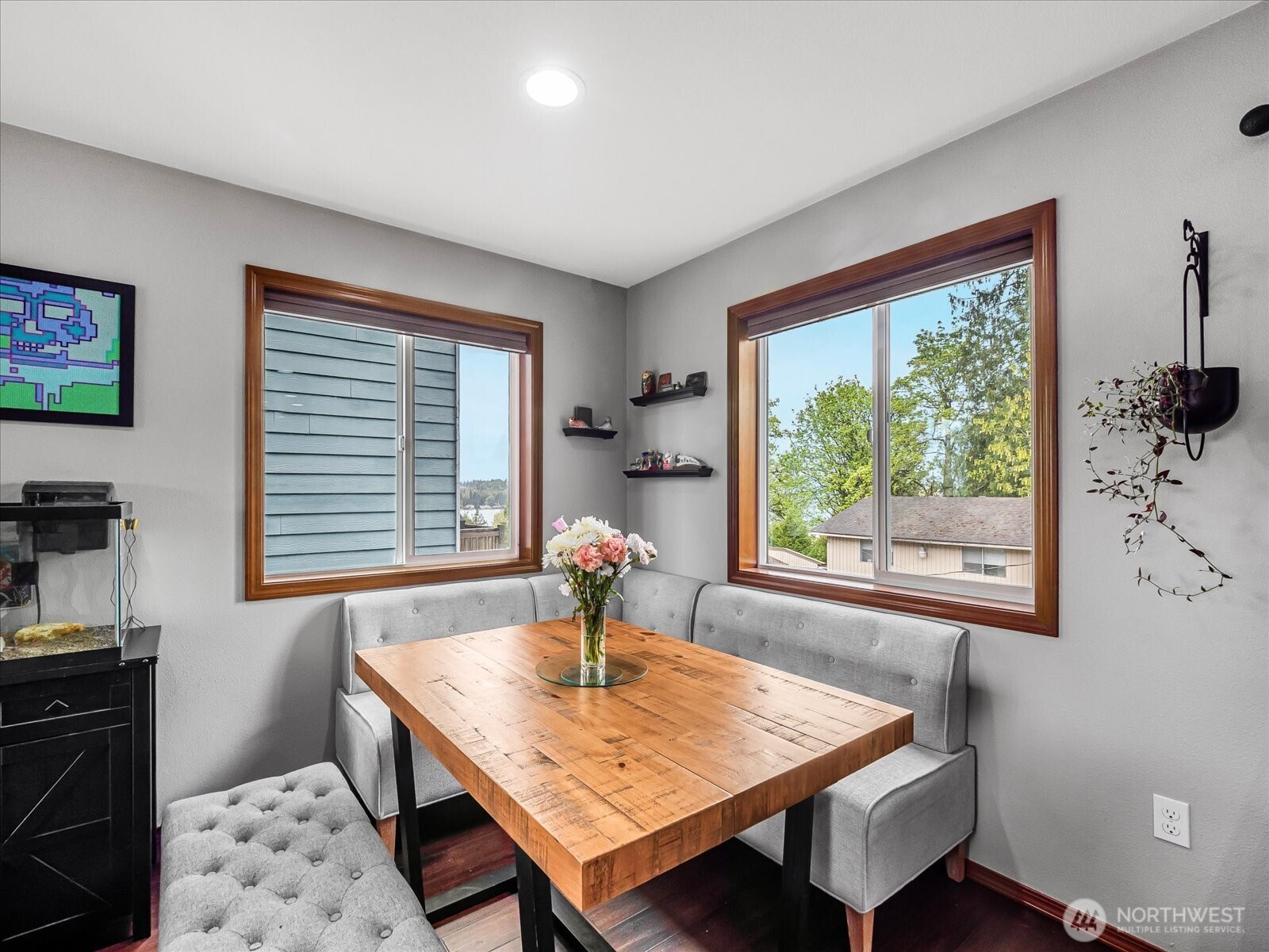 WELCOME to this beautifully maintained 3 bed 2.5 bath home in the sought after sunburst Place community of Lake Stevens offering 1656 sqft of thoughtfully designed living space, this home combines comfort, functionality, and an unbeatable location. Step inside to an open concept main living area featuring rich engineered hardwood floorss and a seamless flow between the kitchen, dining and living areas, perfect for everyday living and entertaining. The kitchen is equipped with modern appliances, ample cabinetry, and easy access to a spacious covered deck, ideal for year round enjoyment and peaceful views of the lake. Primary suite offers a peaceful retreat with lake view, walk in closet and private bath. Two additional bedrooms and a full bath provide flexibility for guests, home office space or hobbies. A convenient power room on the main level and an upstairs laundry area add to the homes practical layout. Set in a quit, well kept neighborhood with NO HOA dues.This home is the perfect balance of low maintenance living and modern comfort!
