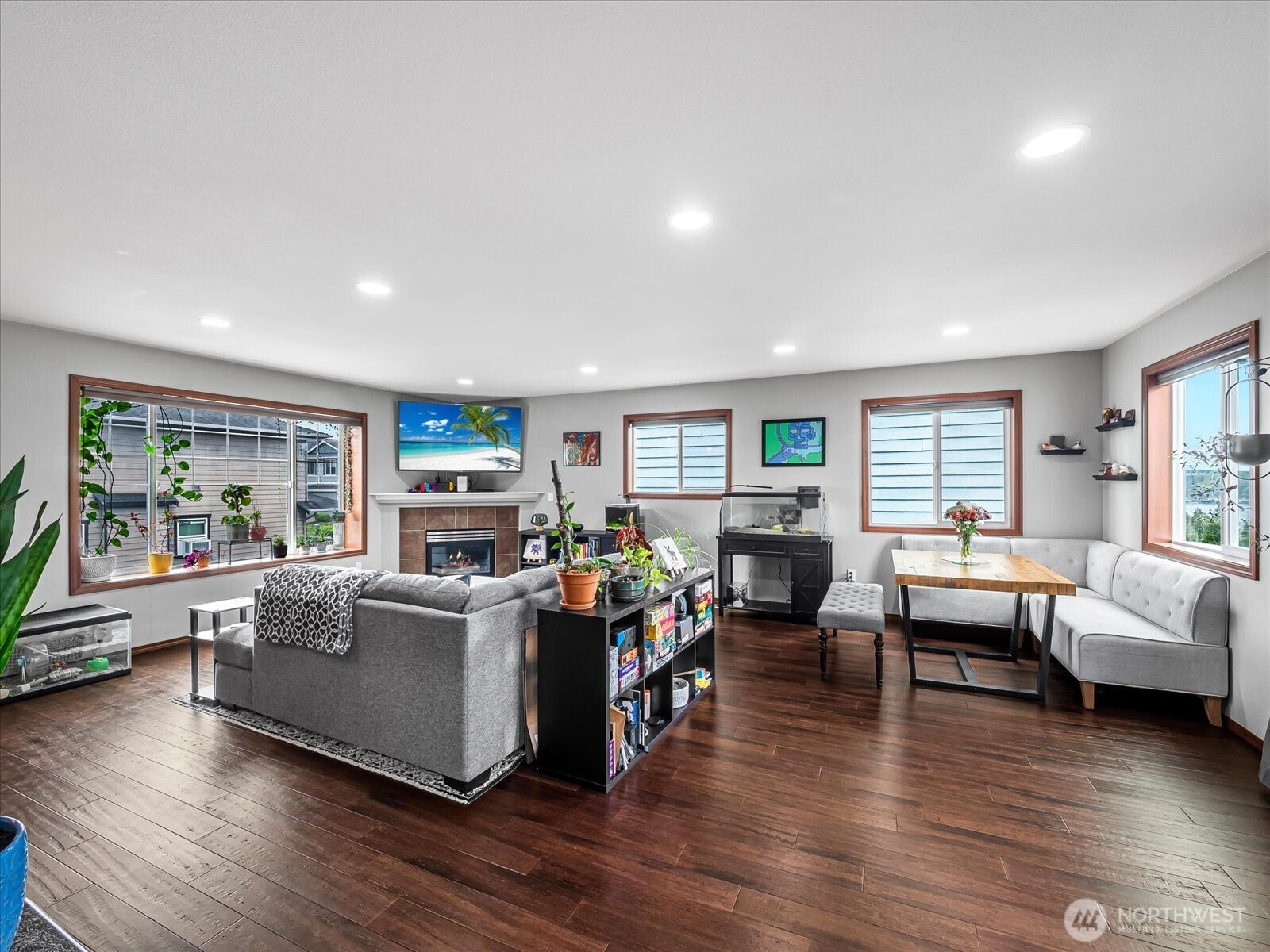 WELCOME to this beautifully maintained 3 bed 2.5 bath home in the sought after Sunburst Place community of Lake Stevens offering 1656 sqft of thoughtfully designed living space, this home combines comfort, functionality, and an unbeatable location. Step inside to an open concept main living area featuring rich engineered hardwood floors and a seamless flow between the kitchen, dining and living areas, perfect for everyday living and entertaining. The kitchen is equipped with modern appliances, ample cabinetry, and easy access to a spacious covered deck, ideal for year round enjoyment and peaceful views of the lake. Primary suite offers a peaceful retreat with lake view, walk in closet and private bath. Two additional bedrooms and a full bath provide flexibility for guests, home office space or hobbies. A convenient powder room on the main level and an upstairs laundry area add to the homes practical layout. Set in a quite, well kept neighborhood with NO HOA dues.This home is the perfect balance of low maintenance living and modern comfort!