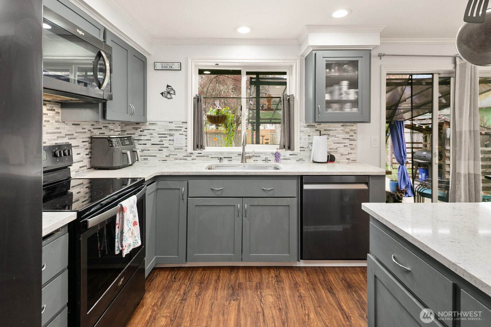 This is the one! Summers in Lake Stevens are a dream come true! Welcome to cozy living in the Crystal View community of Lake Stevens. Nestled away from high traffic, this quaint rambler features a chef's dream kitchen, with ample dining space. Entertain or just relax in the extra large living room with fireplace, or enjoy the covered patio and backyard tastefully accented with beautiful trees and shrubs. There is plenty of outdoor storage to keep the gardening tools and summer toys. With 3 bedrooms and 1.75 baths, there's room for everyone. The two car garage also features tons of storage space. A short walk to Davies Beach at Lake Stevens, and Lake Stevens School District, this home is a gem! Come see it fast!