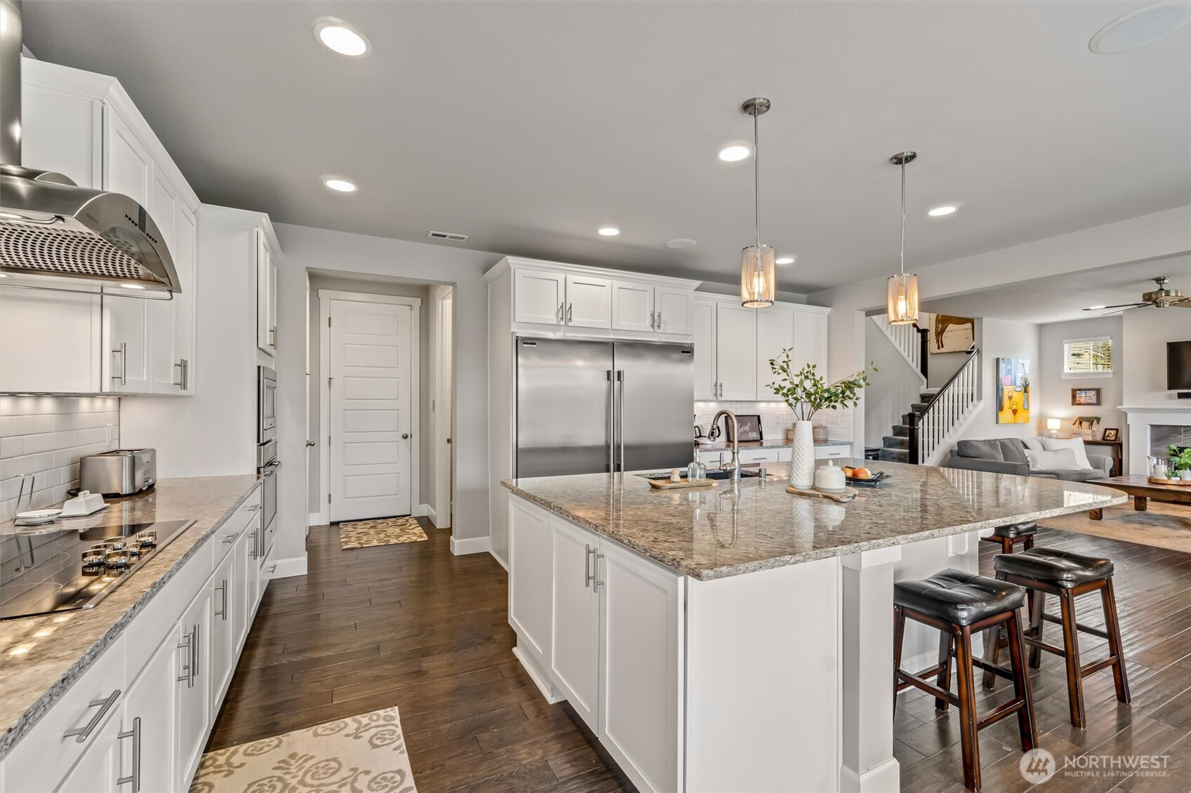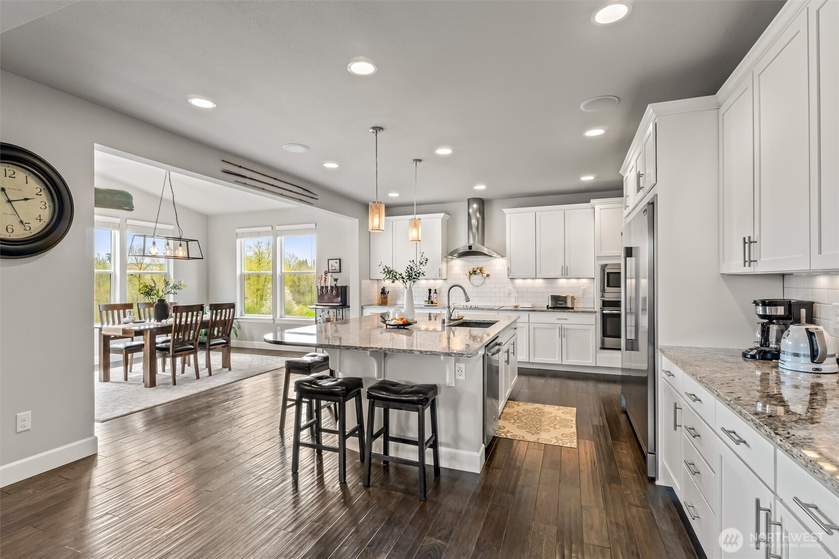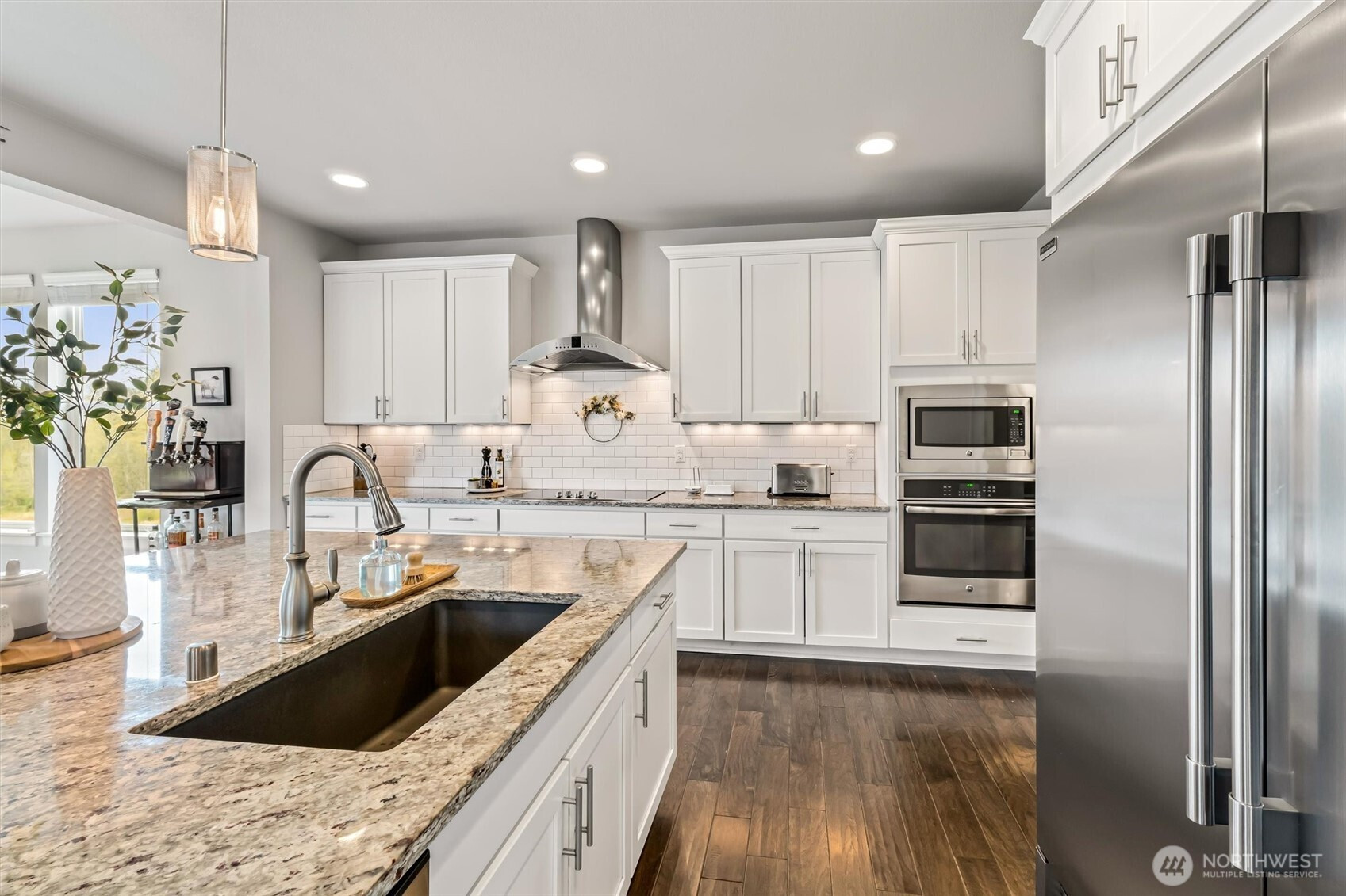 Exquisite Richmond American Hemingway floor plan in the sought after Whispering Meadows community, just north of Lundeen Park and minutes to Hwy 9. Designed with both elegance and comfort in mind, this home showcases an open concept main level with 9’ ceilings, rich dark hardwood floors, a private office/den, sunroom-like dining room, and expansive covered patio - perfect for refined indoor-outdoor living. Integrated surround sound enhances the ambiance throughout. The gourmet kitchen is a true centerpiece, featuring an oversized entertaining island, granite slab countertops, 42” cabinetry with crown molding, full tile backsplash, catering sized refrigerator, GE stainless steel appliances and Pinterest worthy walk-in pantry. Upstairs, a spacious loft offers additional living flexibility, complemented by four generously sized bedrooms. The luxurious primary suite boasts a spa-inspired 5-piece bath with tile surround, quartz countertops, and a walk-in closet. Additional highlights include A/C via energy-efficient heat pump, new water heater, and an oversized 3-car garage. A rare blend of sophistication, comfort, and prime location.