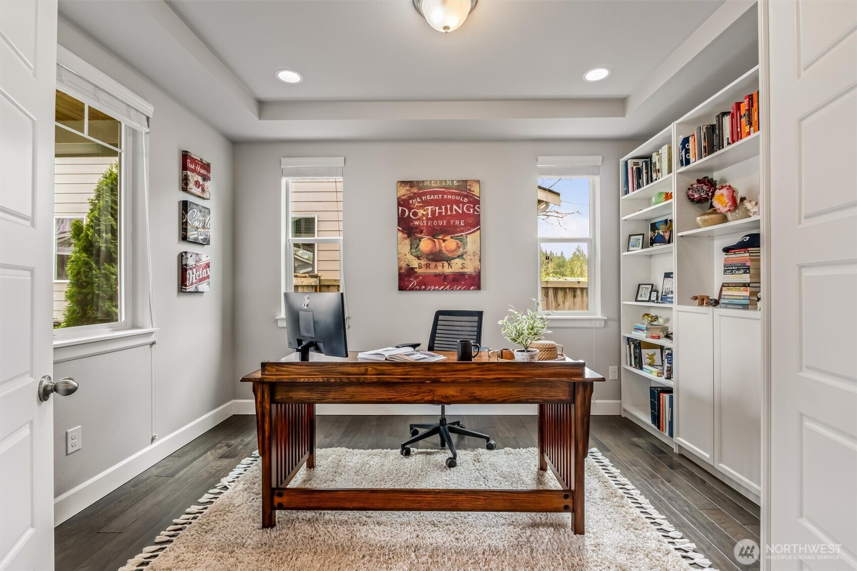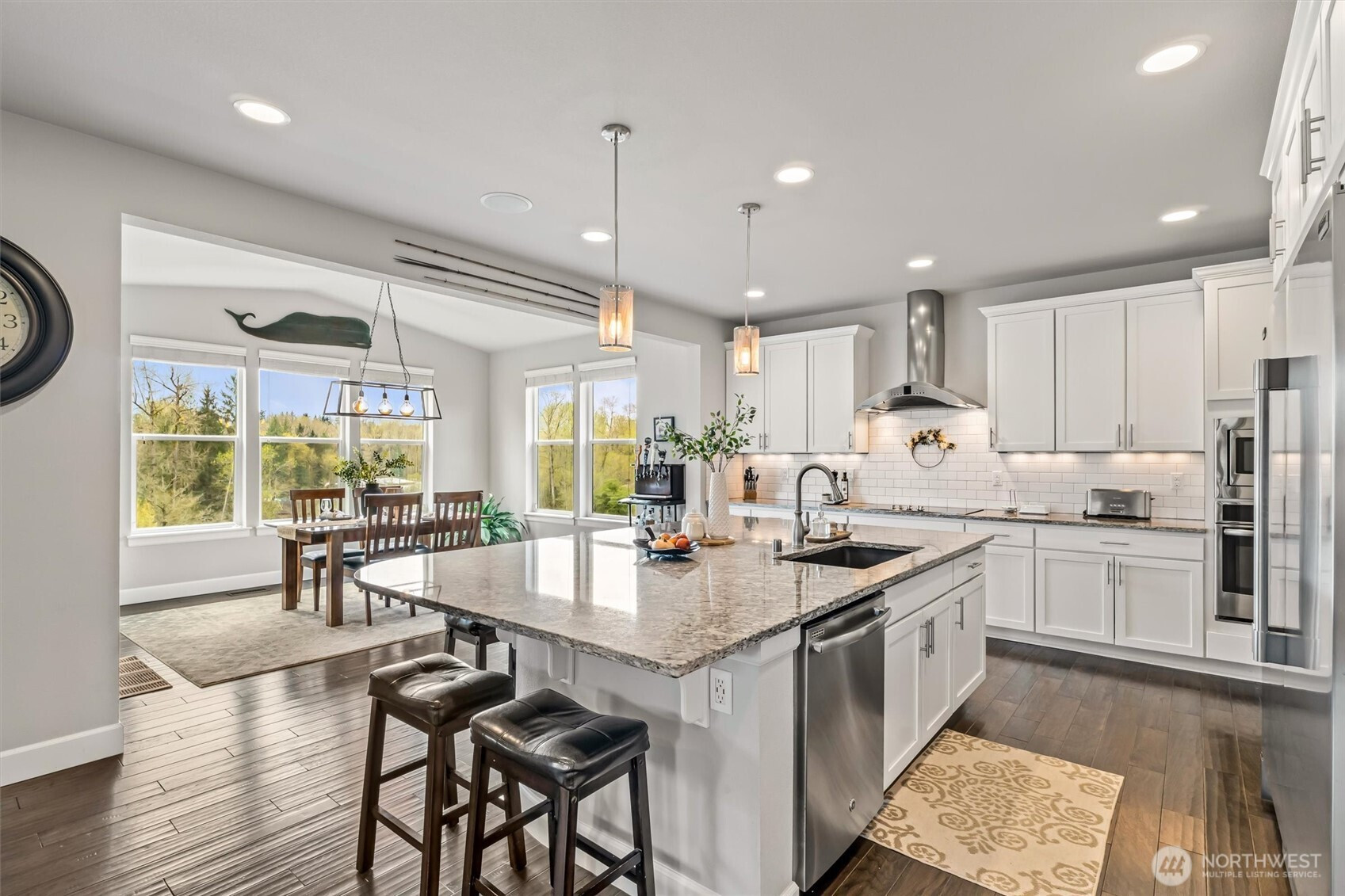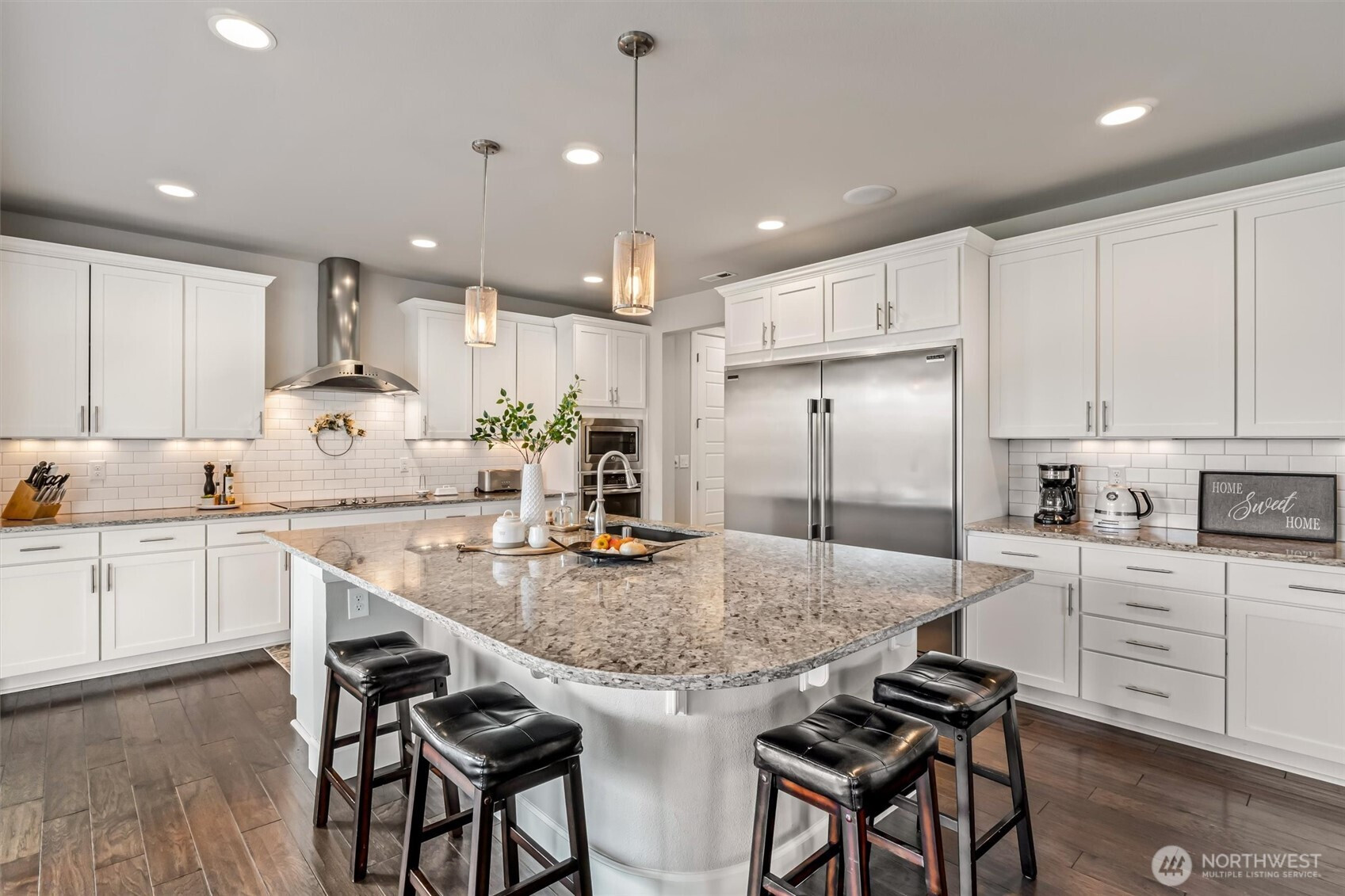 Exquisite Richmond American Hemingway floor plan in the sought after Whispering Meadows community, just north of Lundeen Park and minutes to Hwy 9. Designed with both elegance and comfort in mind, this home showcases an open concept main level with 9’ ceilings, rich dark hardwood floors, a private office/den, sunroom-like dining room, and expansive covered patio - perfect for refined indoor-outdoor living. Integrated surround sound enhances the ambiance throughout. The gourmet kitchen is a true centerpiece, featuring an oversized entertaining island, granite slab countertops, 42” cabinetry with crown molding, full tile backsplash, catering sized refrigerator, GE stainless steel appliances and Pinterest worthy walk-in pantry. Upstairs, a spacious loft offers additional living flexibility, complemented by four generously sized bedrooms. The luxurious primary suite boasts a spa-inspired 5-piece bath with tile surround, quartz countertops, and a walk-in closet. Additional highlights include A/C via energy-efficient heat pump, new water heater, and an oversized 3-car garage. A rare blend of sophistication, comfort, and prime location.