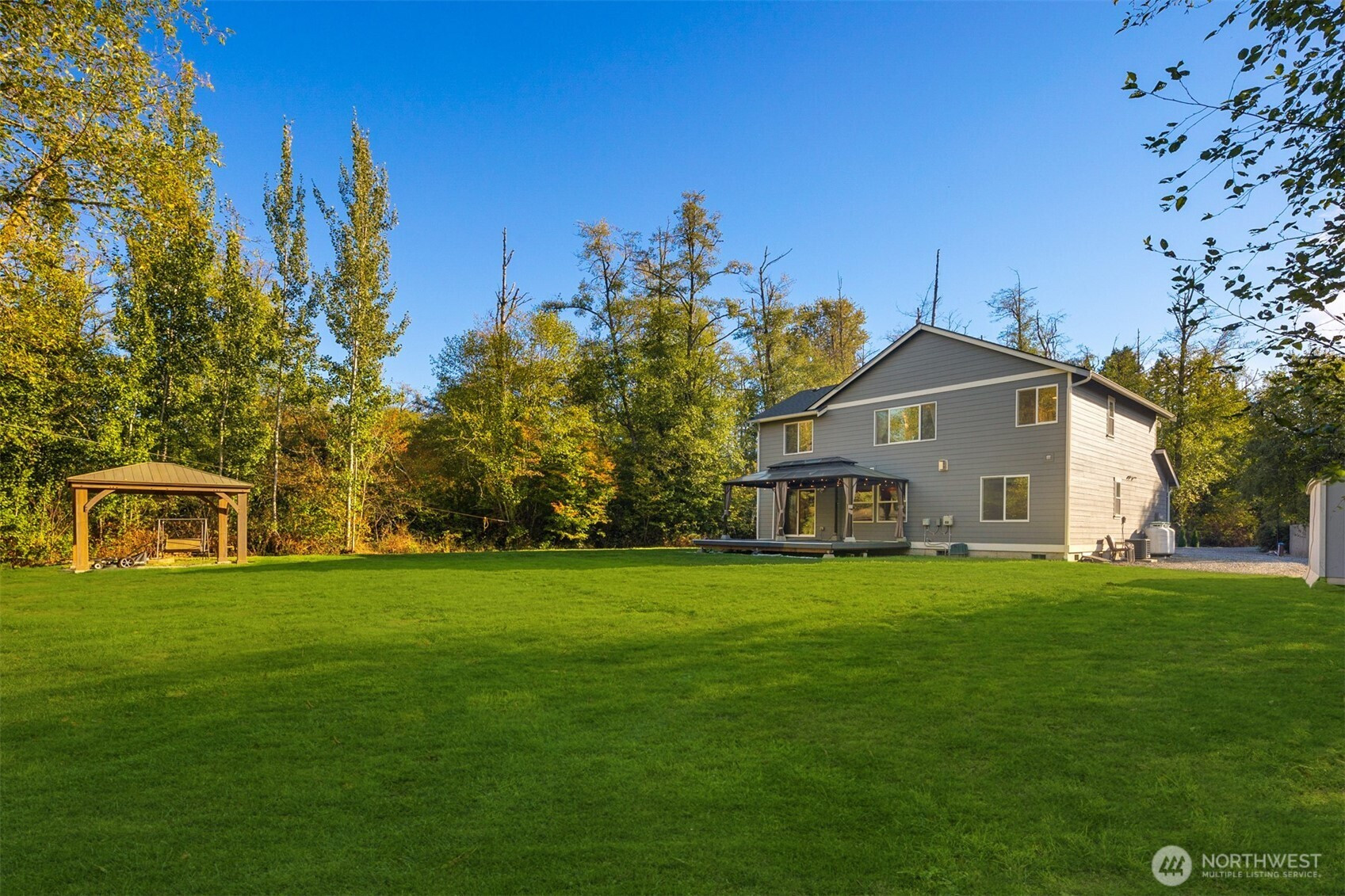 Welcome to Azure — a beautifully updated 2021-built home combining energy efficiency and modern design. The open layout features a renovated kitchen with GE stainless steel appliances, gas cooktop, and breakfast bar flowing into the living and great rooms with a cozy fireplace. Upstairs offers a spacious primary suite with bath and walk-in closet plus three additional bedrooms. The Main Floor offers a bedroom or study if main level living is needed. Enjoy 2.5 acres with sunrise views, a storage shed, 2-car garage, and RV/boat parking. Quiet yet convenient to shopping, dining, golf, and I-5. Experience the perfect blend of comfort and style at Azure.