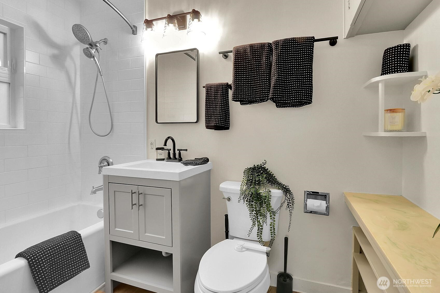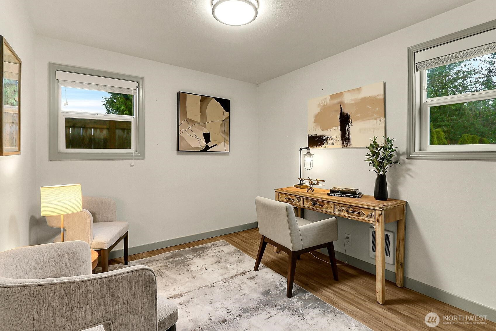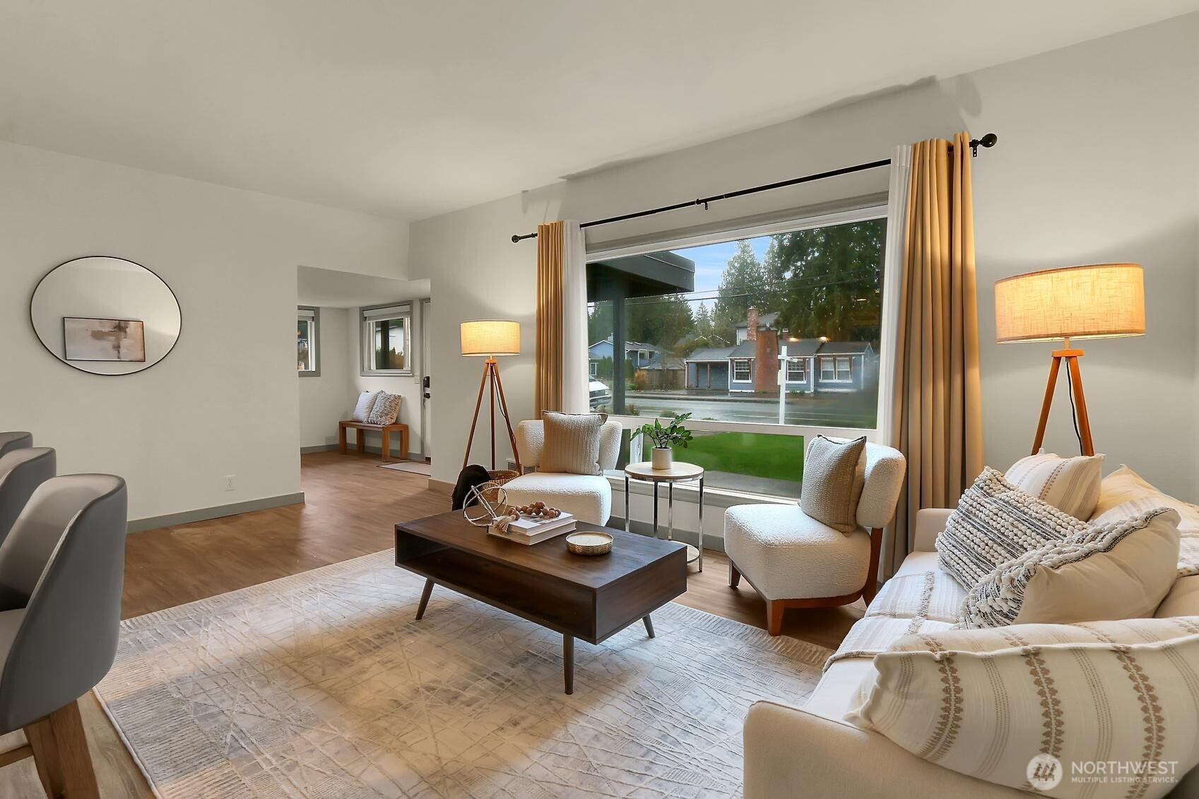 Edmonds 2-bed rambler w/ NEW kitchen, all NEW white shaker-style cabinetry, quartz countertops, & subway tile backsplash. The bar seating and pass-through window create effortless entertaining and everyday flow. Step into a light-filled circular floorplan w/ easy flow. Living room features oversized window. Dedicated dining area. Full bath updated offers shelving & storage. Newer W&D. LVP flooring throughout. Outside, the spacious, level, fully fenced backyard has been thoughtfully transformed with fresh landscaping, outdoor lighting, a retaining wall, and a storage shed. Sprinklers make maintenance simple. 2-car carport + driveway & street parking. The exterior has been refreshed for standout curb appeal and charm. A rare opportunity for single-level living just a block from Yost Park & Pool, and within walking distance to parks, coffee, dining, and schools. Over $85K in updates.