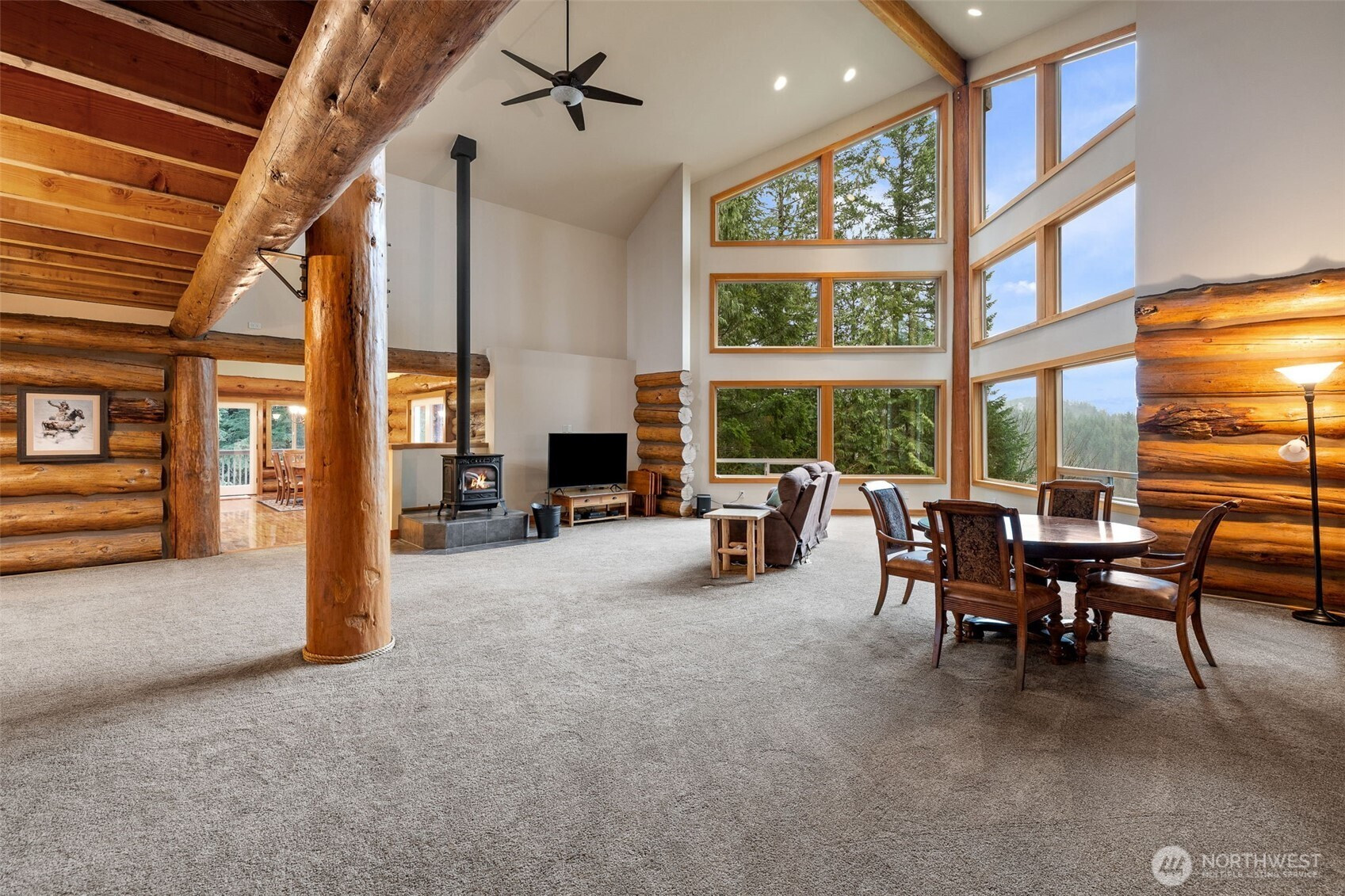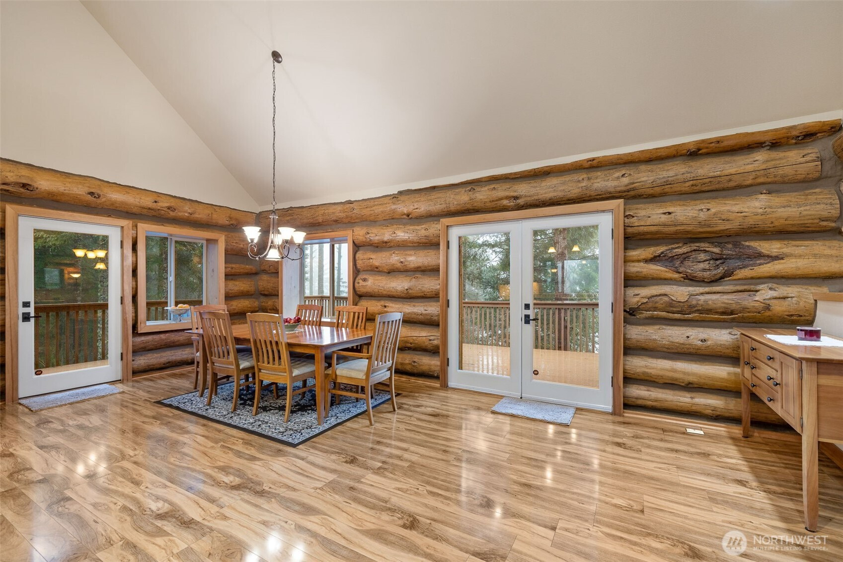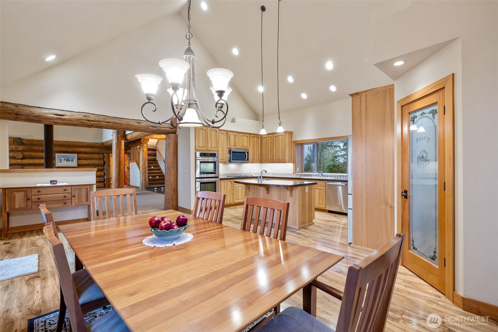 Beautiful mountain retreat! Well built log home using "pass and butt" construction for a true rustic feel. Vaulted ceilings, wall of windows overlook the property, Winters Lake and the Cascades in the distance. Great room with dining area, free standing stove. Gourmet kitchen, island with prep sink, S.S. appliances, under cabinet lighting, walk-in pantry. Private primary suite opens onto deck. Walk-in closet. Ensuite primary bath. Upstairs: view loft, bedroom and 3/4 bath. Downstairs: huge rec room, mechanical room, storage room with freezer. MIL apt: full kitchen, bedroom, 3/4 bath with laundry, separate entrance and deck. Currently rents for $1200/mos. Gated entry into property, 200' of waterfront on Winters Lake, 4.17 acres of forest. Attached two car garage, patio, Generac whole house generator. Short drive into town and only 43 miles to Stevens Pass. Come enjoy the peaceful setting, the amazing views, the lake. Don't miss this one!!