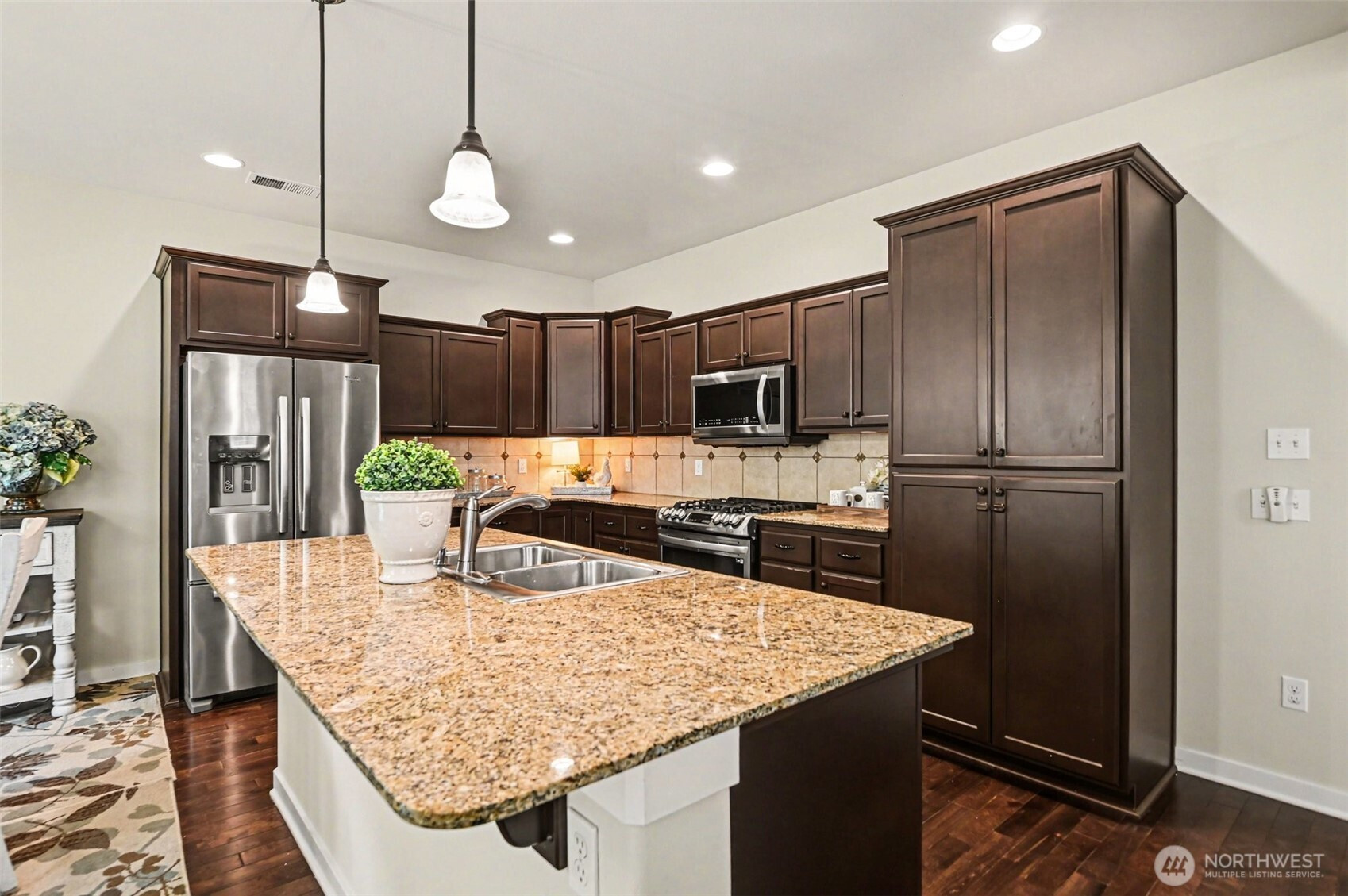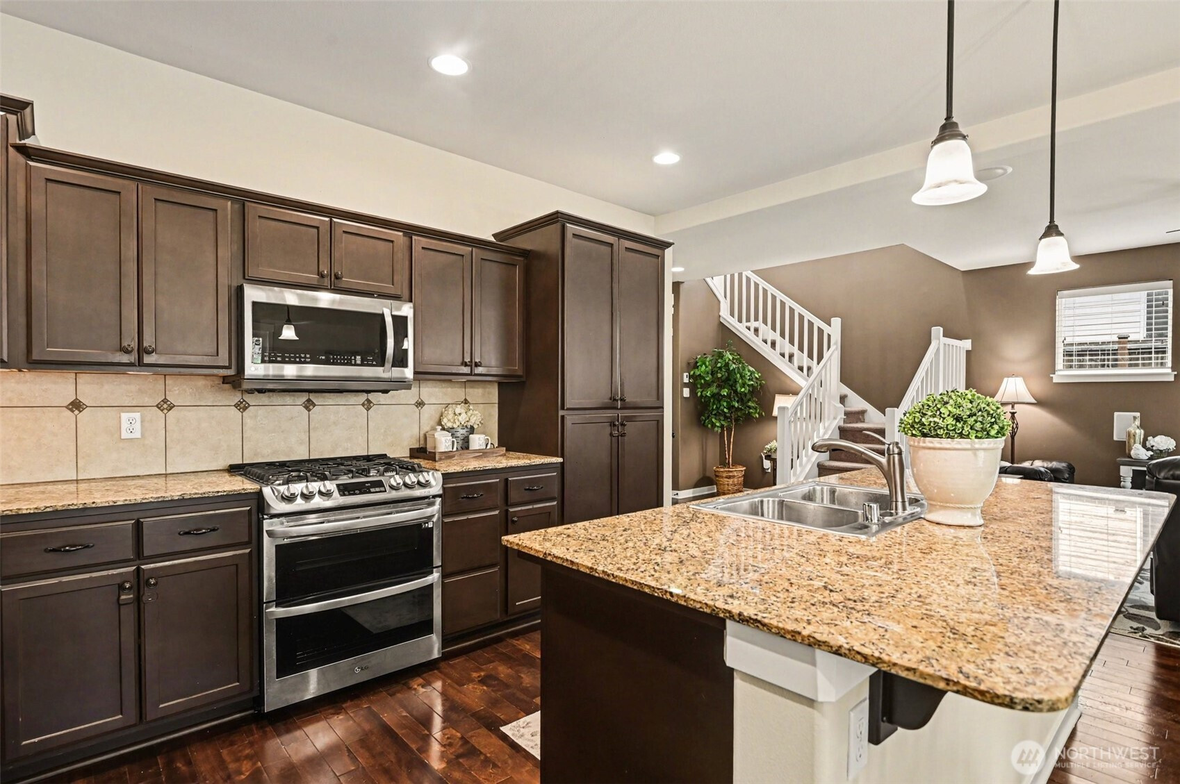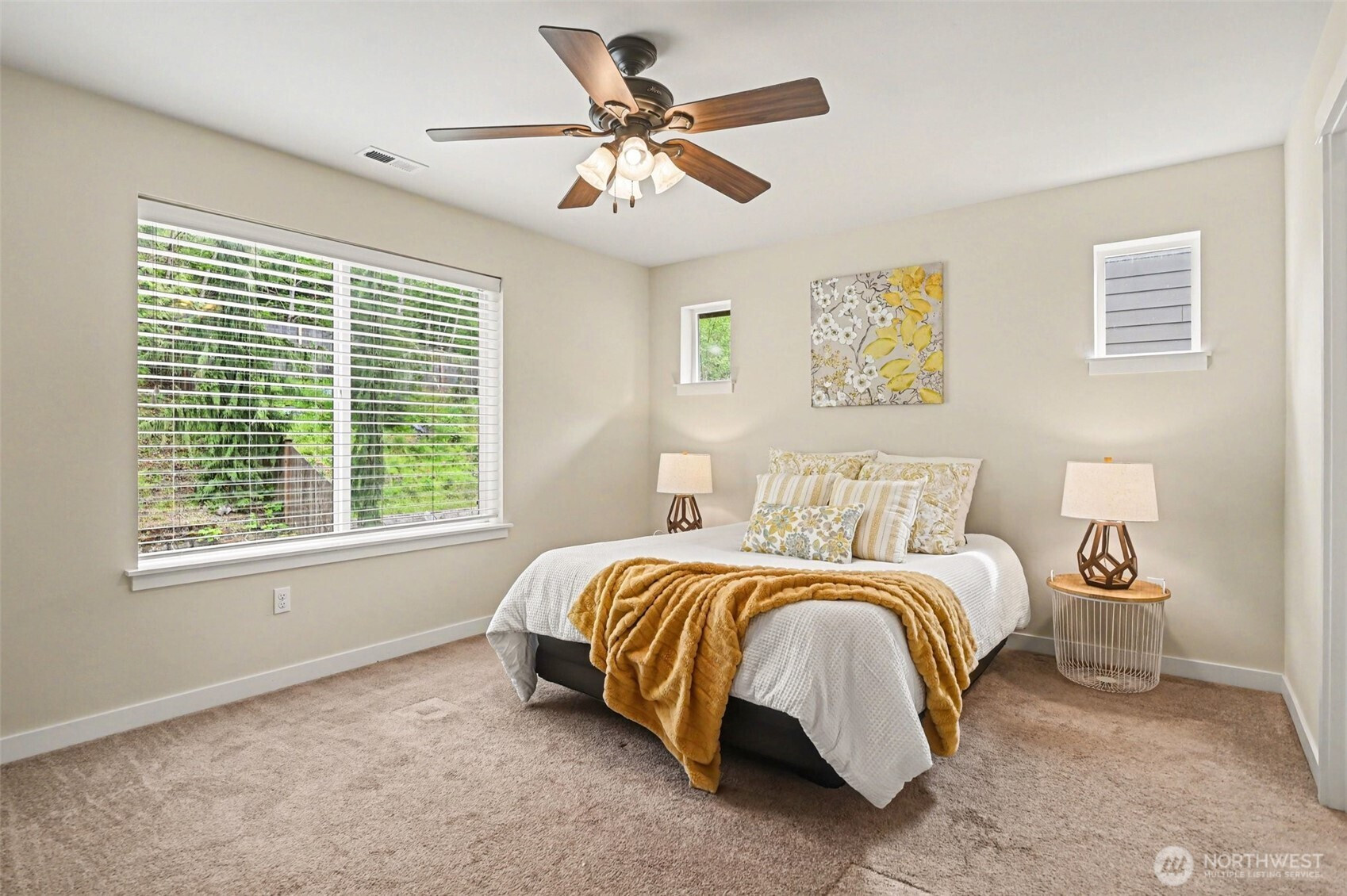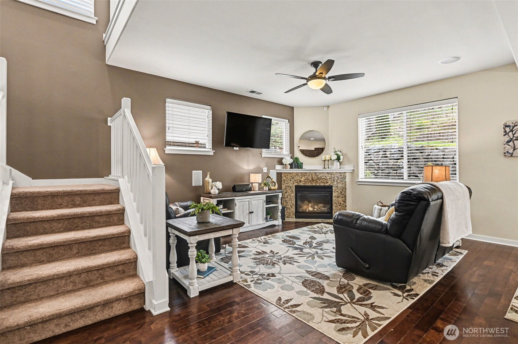 Cherish the peaceful Lake Stevens lifestyle in this inviting home nestled on a greenbelt, where warmth, functionality, & thoughtful design come together. Enjoy open, light-filled spaces that create a welcoming environment for both quiet moments & gatherings. The chef's kitchen serves as the heart of the home, offering abundant cabinetry & workspace, while the surrounding living spaces invite connection & relaxation. Upstairs, you'll find 4 spacious bedrooms, including a serene primary suite with views of the private yard & the conveniently located laundry room. Step outside & enjoy your own private retreat, this fully-fenced yard is ideal for morning coffee, or simply unwinding. Ideally located in a sought-after neighborhood near parks, top-rated schools, & local amenities. Enjoy A/C this summer. A short stroll to the lake where you can bring your boat or paddle board. This home offers the perfect balance of convenience & a true sense of community. Welcome home!