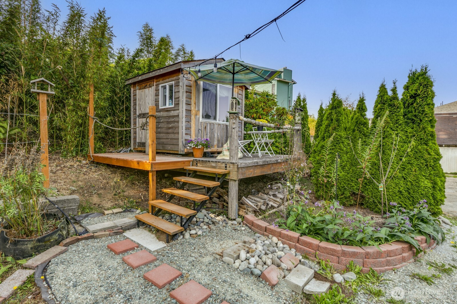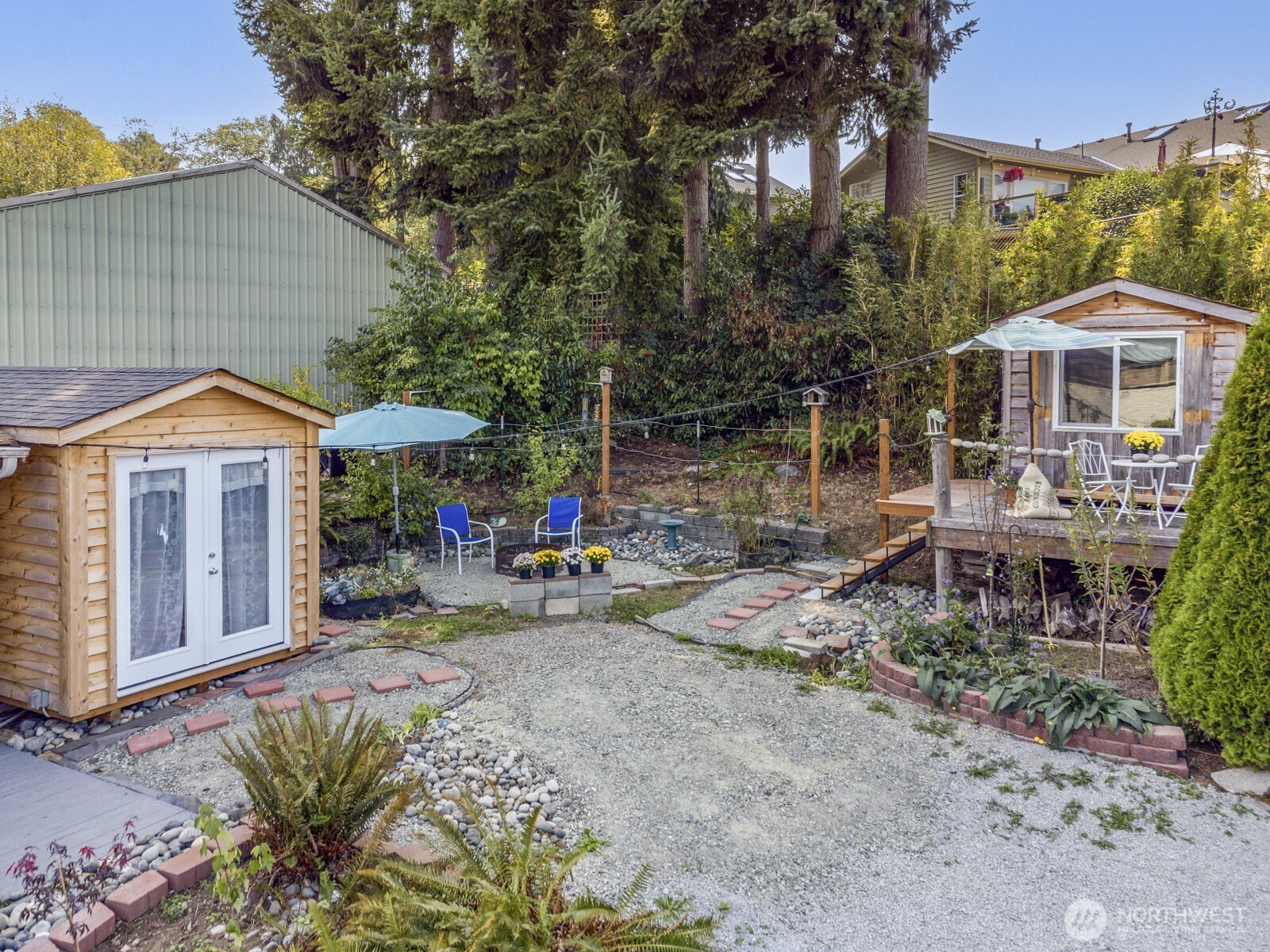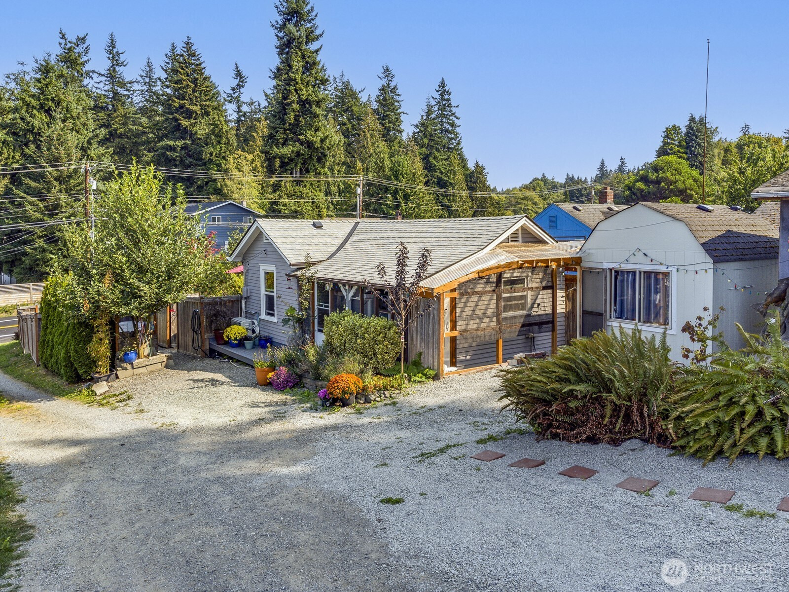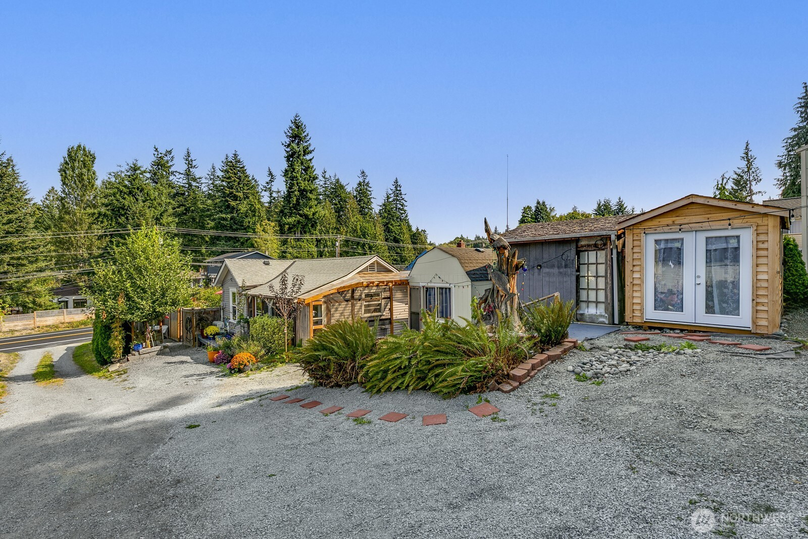 Charming 1BR cottage blends cozy character with modern updates in a convenient location near I-5, parks, shopping, hospitals and transit. Light, airy home with new flooring, refreshed kitchen and bath, quartz counters, farmhouse sink, updated appliances and thoughtful finishes. Enjoy Mount Baker and water views from the lush front garden with mature fruit trees. Four versatile outbuildings (three insulated with electricity) are perfect for office, studio, gym, so many possibilities. Two parking spaces plus shared drive. New washer stays. A peaceful retreat with room to work, create and grow.