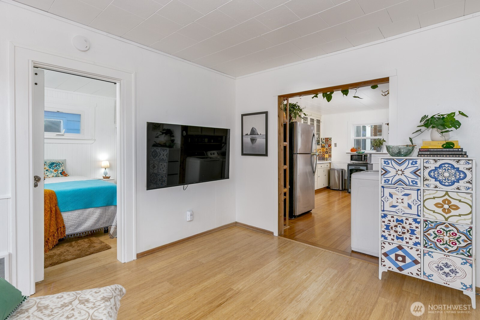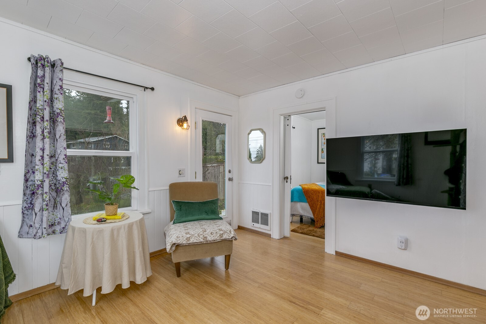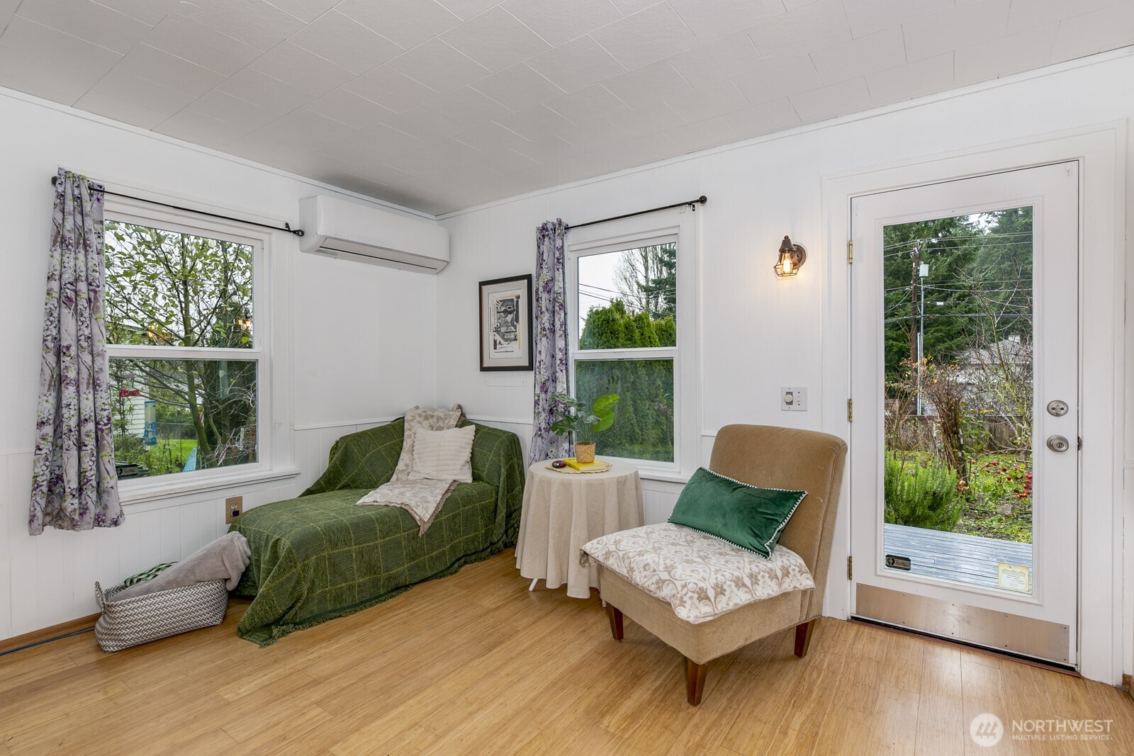 Charming 1BR cottage blends cozy character with modern updates in a convenient location near I-5, parks, shopping, hospitals and transit. Light, airy home with new flooring, refreshed kitchen and bath, quartz counters, farmhouse sink, updated appliances and thoughtful finishes. Enjoy Mount Baker and water views from the lush front garden with mature fruit trees. Four versatile outbuildings (three insulated with electricity) are perfect for office, studio, gym, so many possibilities. Two parking spaces plus shared drive. New washer stays. A peaceful retreat with room to work, create and grow.