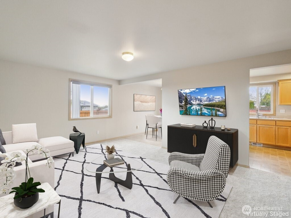 (503) 893-8874Welcome to this beautifully refreshed two-story home in Lake Stevens! Thoughtfully updated with brand-new carpeting, fresh interior paint, a new furnace, and a 2023 roof, this home offers style and comfort: a charming covered front porch, a two-car garage, and a fully fenced level yard. The main level features a spacious great room, a spacious eat-in kitchen with SS appliances, a 4th bedroom, + powder room, ideal for guests or a home office. Upstairs, the primary suite offers an en suite bath and walk-in closet, two additional bedrooms, a full bath, and a convenient laundry room. Take in beautiful mountain and Sound views from the upper level. Fantastic location close to shopping and schools, this well-maintained home is move-in ready!
