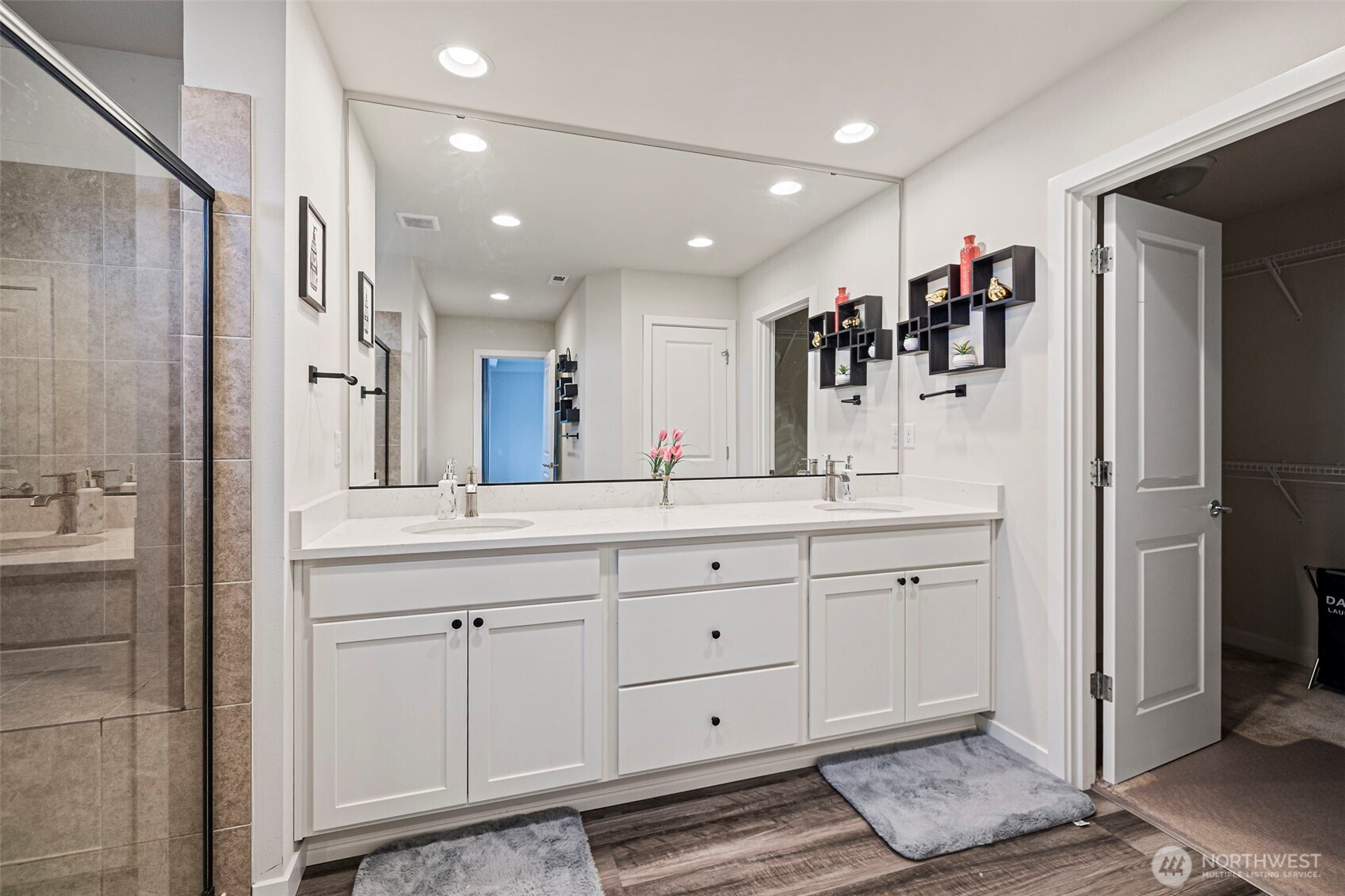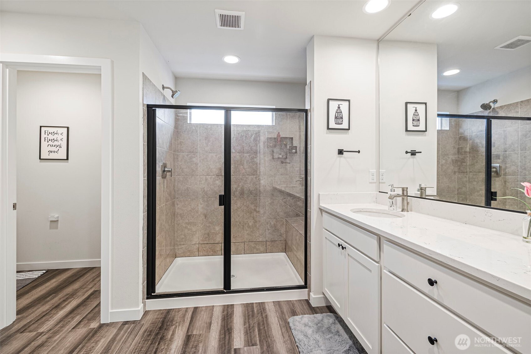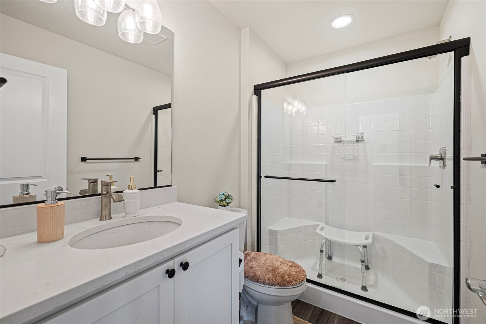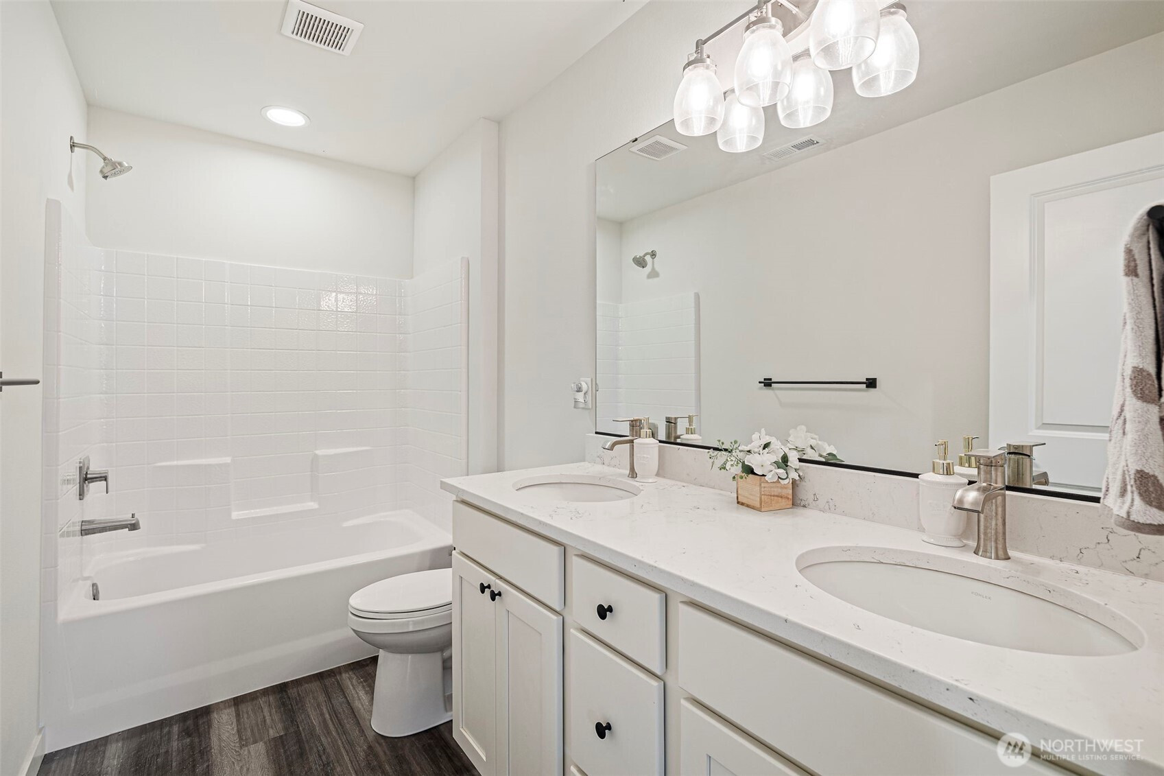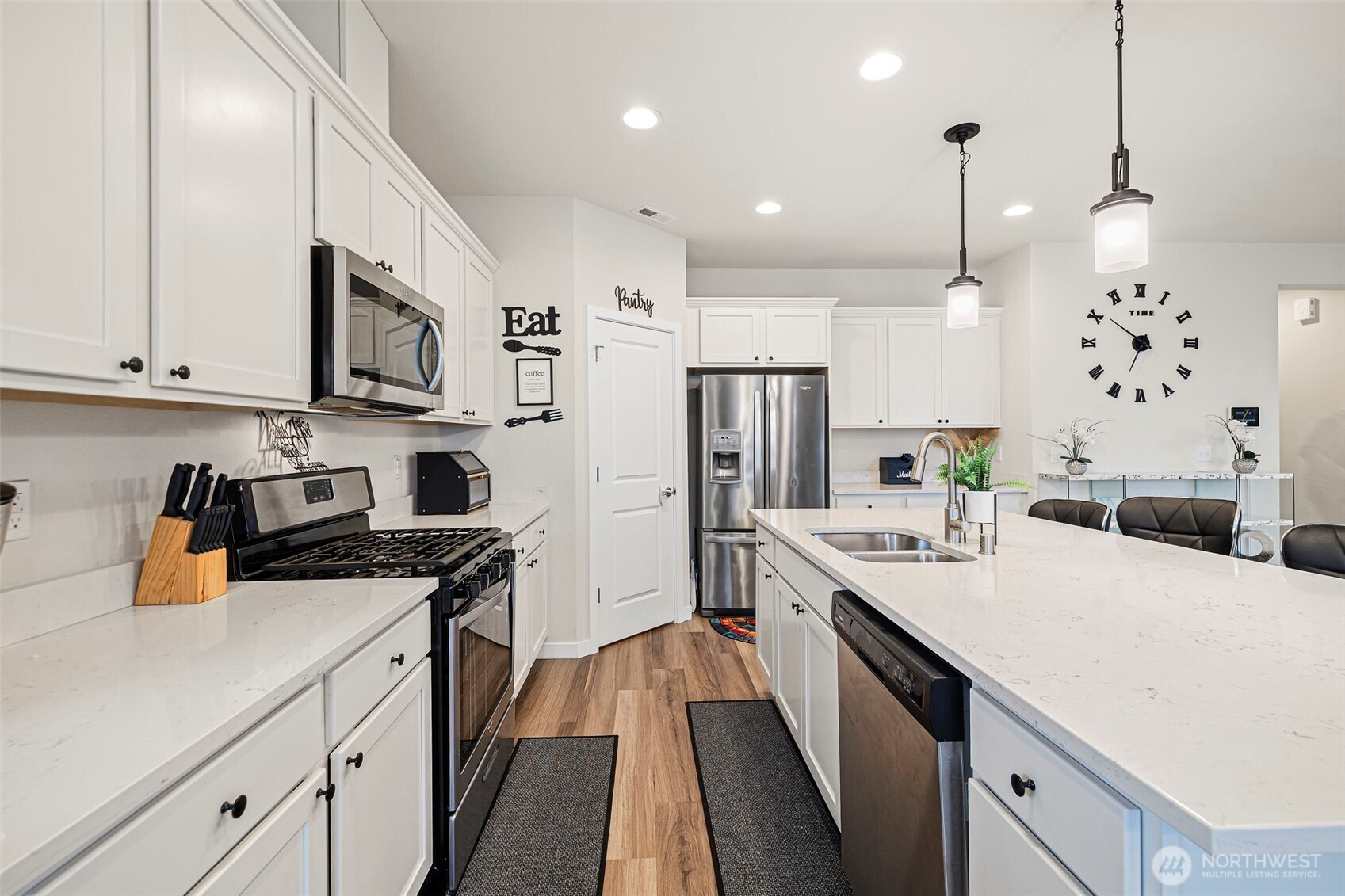 Explore this beautifully maintained Pulte resale 4-bd + den home in the sought-after Ashdale community, set on a generous lot! The versatile floor plan features 3 spacious bd upstairs + guest bedroom with a walk-in closet and 3/4 bath on the main level. The great room connects the main living areas, showcasing a stunning chef's kitchen w/breakfast bar, large dining room w/balcony, & a cozy living room w/gas fireplace & the den. The top floor hosts the luxurious primary suite w/walk-in closet & oversized shower, plus 2 additional bds, a full bath, & convenient laundry room. Enjoy a 3-car garage, AC, a large yard, & easy-care flooring. Benefit from the community park, convenient access to I-5, dining, shopping, parks/trails & more!