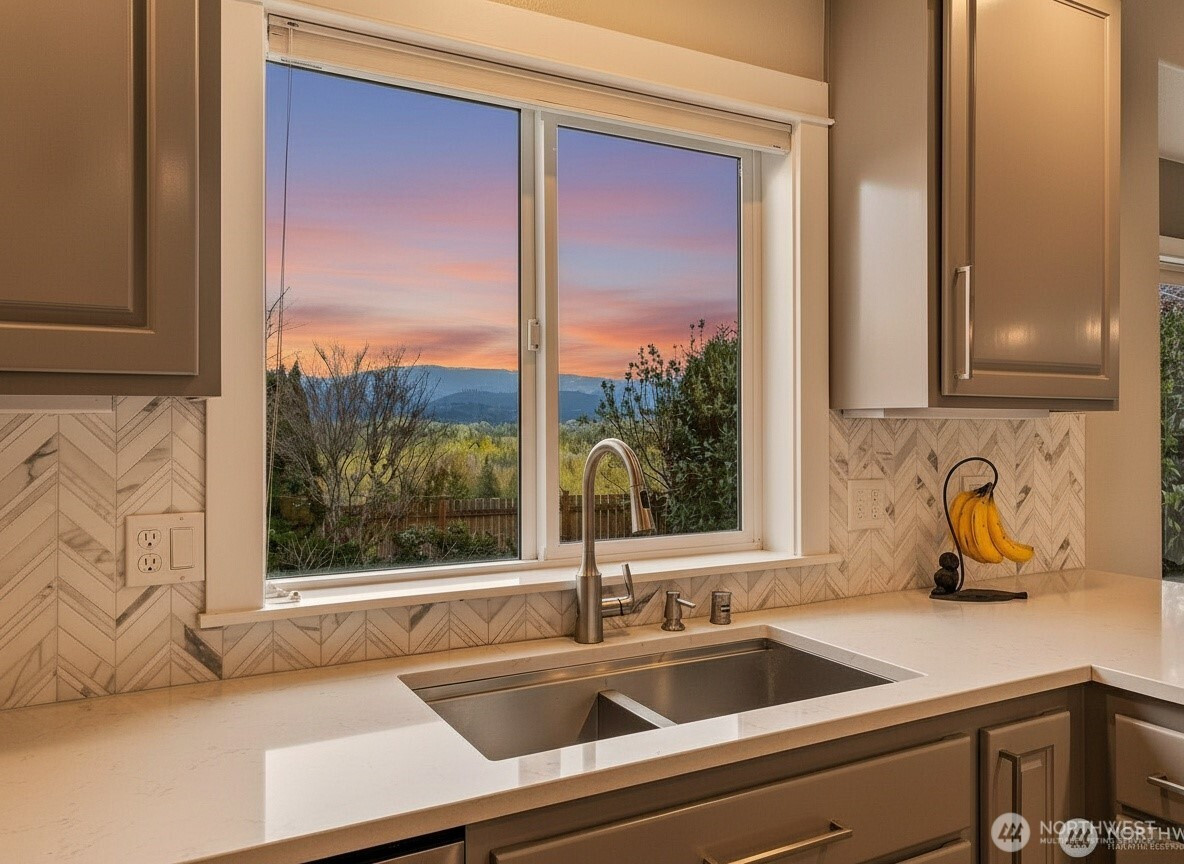 (503) 893-8874Sweeping, unobstructed mountain views define this beautifully updated home, perfectly positioned on a quiet dead-end street for ultimate privacy. Thoughtfully designed to capture natural beauty from every angle, this residence blends timeless architecture with modern upgrades. MAIN LEVEL PRIMARY SUITE features a spa-inspired 5 piece tiled bath with walk-in shower, soaking tub and large walk in closet. Fully REMODELED CHEF'S KITCHEN (2022) showcases stainless appliances, quartz countertops, full height tile backsplash and professionally painted cabinets. Formal living and dining rooms with 9’ ceilings and rich Craftsman millwork create an elegant setting, while the inviting family room offers a tiled propane fireplace with custom mantle. Upstairs offers three oversized bedrooms and two UPDATED BATHS (2024–2025), ideal for a second primary suite or flexible living. Recent improvements include NEW ROOF (2026, transferable warranty), NEW CARPET (2026), updated lighting, and designer interior paint palette throughout. Outdoor living shines with a composite dining deck, a covered entertaining patio, a spacious fire pit area, covered wood storage, a dog run, and a fully fenced orchard with fruit trees and garden space. Additional highlights include a covered hot tub, RV parking, 240V garage outlet, private HOA trail access, extra parking and room to build your dream shop (buyer to verify). Enjoy a peaceful setting backed by protected acreage for long-term privacy.