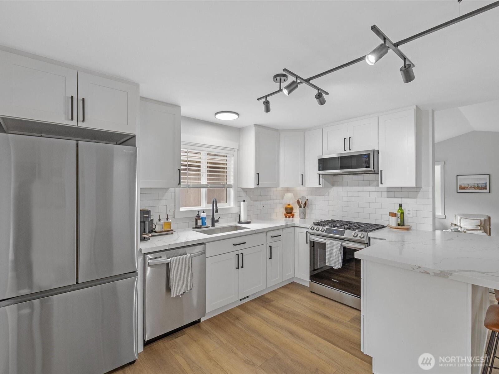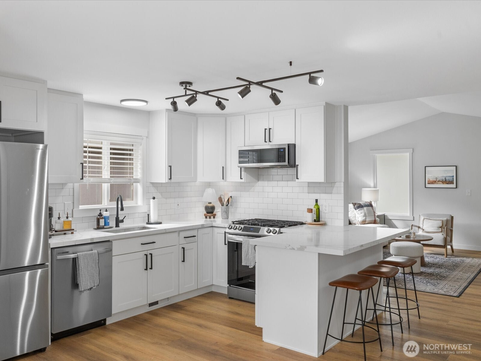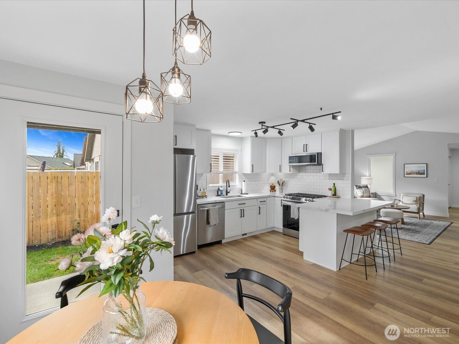 Welcome to this beautifully refreshed one-story home, filled with natural light and modern finishes. Updates include quartz countertops, stainless steel appliances, roof, furnace, windows, and flooring—giving peace of mind for years to come. Enjoy the fully fenced backyard, perfect for entertaining. Just minutes to schools, shopping, and I-5.